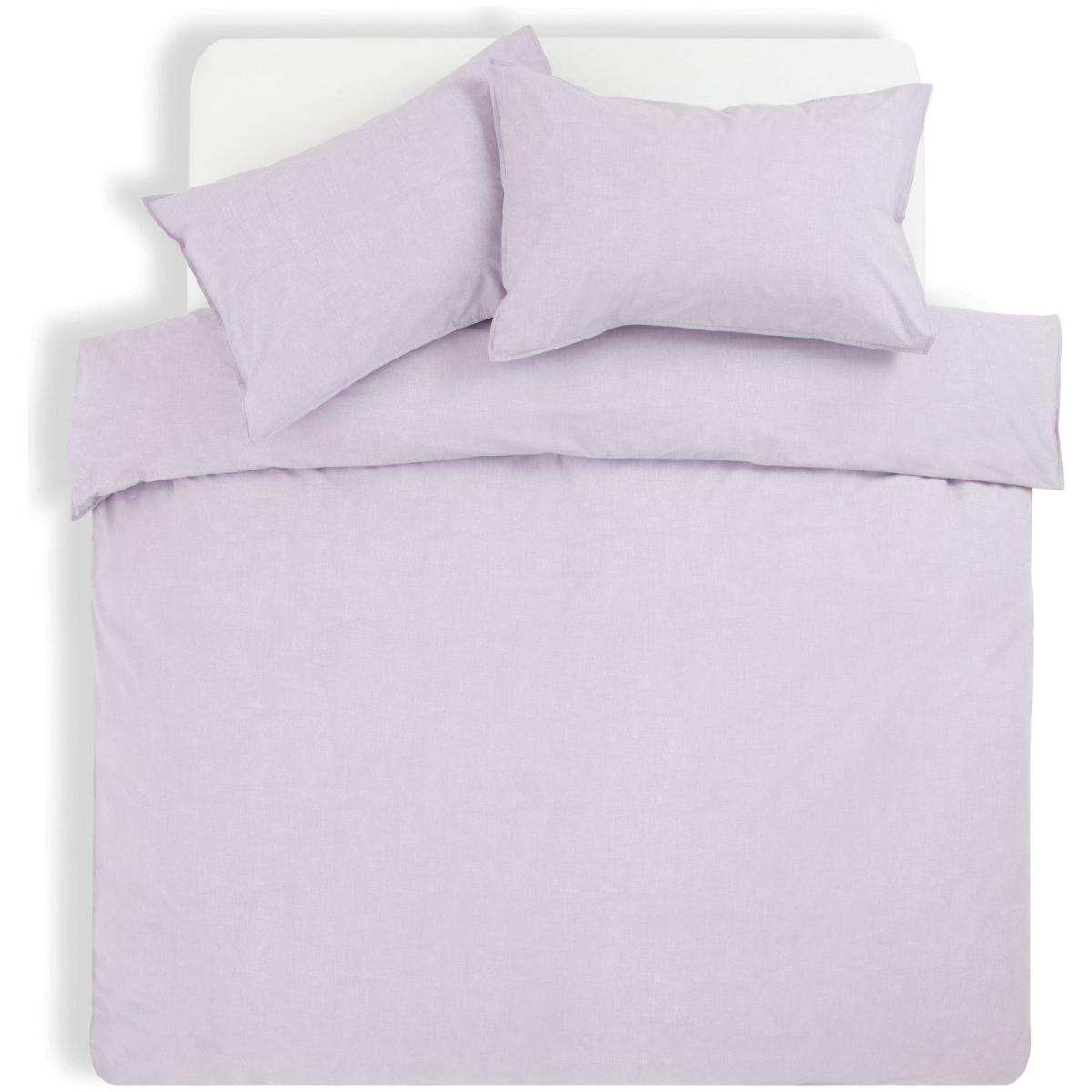 A pure cotton, lilac single bedding set. This soft, pastel printed linen is a timeless classic, loved by all ages. Easy to dress up and down with scatter cushions, bedspreads or feature pillows to create the look you want. This item carries the STANDARD 100 by OEKO-TEX logo, which means you can be certain that every component has been tested for harmful substances and is therefore harmless to human health. Finish: woven. 100% cotton, 1006619%. 1006619% , 1006619%, 1006619%. 144 thread count. Set includes 1 duvet cover and 1 pillowcase. Bed size: single. Length 200cm, Width 135cm. Buttons for fastening. Standard pillowcase (s). Pillow case length 75cm, Width 50cm. Machine washable at 40 C. Suitable for tumble drying.