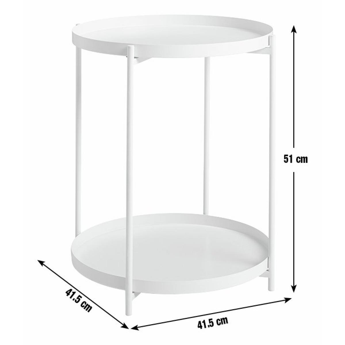 Clever side table with its practical rimmed shelves. Making it easy to serve drinks with no worry. Keep's sharp cornered magazine and book edges contained too. Perky and practical with a strong but lightweight frame. Sofa side, bed side, this table only has a good side. Part of the Rex collection. Size H 51, W 41.5, D 41.5cm. Diameter 41.5 cm. Made from metal. 1 undershelf. Weight 1.9kg. Self-assembly - 1 person recommended. Maximum load weight 100kg. Package Dimensions: Package 1 dimensions: H13, W58.8, D50.5cm. Package 1 weight: 2.7kg. General information: Manufacturer's 1 year guarantee.