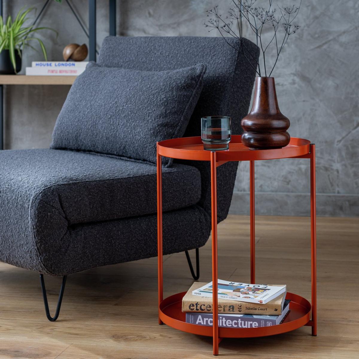 Clever side table with its practical rimmed shelves. Making it easy to serve drinks with no worry. Keeps sharp cornered magazine and book edges contained too. Perky and practical with a strong but lightweight frame. Sofa side, bed side, this table only has a good side. Part of the Rex collection. Size H 51, W 41.5, D 41.5cm. Made from metal. 1 undershelf. Weight 1.9kg. Self-assembly - 1 person recommended. Maximum load weight 100kg. Package Dimensions: Package 1 dimensions: H13, W58.8, D50.5cm. Package 1 weight: 2.7kg. General information: Manufacturer's 1 year guarantee.