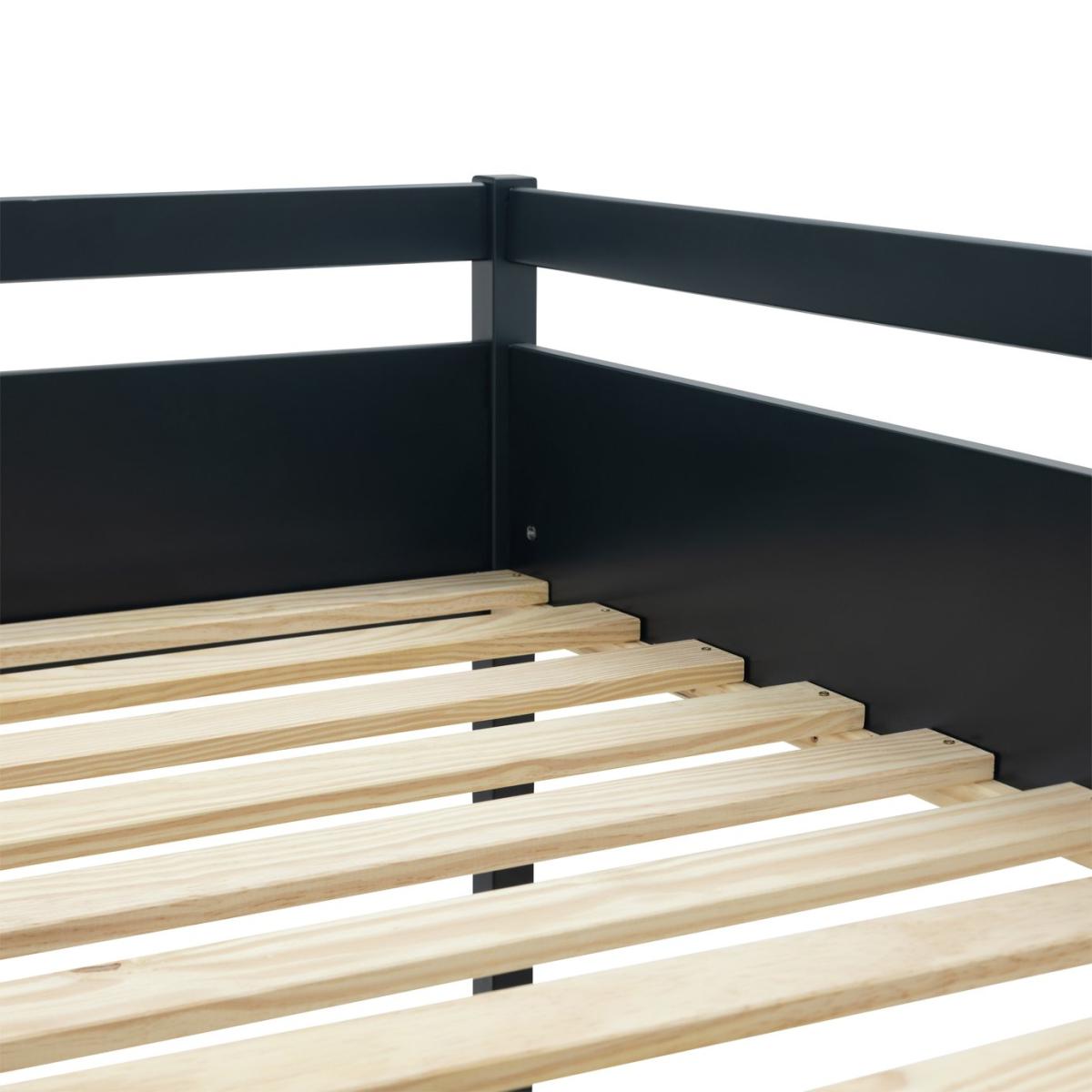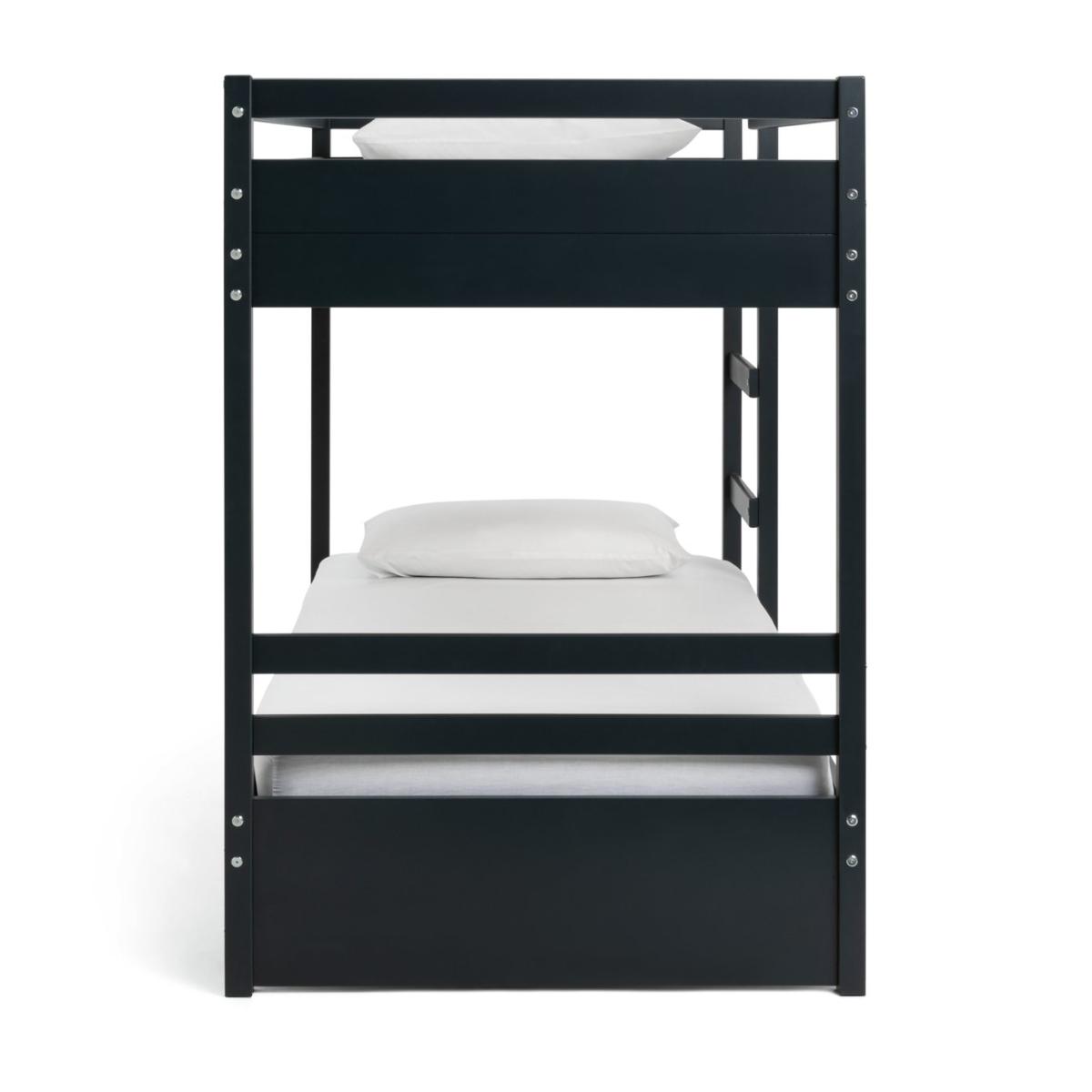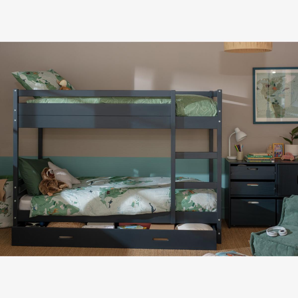 I love this bunk in a child's room for its practicality and playful colour. The blue finish makes it versatile enough to complement modern or traditional interiors, and the built-in drawer adds valuable storage without taking up extra space. It works well in trendy, minimalist interiors with a light colour palette, or in more vibrant rooms where it can be paired with lively accessories. To style around it, try adding colourful cushions and bedding to create a cosy feel, and keep nearby surfaces tidy with easy-to-reach storage options for toys and books. This piece is perfect for making the most of limited space while bringing a fun, functional element to a child's bedroom.