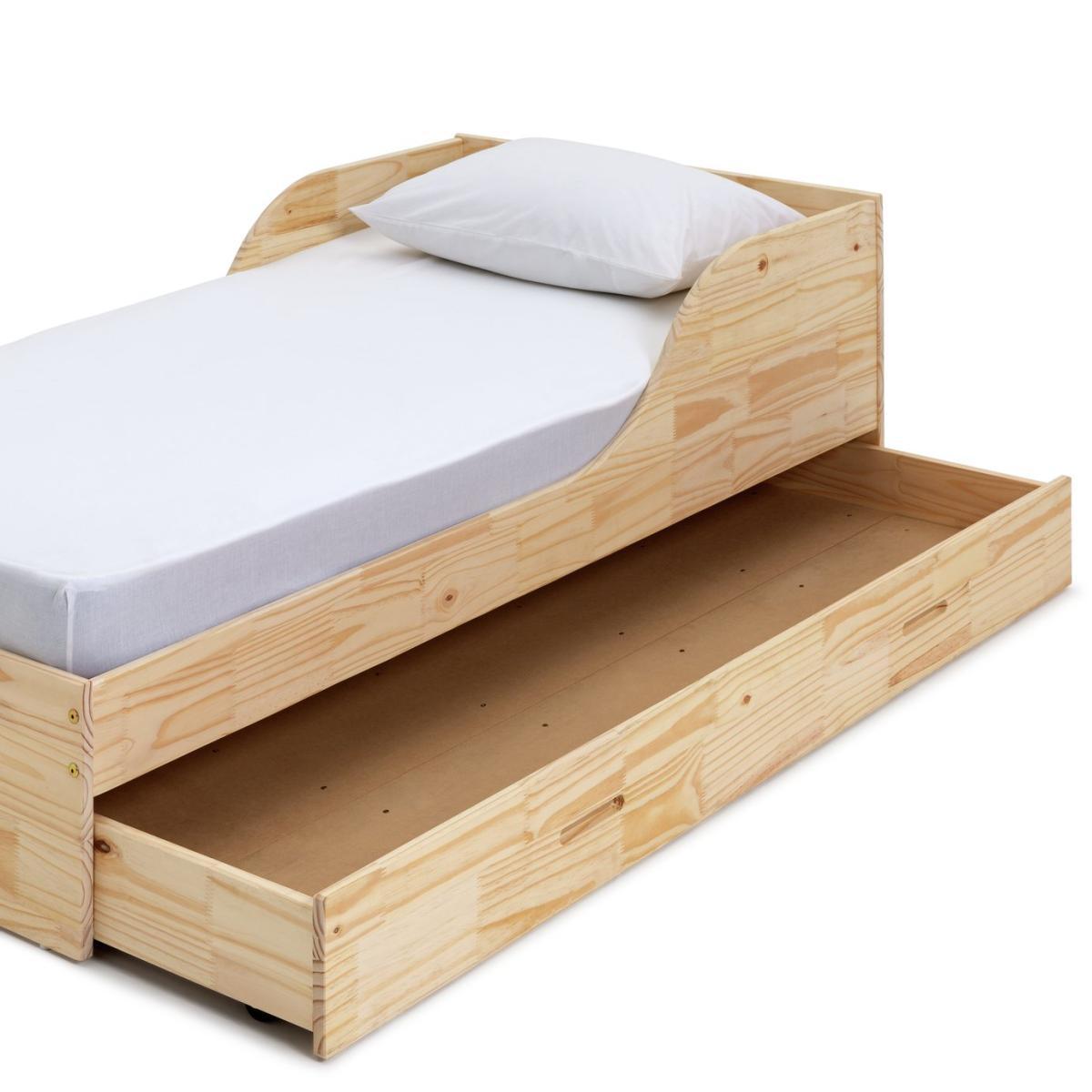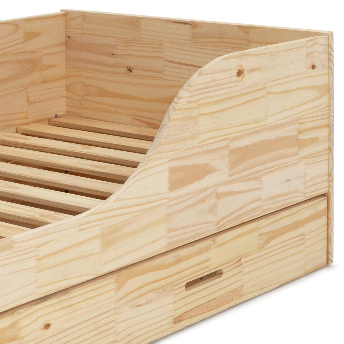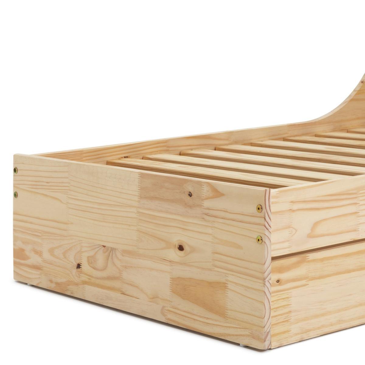 Get low with Rico. A single bed made from solid FSC certified pine, Rico is form and function combined. Designed so your little one can easily clamber in for story time, it also has the advantage of a full-length storage drawer. Tidy up books, toys, clothes, or seasonal bedding in this practical space. Warm and inviting with a natural wood finish, Rico is suitable for ages 6 and up. With comfortable wooden slats and plenty of space to grow, your child won't shy away from bedtime.