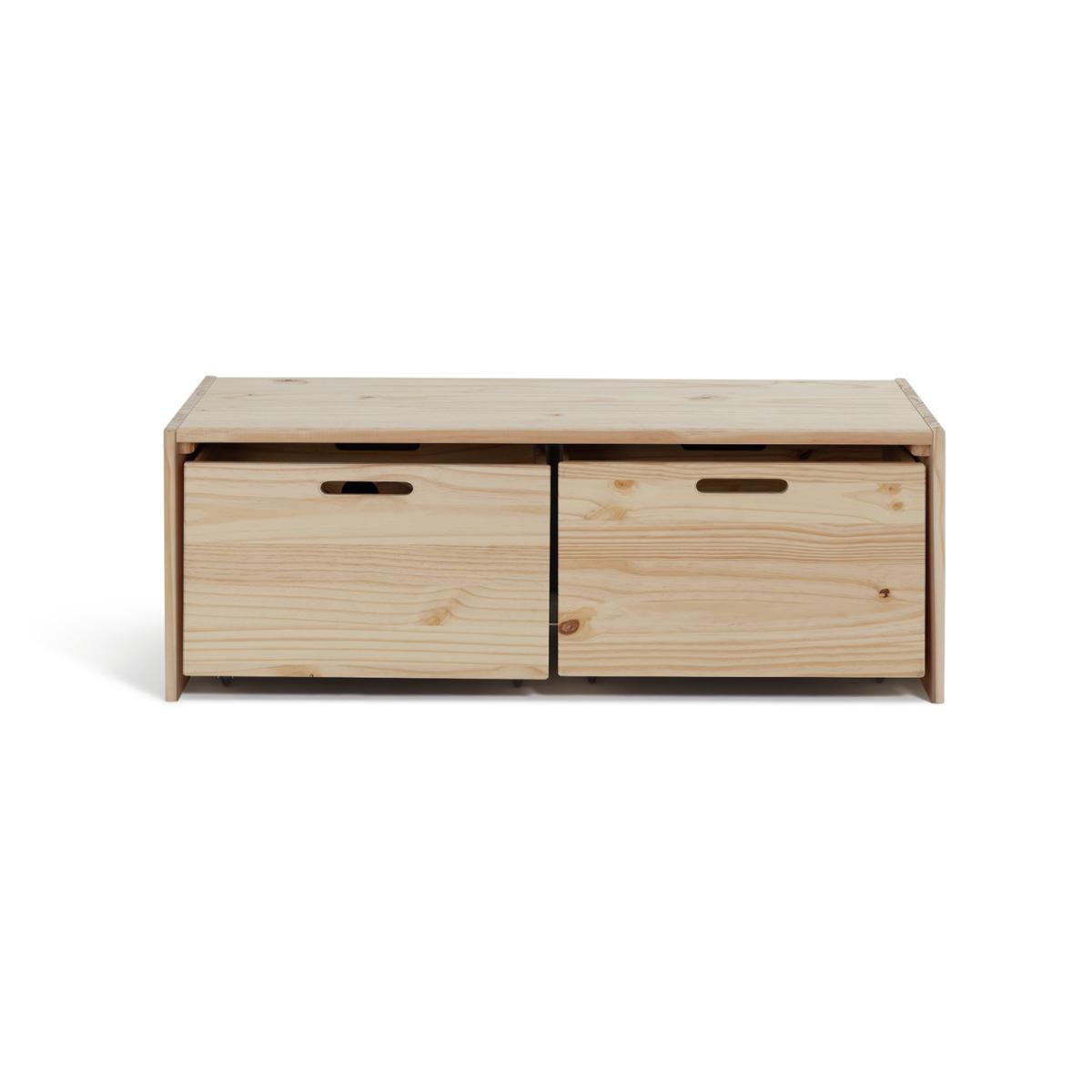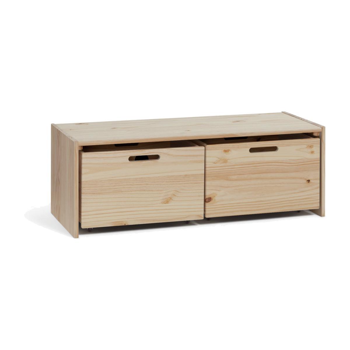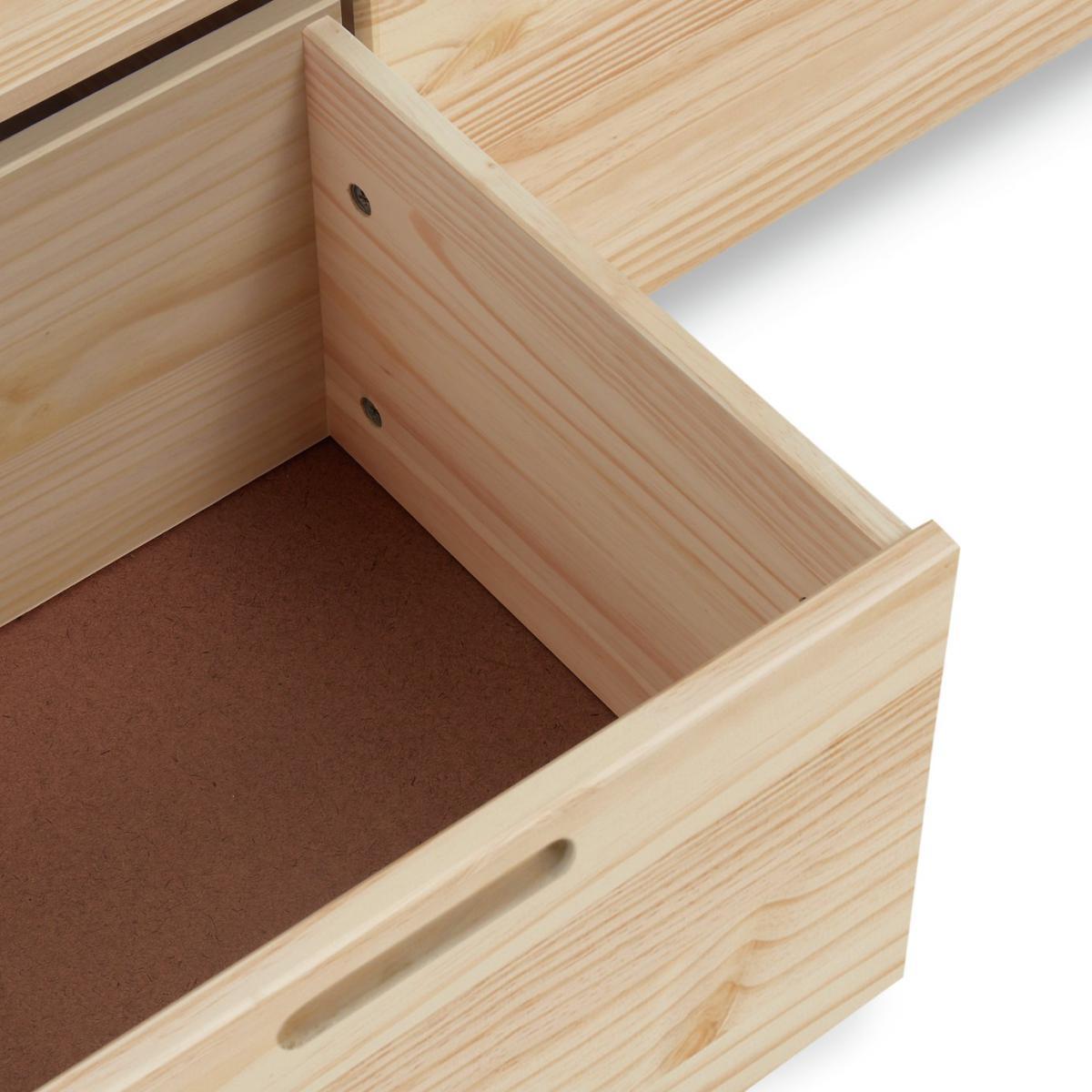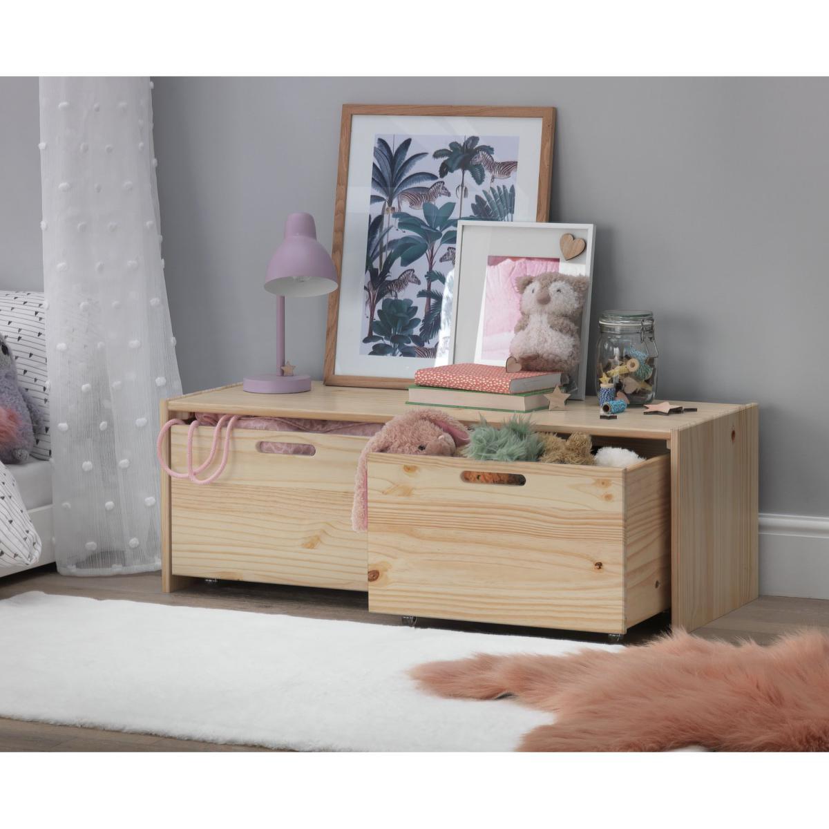 Style up your kid's space with solid pine, a fresh designer look and stylish joinery with the Rico bedroom furniture collection. This low storage unit, made from FSC pine, has 2 deep trundle drawers on sturdy castors. In untreated pine, you can paint or stain it to suit your style. Paints sold separately. Check out the rest of the Rico collection for matching items. Our products are designed with kids in mind and are built to cope with everyday use. Tested to the latest safety regulations, they comply with British and European safety standards.