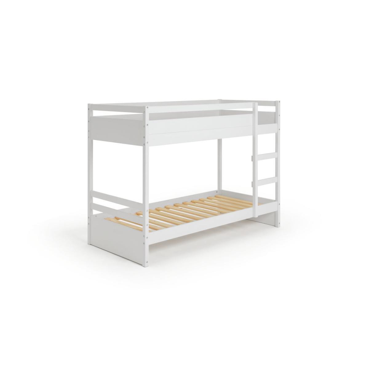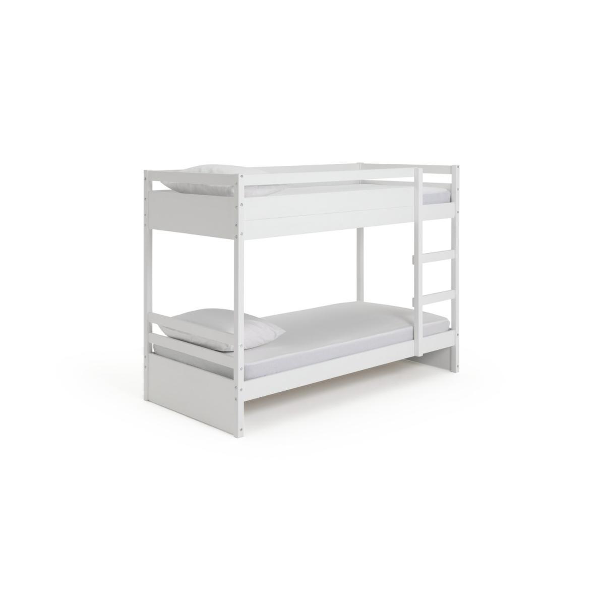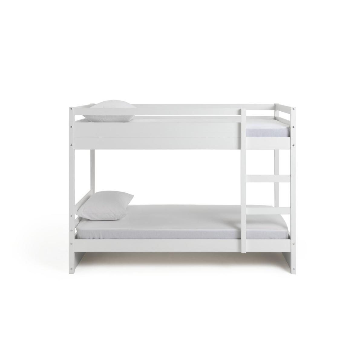 Who's for a sleepover? It's easy to add a spare bed in your kid's bedroom with our sleek but sturdy Rico bunk bed. Space for their bestest friend to stay over, and great for siblings 6+ years who share a room too. Made of solid FSC wood mixed with MDF and painted white. Two comfy, anti-allergy mattresses are included, and they don't need turning so are easy to care for. Assembling the bunk bed is a breeze and the in-built ladder makes access to the top bunk easy. There's space under the bottom bunk for toy or shoe storage too. Bags the top bunk.
