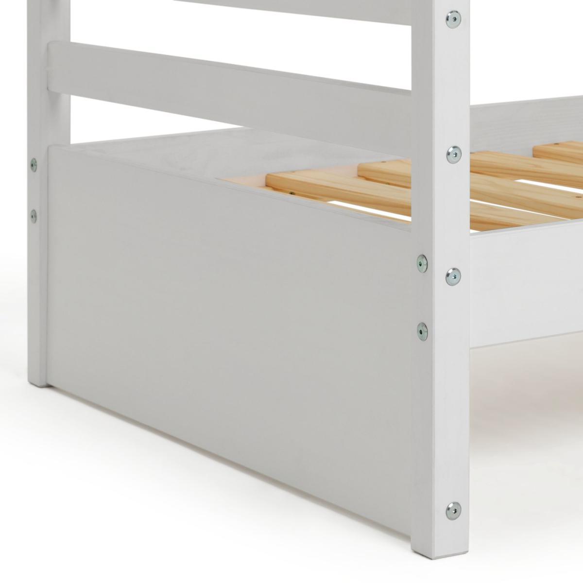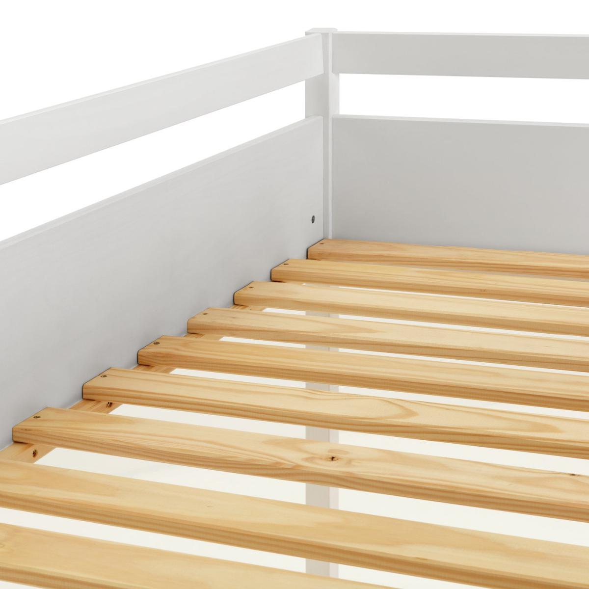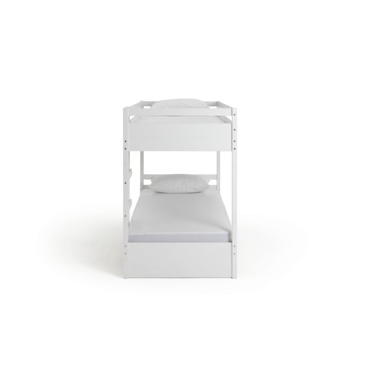 Who's for a sleepover? It's easy to add a spare bed in your kid's bedroom with our sleek but sturdy Rico bunk bed. Space for their bestest friend to stay over, and great for siblings 6+ years who share a room too. Made of solid FSC wood mixed with MDF and painted white. Two comfy, anti-allergy mattresses are included, and they don't need turning so are easy to care for. Assembling the bunk bed is a breeze and the in-built ladder makes access to the top bunk easy. There's space under the bottom bunk for toy or shoe storage too. Bags the top bunk.