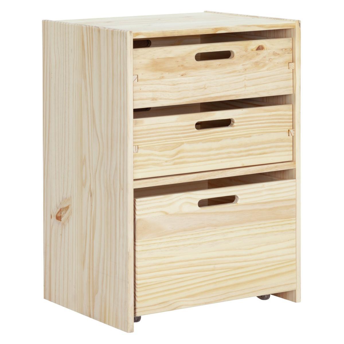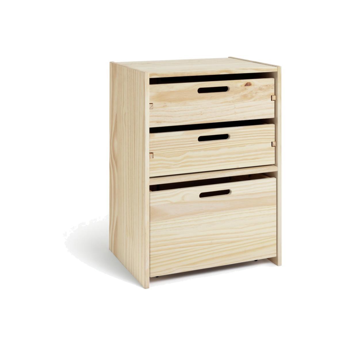 Style up your kid's space with the solid wood Rico bedroom furniture collection. With cut-out handles, wooden runners and sturdy castors, this single storage unit has 2 drawers and a deep trundle drawer. In untreated FSC pine for you to paint or stain to suit your style (paints sold separately). Check out the rest of the Rico collection for matching items. Our products are designed with kids in mind and are built to cope with everyday use. Tested to the latest safety regulations, they comply with British and European safety standards.