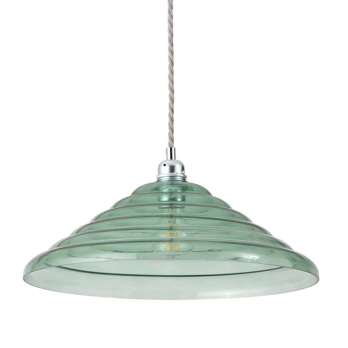 Love retro, mid-century lighting looks? Then you'll appreciate our tiered Ringo glass ceiling shade in its distinctive ribbed green glass. Ideal as a focal point over a table or to add personality and vintage style to your home. Made from glass. Size H13.5cm, W40cm. Diameter 40cm. Recommended maximum bulb wattage 10 watts. Fully assembled. Easy fit shade. Manufacturer's 1 year guarantee.