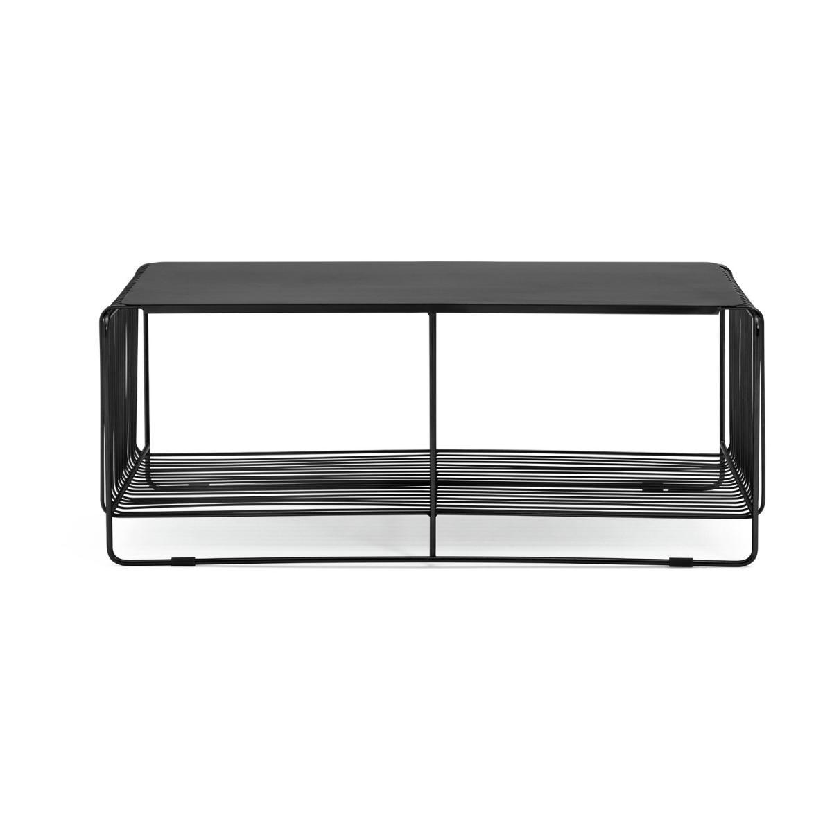 Reinvented retro. Wire furniture is in, so why not make our trendy wire accent black coffee table part of your home? Inspired by 50s Eames style but so very modern, it's an eye-catching stunner and conversation piece.
