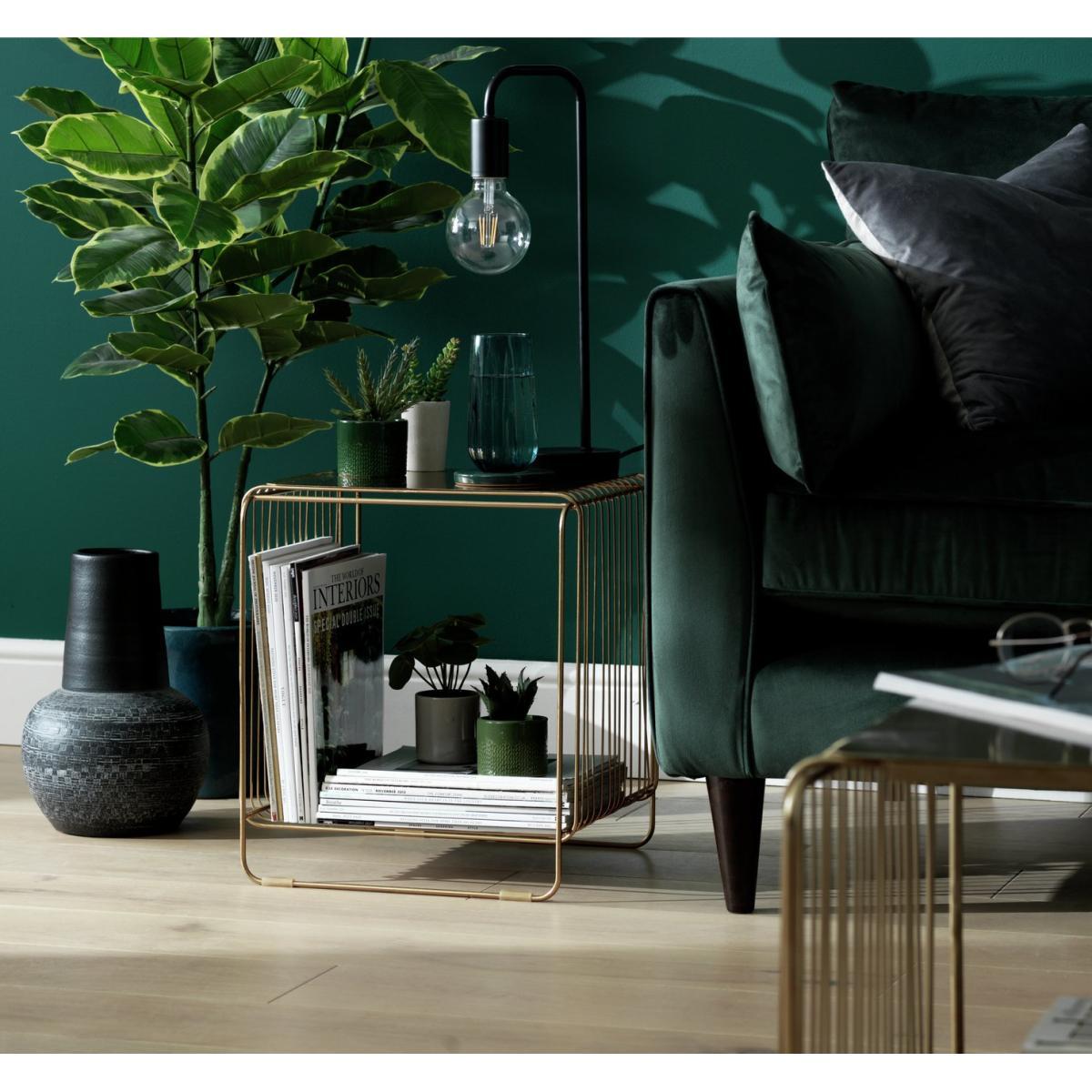 Reinvented retro. Wire furniture is in, so why not make our trendy wire gold accent black side table part of your home? Inspired by 50s Eames style but so very modern, it's an eye-catching stunner and conversation piece.