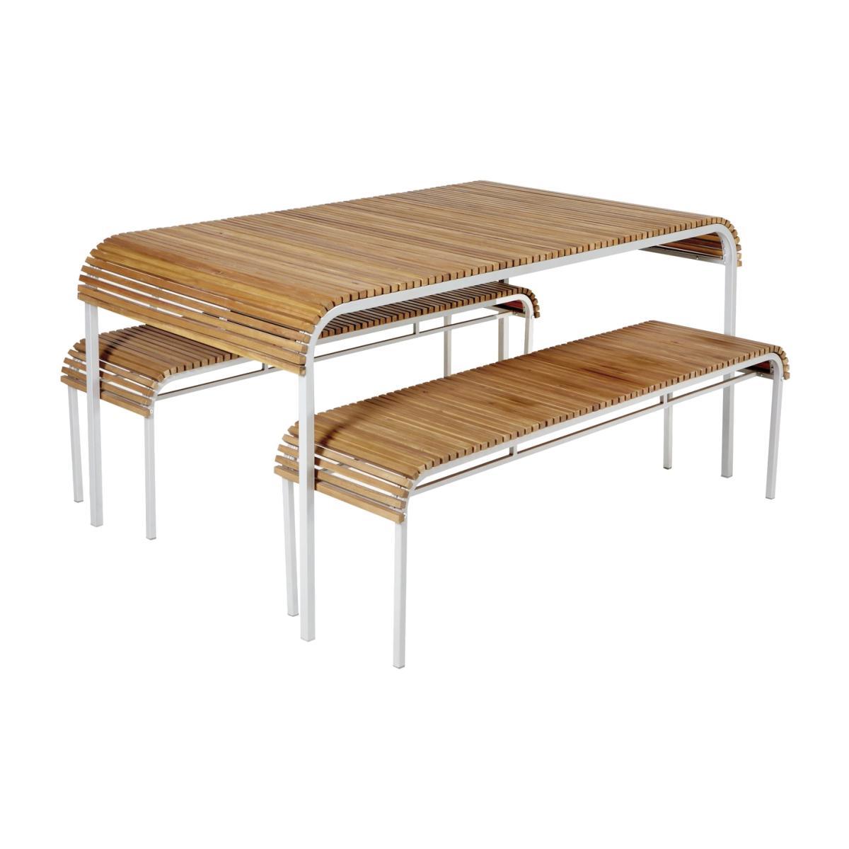 Inspired by nature, the Rolio natural 6 seater slatted acacia wood garden table and benches will add a contemporary touch to your outdoor space.