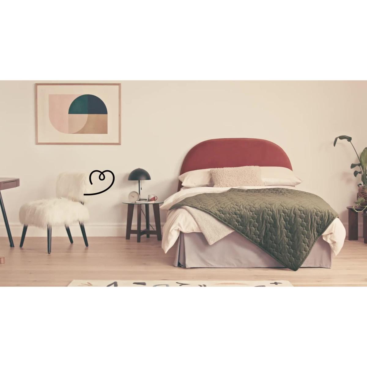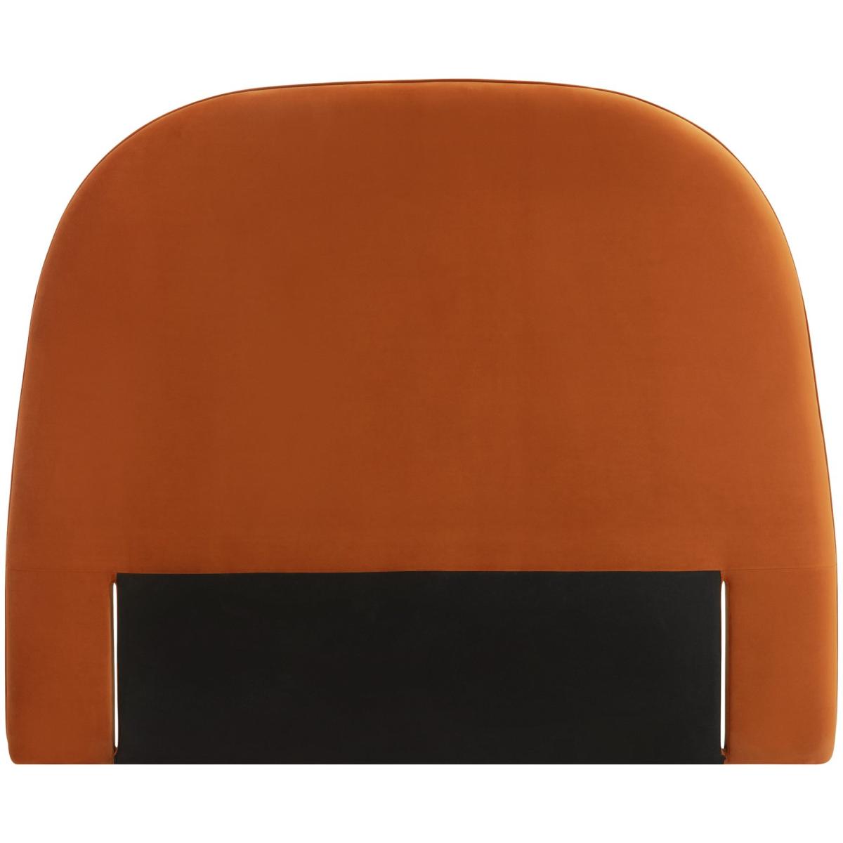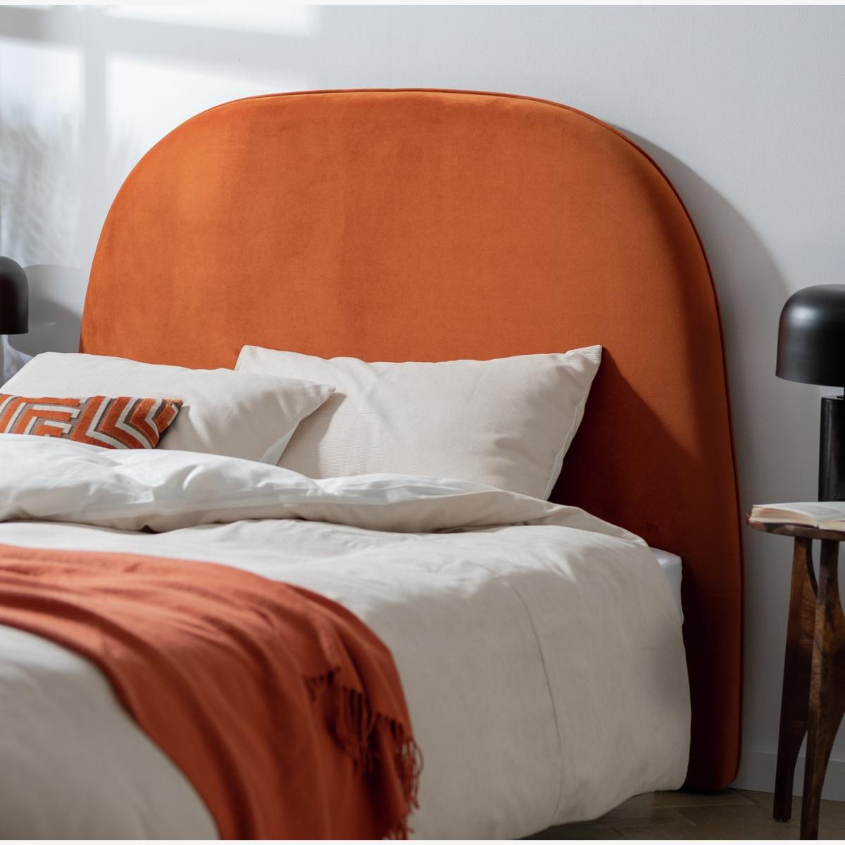 A statement headboard with curve appeal. Bold and plush, our Rolland double headboard brings a glamourous dynamic to a bedroom. Perfectly padded with a luxe touch. Upholstered in rich orange velvet and edged with piping to accentuate the gently rounded lines. Going for that boutique hotel vibe? Choose throws and cushions that create a harmony of colours and textures. Part of the Rolland collection. Size W148, H121cm. Weight 13.5kg. Self-assembly: 2 people recommended. FSC certified meaning the materials used for this product are responsibly sourced.