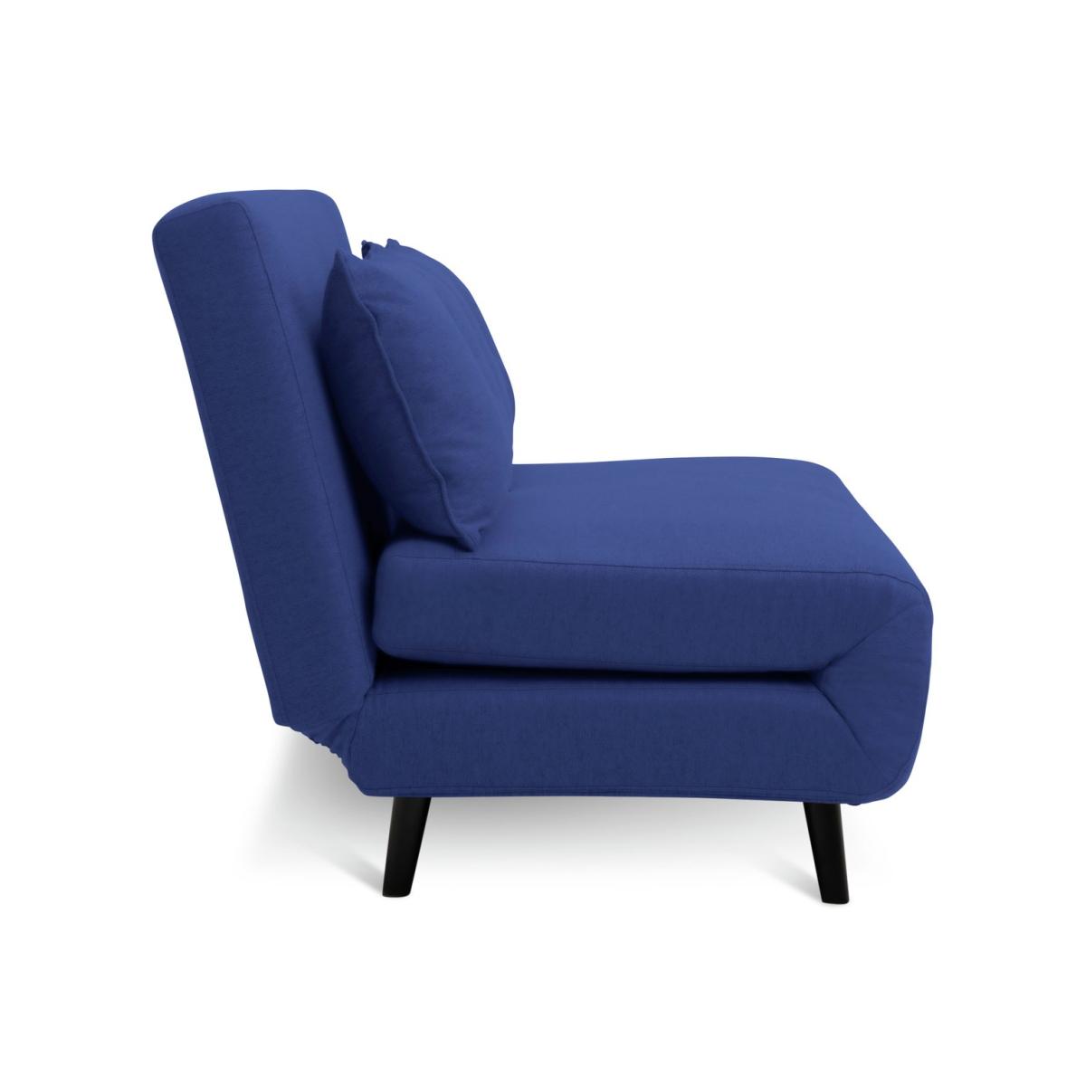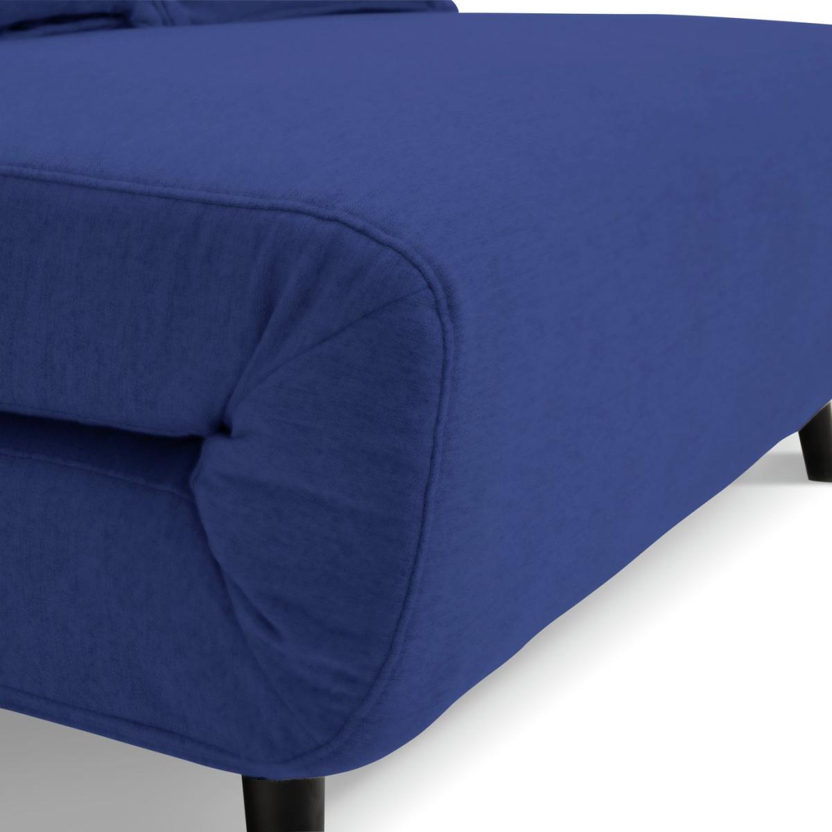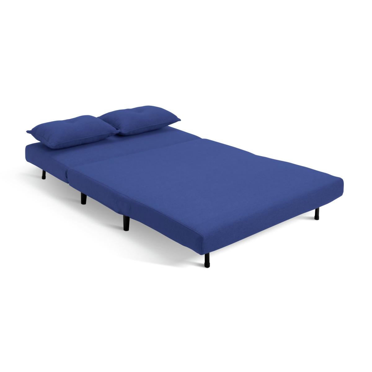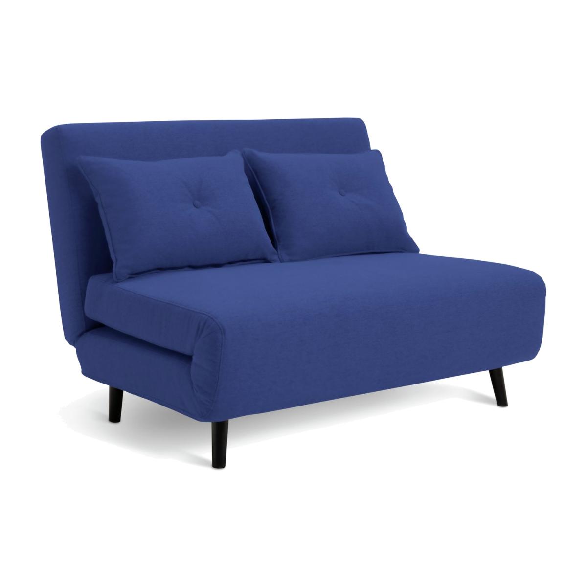Spare bed for two? Call Roma to the rescue. In gorgeous blue, our modern chair bed is a smart way to be prepared. Its day job is being a comfy chair. On the night shift, it transforms into a comfy double bed. Clever. Either way the plump, stuffed foam cushions are great for relaxing. And the long back cushion with single button detail adds to its contemporary style. Part of the Roma collection. Small double. Materials: Made from 100% polyester. Wooden feet. Fixed seat with foam fibre wrap filling. Fixed cushion(s) with fibre filling. Free fabric swatch available on this line. Dimensions: Size H81, W121,D90cm. Sleeping area W121, L190cm. Floor to seat height: 42cm. Depth of seat: 52cm. Height of seat back: 39. Width of seating area between arms:50cm. Weight 33kg. General information: Professional clean only. Suitable for regular use. Plump cushions regularly to maintain shape. Self-assembly - just add feet. Manufacturer's 2 year frame guarantee. Packaged dimensions: Package size H29, W112, D134cm.