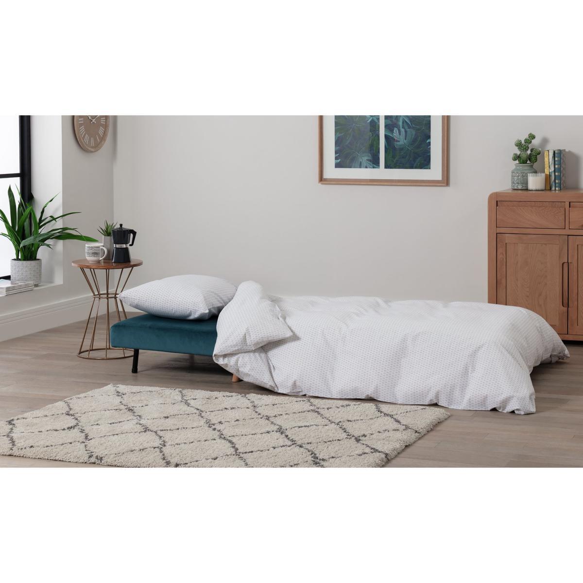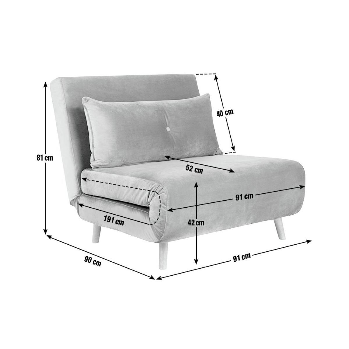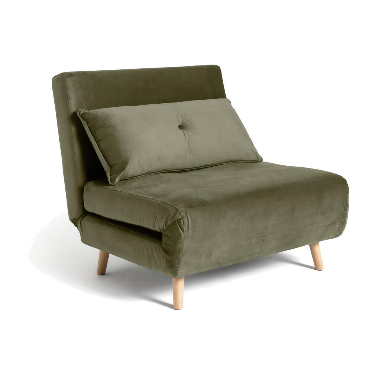 A spare bed for one? It's Roma to the rescue. In smooth sage our modern chair bed is a smart way to be prepared. Its day job is being a comfy chair. If it's on the night shift, it transforms into a comfy single bed. Clever. Either way the plump stuffed foam cushions are great for relaxing. And the long back cushion with single button detail adds to its contemporary style. Arrives complete, simply pop on the feet. Dial up the energy. Add a couple of vibrant orange cushions. Or keep things cool with neutral creams. Want to check out the colour and fabric? Just ask for a free swatch. Part of the Roma collection. Single. Materials:Made from 100% velvet. Wooden feet. Fixed seat with foam fibre wrap filling. Removable cushion(s) with foam fibre wrap filling. Free fabric swatch available on this line. Dimensions: Size H81, W90, D90cm. Sleeping area W91, L190cm. Floor to seat height: 42cm. Depth of seat: 52cm. Height of seat back: 81cm. Width of seating area between arms:52cm. Weight 26.1kg. Professional clean only. Suitable for regular use. Self-assembly - just add feet. Packaged dimensions:Package size H29, W130, D95cm. General information:We are excited to be welcoming some of our favourite HOME products into the Habitat range. Your product may arrive in Habitat or HOME packaging. Manufacturer's 2 year frame guarantee.