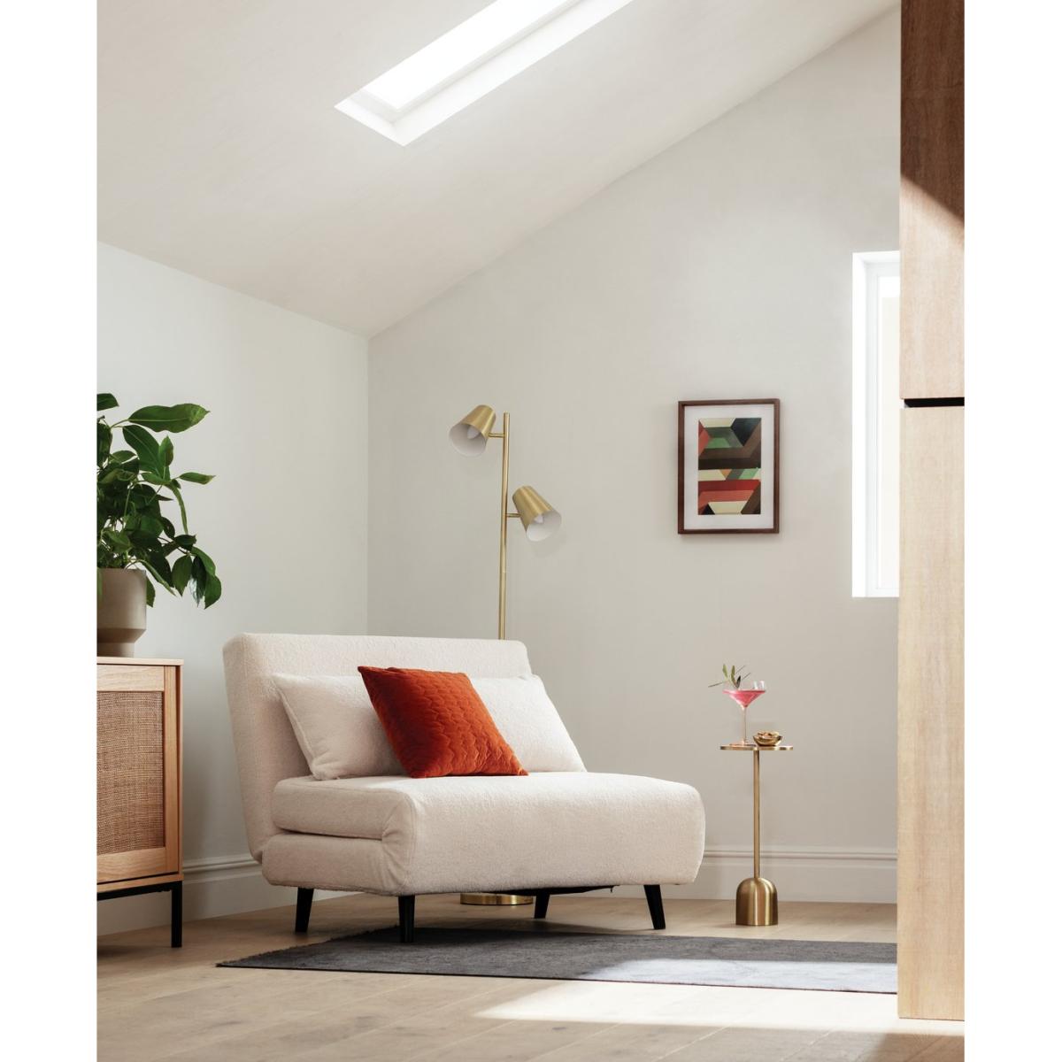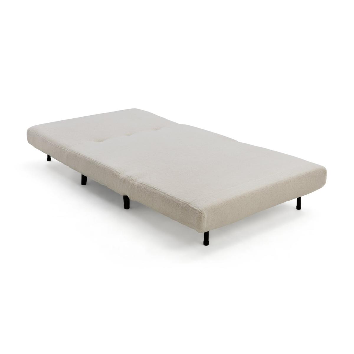 I love this little sofa-bed for its versatility and modern charm. Its boucle fabric adds texture and a cosy feel, making it a great statement piece in both contemporary and eclectic interiors. It works particularly well in small living rooms, guest rooms, or studio apartments where space needs to be multi-functional. For styling tips, keep accessories minimal and use soft cushions or throws in warm tones to enhance its inviting look. Pair it with sleek wood or metal furniture for a balanced mix of textures, or place it alongside a statement rug to define the space. Its compact size and neutral hue make it easy to incorporate into various colour schemes, making it a practical yet stylish addition for modern homes.