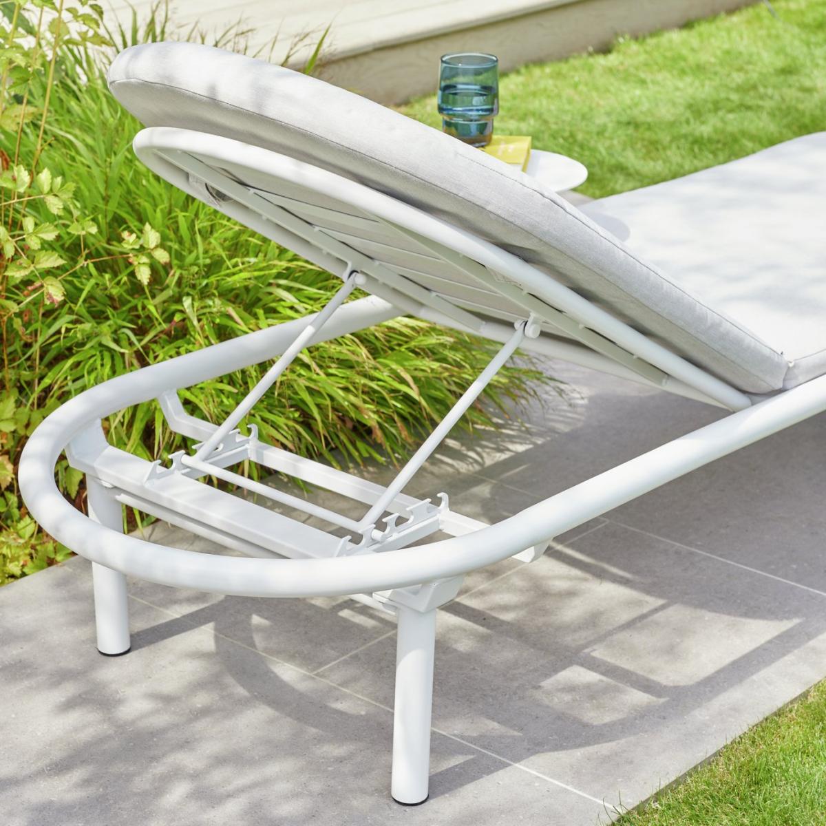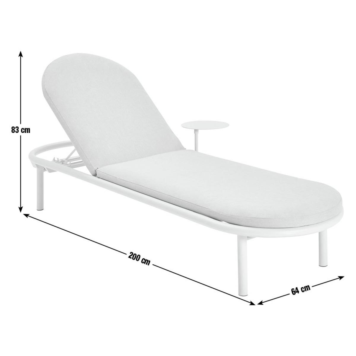 Soak up the sunshine in style with this comfortable lounger. The long, gently curved showerproof cushion is designed to cradle your body in a cocoon of relaxation. The steel frame is adjustable with a choice of 5 positions. From flat out snoozing through to sitting up reading. Plus, it has its own built-in sliding side table, how cool is that? It's the perfect place to pop a book or cold drink. When summer's over, it folds down for easy storage. Steel frame. Chair seat and back made from steel. 5 reclining positions. Multi-position recliner. Reclines to flat position. Cushions: Polyester cushion cover. Removable cushions. Cushions are shower proof, but should be stored inside when not in use. Dimensions: Size H83, W64, D200cm. Weight 21kg. Seat height from ground 30cm. Arm rest height from ground 47.5cm. Seating area size W119, D64cm. Maximum user weight 110kg. Package Dimensions: Package 1 dimensions: H14, W67, D202cm. Package 1 weight:24kg. General information: Self-assembly - 2 people required. Store inside when not in use. Cover or store inside in winter months to prolong life of product. Manufacturer's 1 year guarantee.
