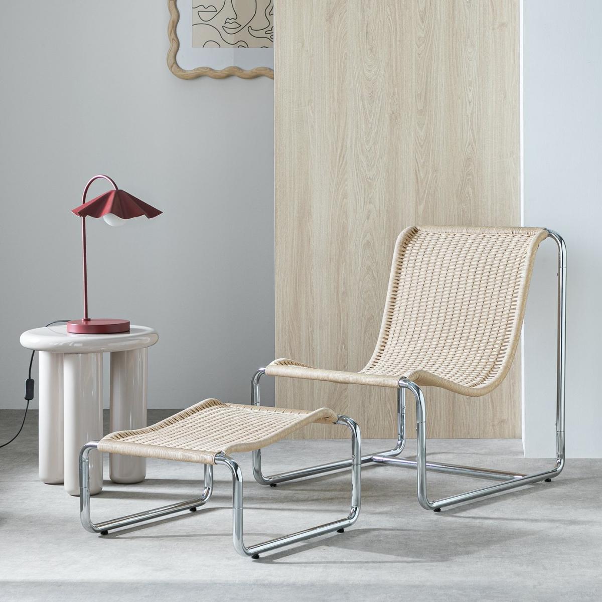 Step into the comfort-zone with our Ronan chair and footstool. This naturally stylish duo is made from woven paper rope over a chrome frame. With leisurely curves in all the right places, simply settle in, put your feet up and unwind. Part of the Ronan collection. Material: Metal feet. Fixed seat. Fixed cushion(s). Dimensions: Size H73, W69, D63cm. Floor to seat height: 31cm. Depth of seat: 42cm. Height of seat back: 40cm. Width of seating area between arms: 51cm. Footstool size H29, W53, D52cm. Weight: 13kg. Packaged dimensions: Package size H31, W89, D67cm. General information: FSC certified meaning the materials used for this product are responsibly sourced. Sponge clean only. Self-assembly. Maximum individual user weight 110kg. Manufacturer's 2 year guarantee.