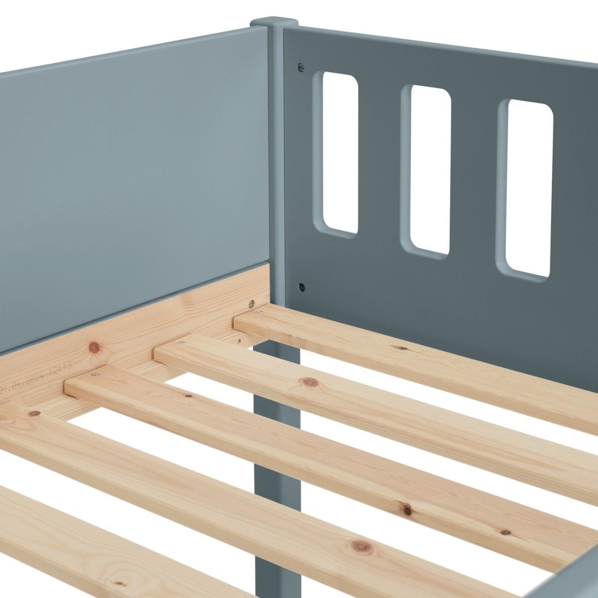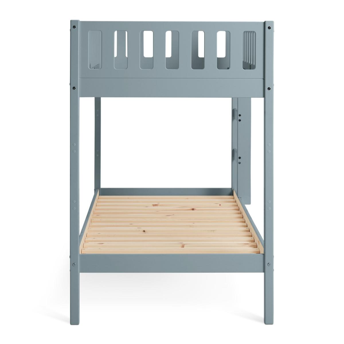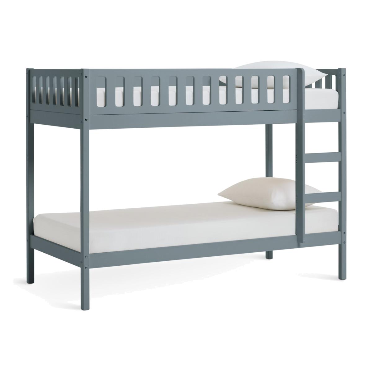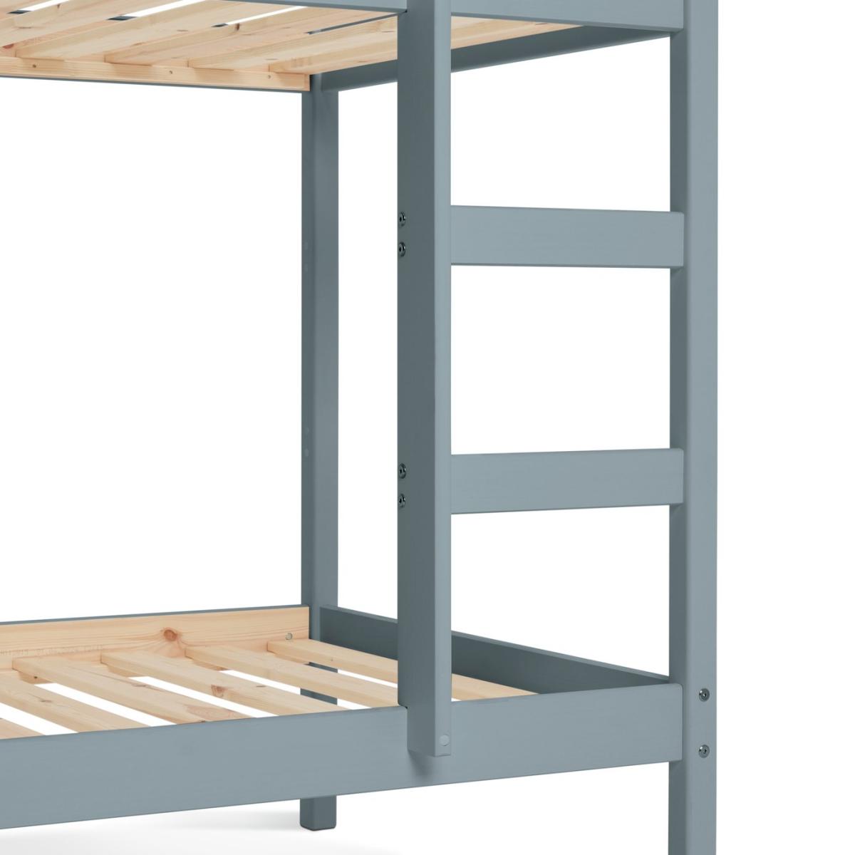 The Ronnie Bunk Bed combines style and practicality, making it the perfect addition to your child's bedroom. Its sleek finish and clean lines bring a sophisticated touch that complements various decor styles. Built with a sturdy frame and durable slats, it ensures long-lasting support and comfort for years of restful sleep. With simple assembly instructions, setting up the bed is quick and hassle-free. Designed with elegance, durability, and convenience in mind, the Ronnie Bunk Bed is an ideal choice for modern living. Part of the Ronnie collection. Bunk: Single bed. Blue bed with a solid wood frame. Includes wooden slats. Packed flat - 2 people recommended. WARNING "This product must be attached to a wall or building structure". Ladder can be positioned either side of the bed. Maximum user weight per bunk 120kg. For ages 6 years and over. Suitable for adult use (safety tested to 100kg). Mattresses: For safety, maximum depth of mattress to be used on top bunk is 16cm. Dimensions: Frame size L195.3, W101.5, H143.8cm. Safety rail height 32cm. Height between bunks 81.6cm. Clearance between floor and underside of bed 24cm. Bed weight 44.9kg. Package dimensions: Package 1 size H17.1, W37.5, D192.5cm. General Information: Manufacturer's 2 year guarantee.
