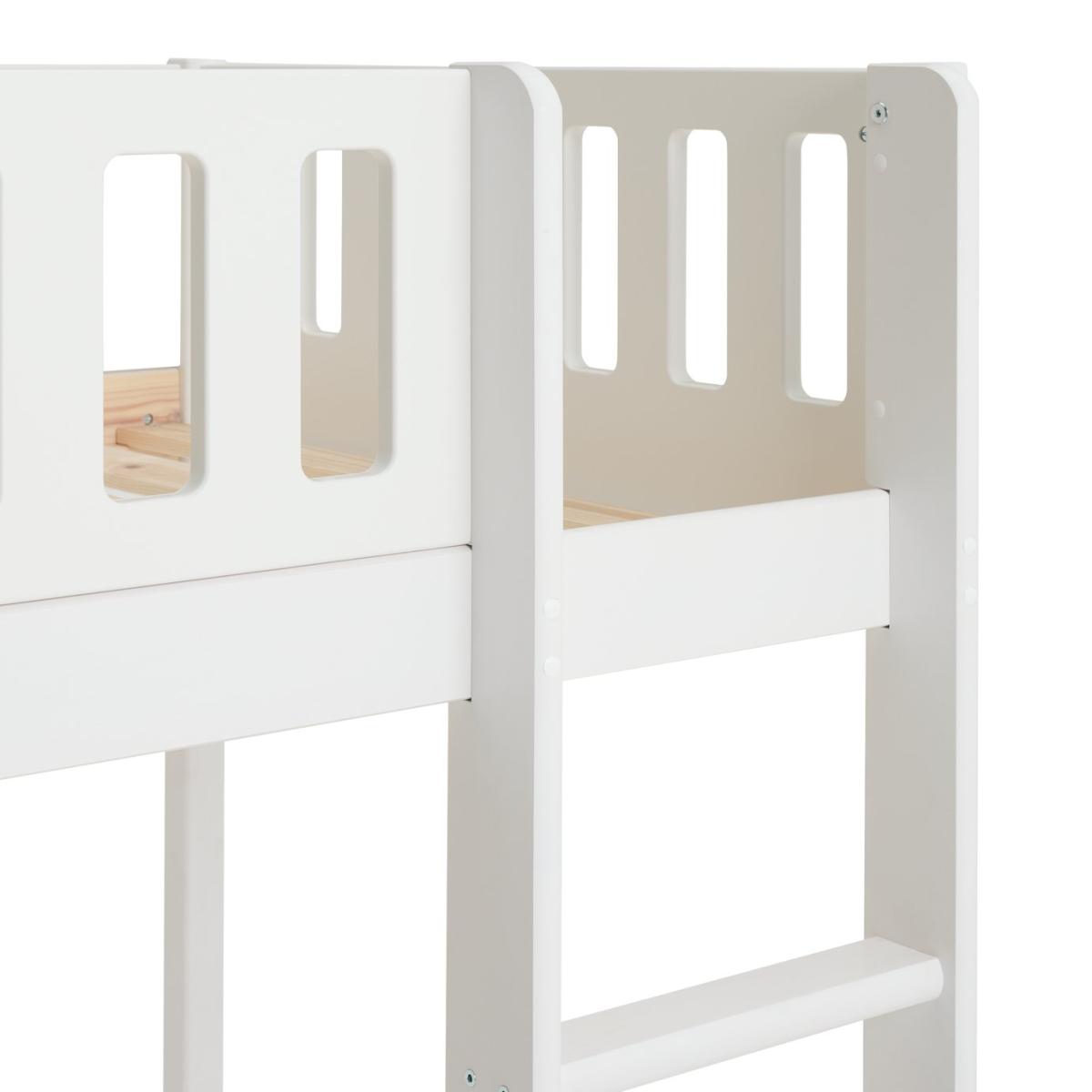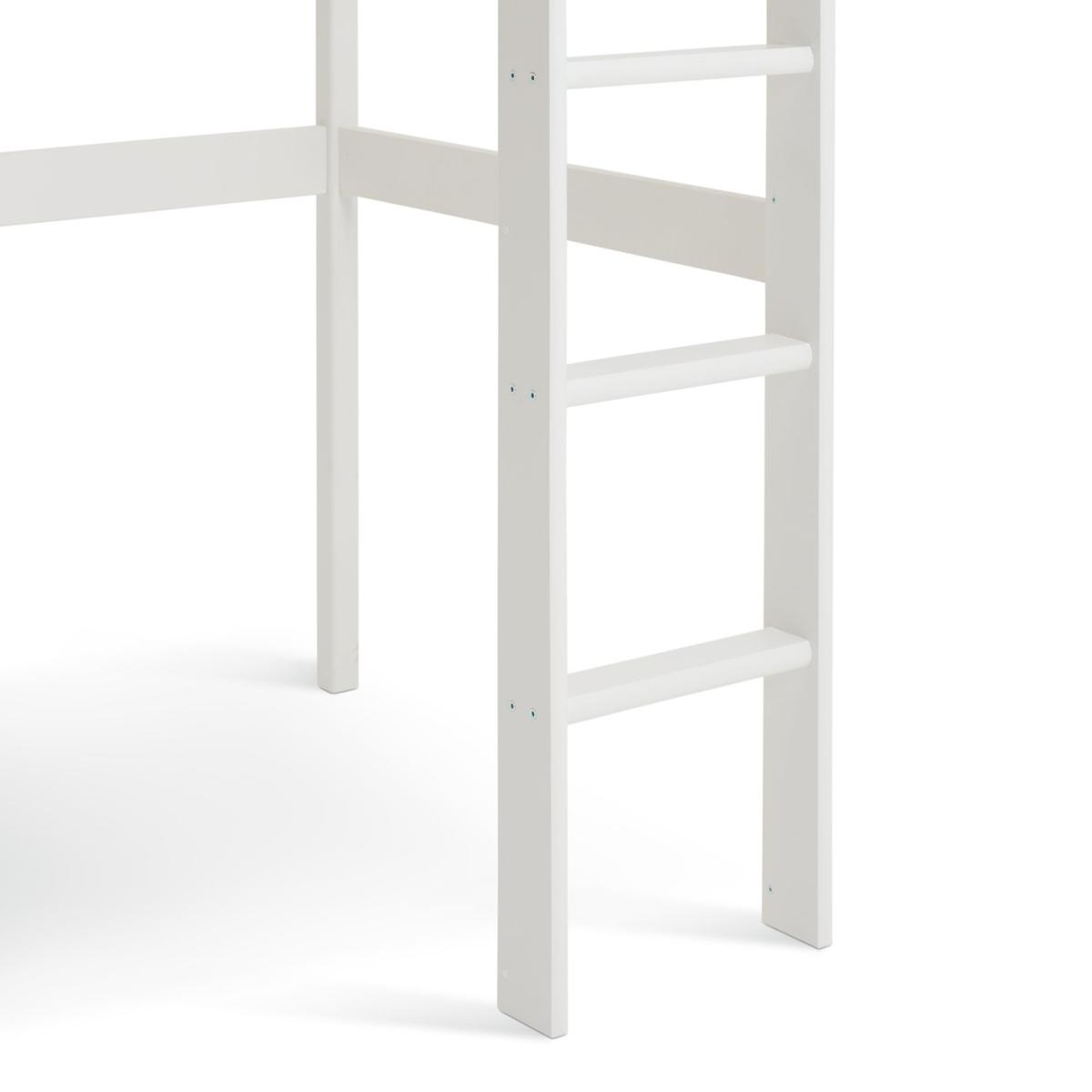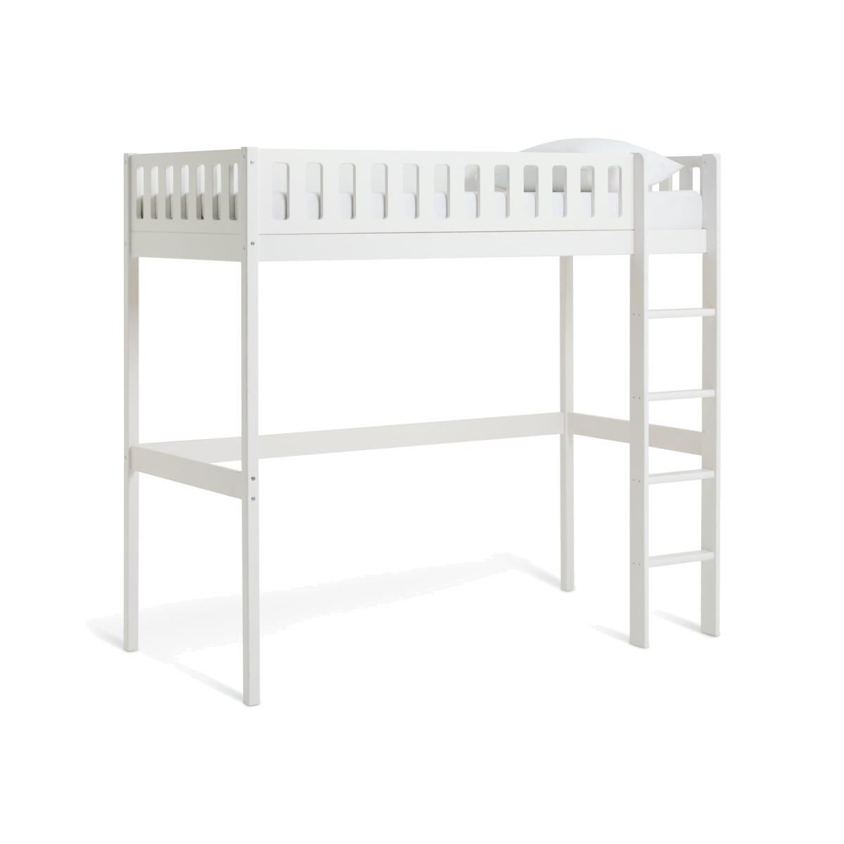 The Ronnie High Sleeper is the ultimate blend of style and functionality, transforming your child's bedroom into a fun, practical space. Its crisp white finish and clean lines add a touch of sophistication, seamlessly fitting various decor styles. Crafted with a sturdy frame and durable slats, it provides reliable support for years of restful sleep. With easy-to-follow assembly instructions, setup is a breeze. Combining elegance, durability, and convenience, the Ronnie High Sleeper is a perfect solution for modern living. Part of the Ronnie collection. Sleeper: Single bed. White bed with a solid wood frame. Includes wooden slats. Packed flat - 2 people recommended. WARNING "This product must be attached to a wall or building structure". Ladder can be positioned either side of the bed. Maximum user weight per bunk 120kg. For ages 6 years and over. Suitable for adult use (safety tested to 100kg). Mattress: For safety, maximum depth of mattress to be used is 16cm. Dimensions: Safety rail height 32cm. Frame size L195.3, W176.2, H101.5cm. Clearance between floor and underside of bed 139.6cm. Package dimensions: Package 1 size H13.8, W37.5, D195.3cm. General information: Manufacturer's 2 year guarantee.