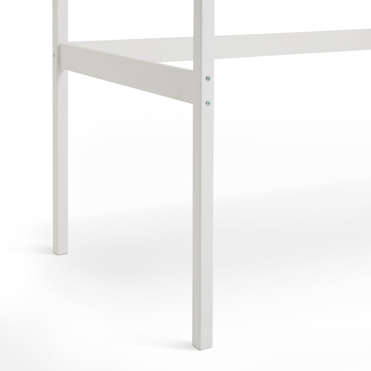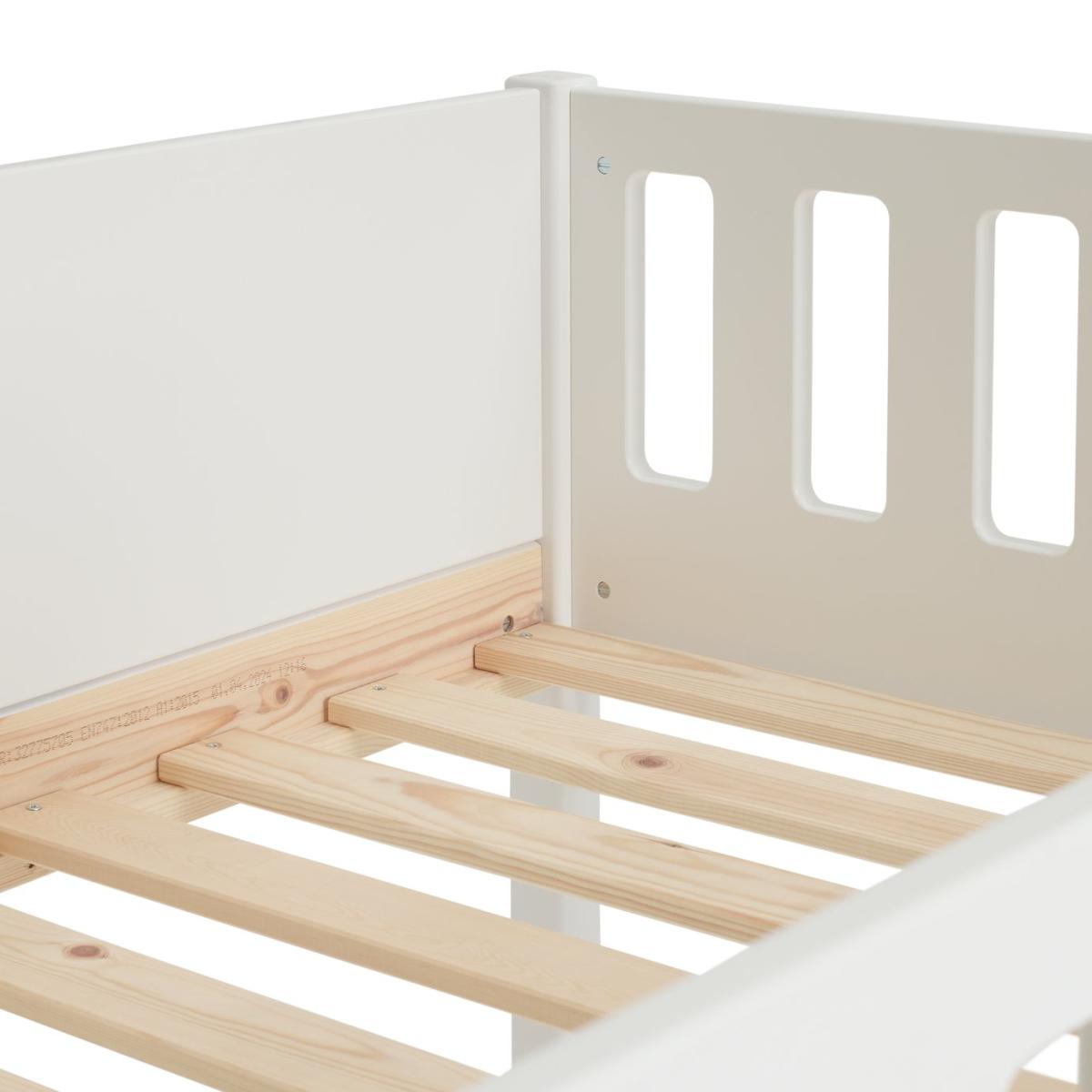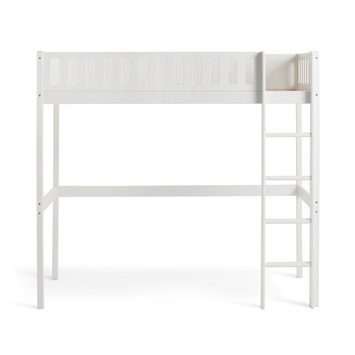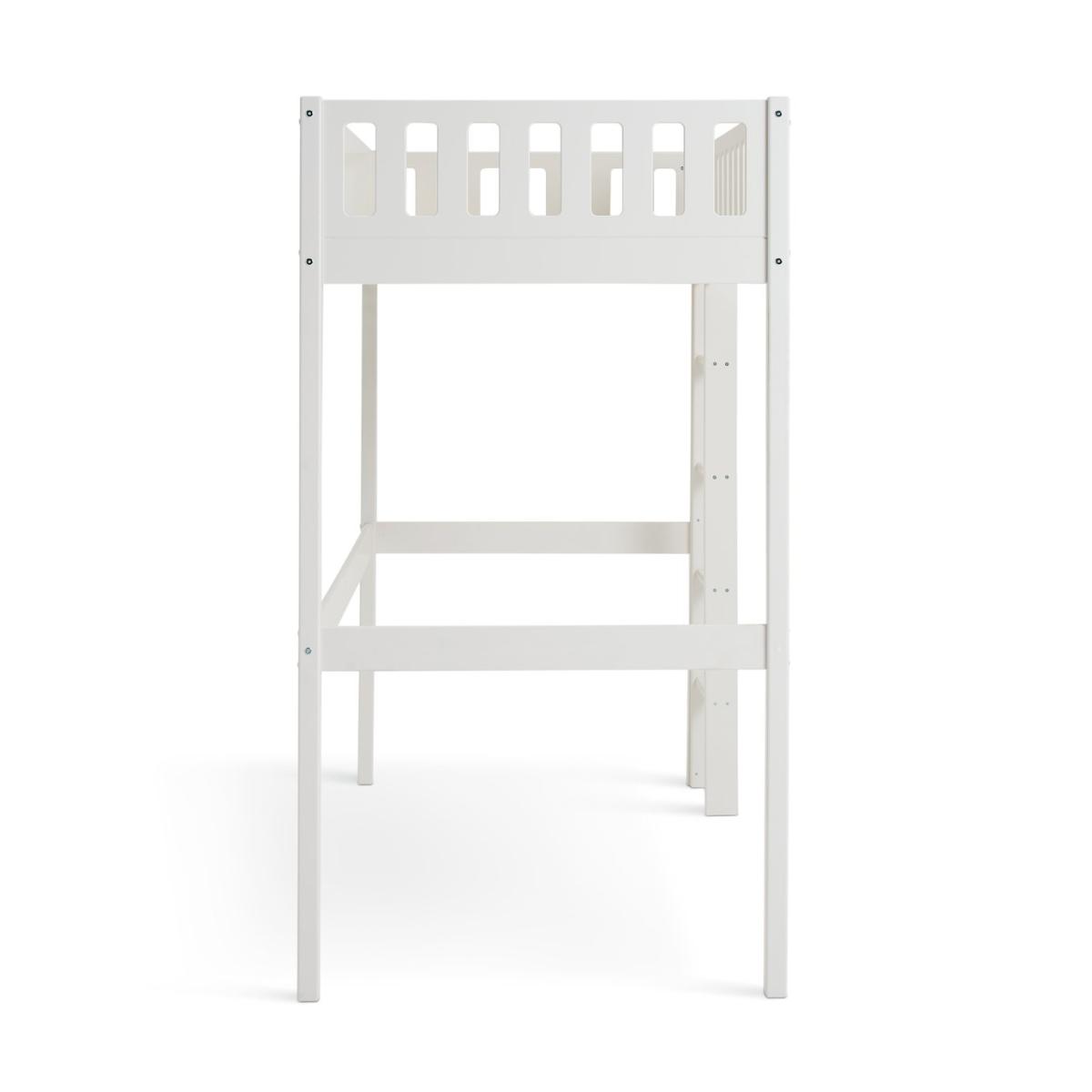 The Ronnie High Sleeper is the ultimate blend of style and functionality, transforming your child's bedroom into a fun, practical space. Its crisp white finish and clean lines add a touch of sophistication, seamlessly fitting various decor styles. Crafted with a sturdy frame and durable slats, it provides reliable support for years of restful sleep. With easy-to-follow assembly instructions, setup is a breeze. Combining elegance, durability, and convenience, the Ronnie High Sleeper is a perfect solution for modern living. Part of the Ronnie collection. Sleeper: Single bed. White bed with a solid wood frame. Includes wooden slats. Packed flat - 2 people recommended. WARNING "This product must be attached to a wall or building structure". Ladder can be positioned either side of the bed. Maximum user weight per bunk 120kg. For ages 6 years and over. Suitable for adult use (safety tested to 100kg). Mattress: For safety, maximum depth of mattress to be used is 16cm. Dimensions: Safety rail height 32cm. Frame size L195.3, W176.2, H101.5cm. Clearance between floor and underside of bed 139.6cm. Package dimensions: Package 1 size H13.8, W37.5, D195.3cm. General information: Manufacturer's 2 year guarantee.