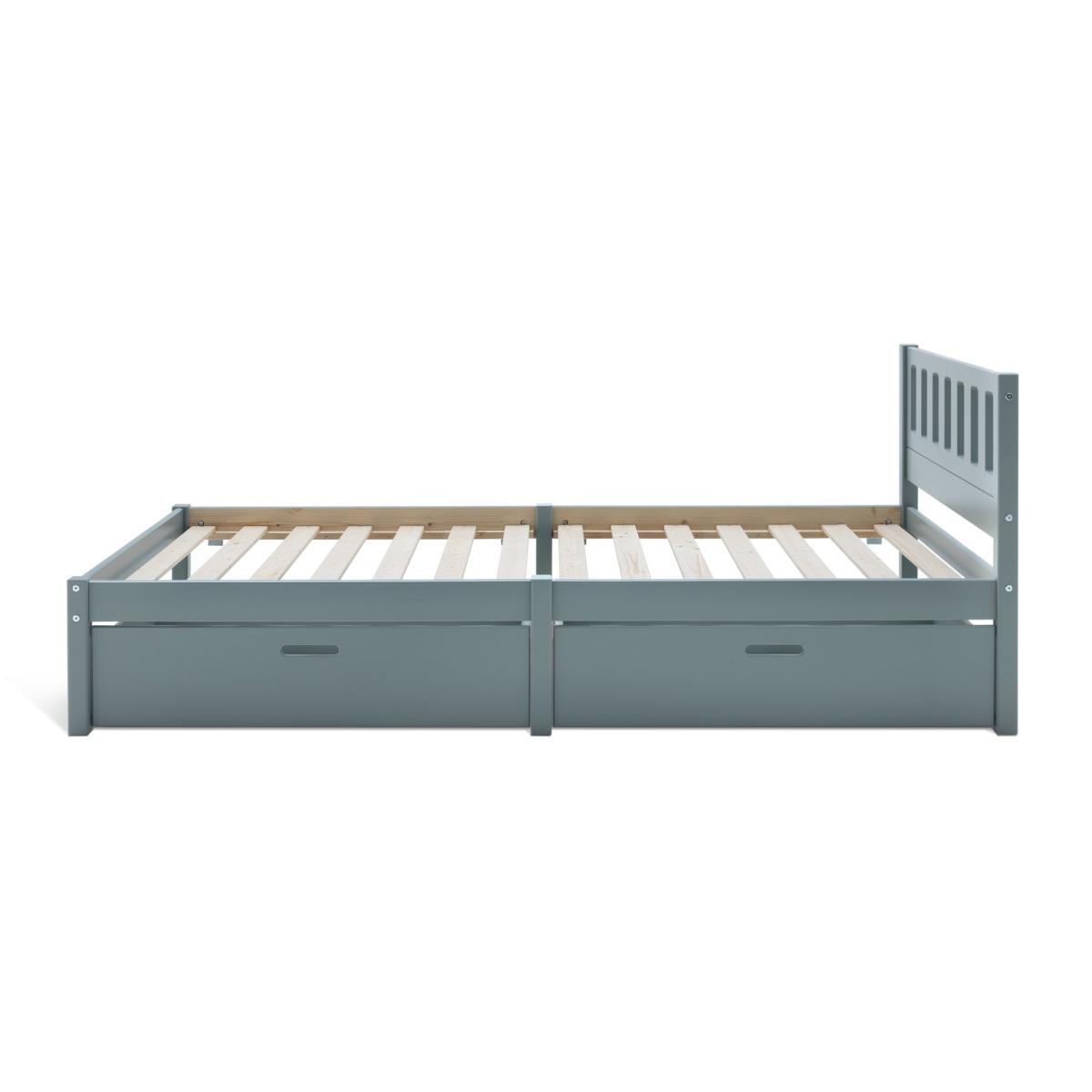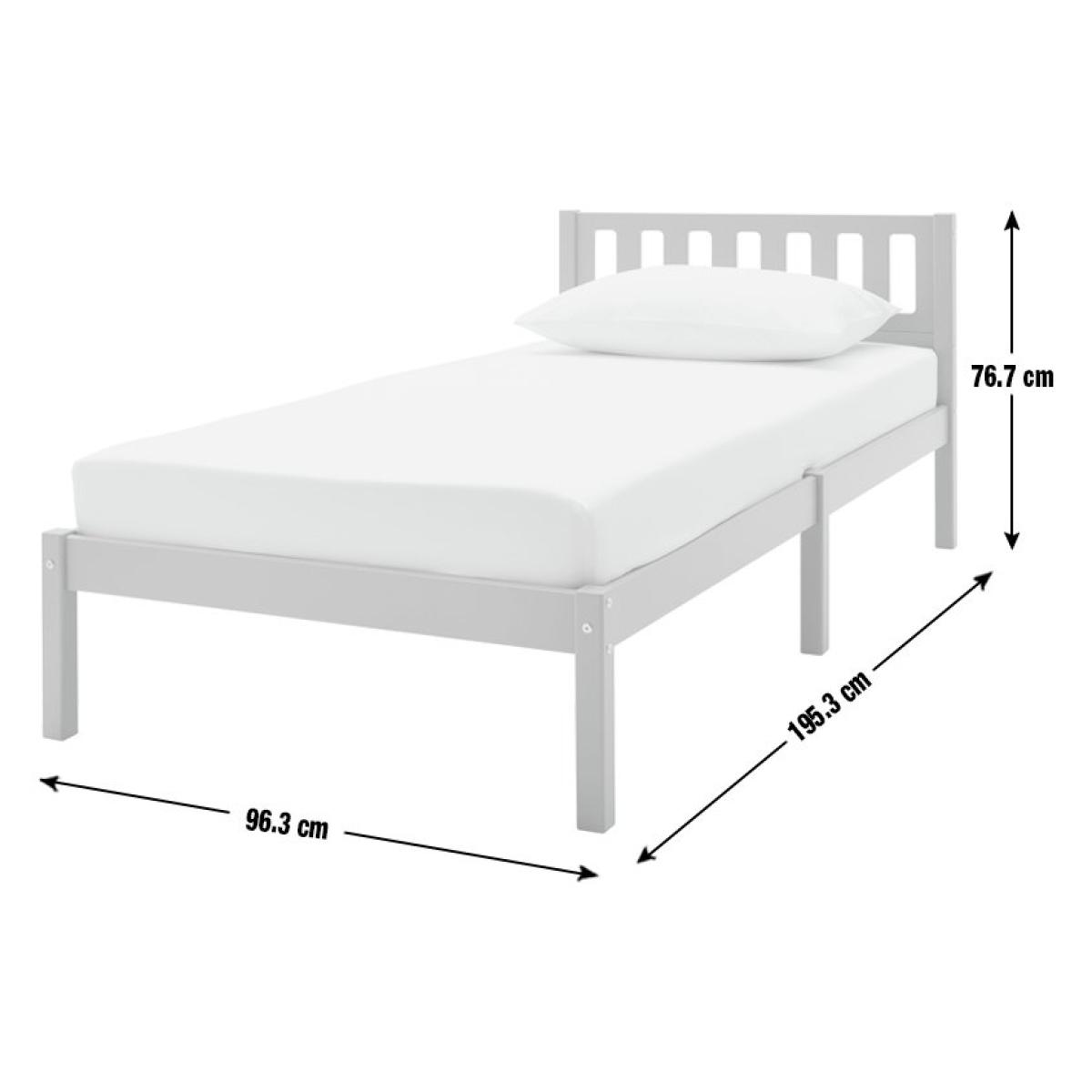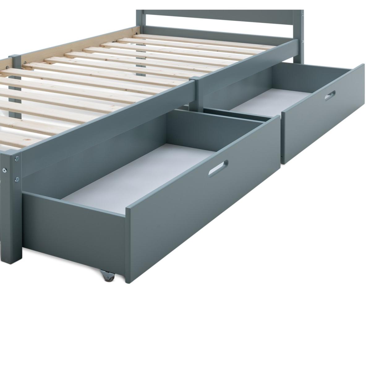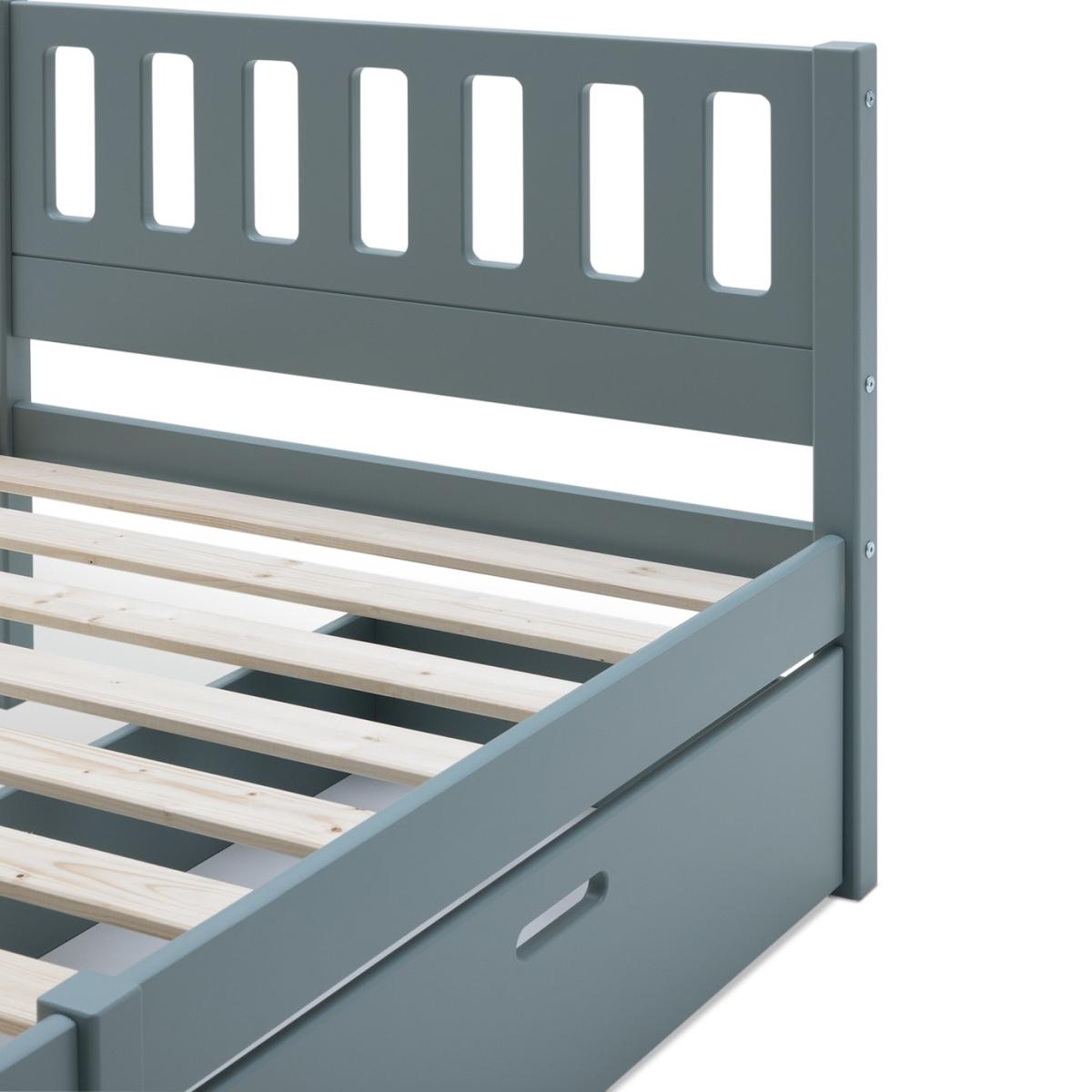 Keep it simple with Ronnie. Crafted from solid pine, this shaker style bedframe is designed to stand the test of time and energetic youngsters. The blue grey painted finish brings a modern freshness. Need extra storage? No problem, it comes with 2 freestanding underbed open drawers. Both drawers are on castors so they're a doddle to pull out and tuck away again. Smart, sturdy and made for sweet dreams. Part of the Ronnie collection. Bed frame: Single bed. Grey bed with a mdf and solid wood frame. Includes wooden slats. Packed flat - 2 people recommended. Maximum user weight 120kg. For ages 4 years and over. Suitable for adult use (safety tested to 100kg). Mattress: (not included). Dimensions: Frame size L195.3, W96.3, H76.7cm. Drawer size H23, W90.6, D46.5cm. Package dimensions: Package 1 size H97, W41.8, D11.9cm. Package 2 size H99.4, W45.8, D6.1cm. General information: Manufacturer's 2 year guarantee.