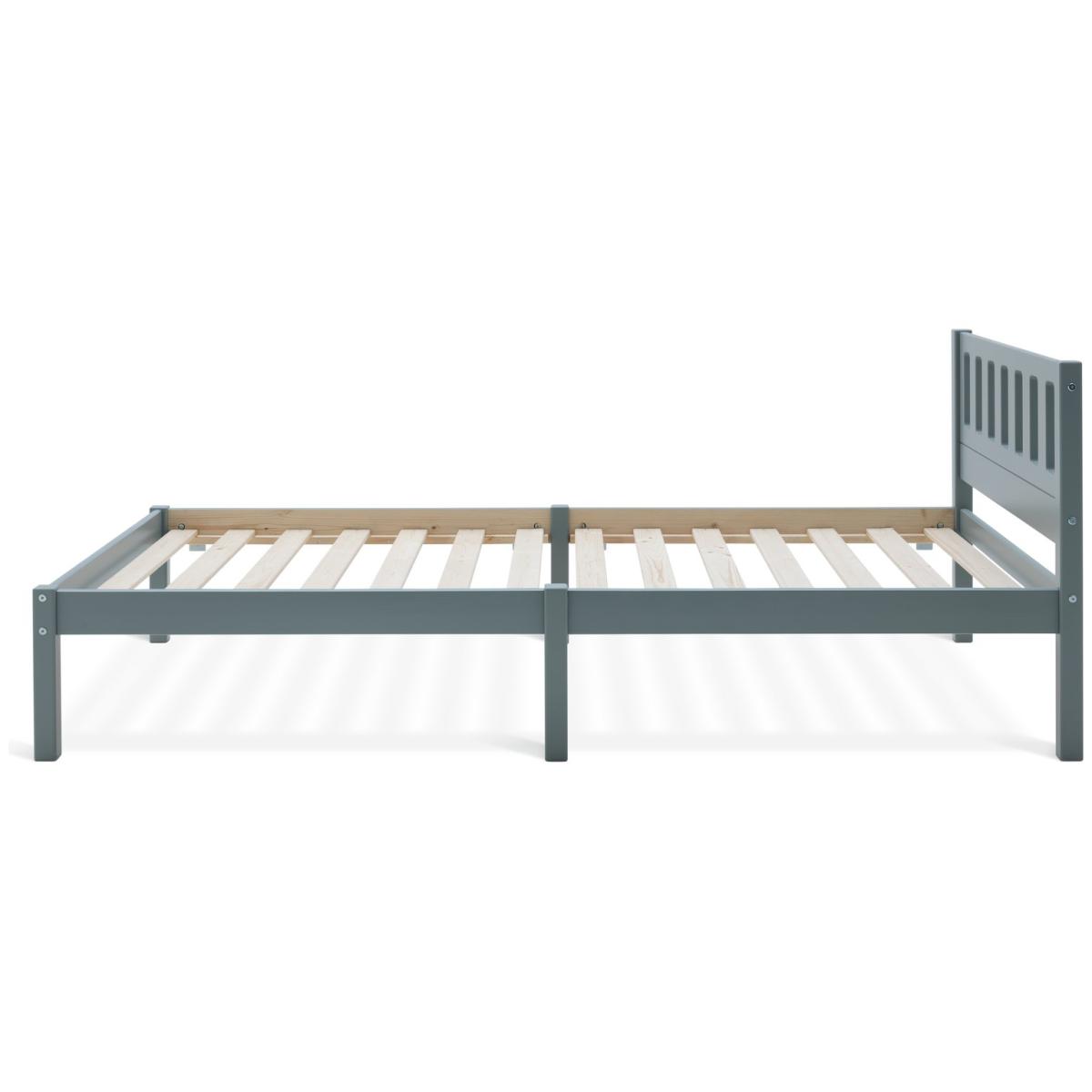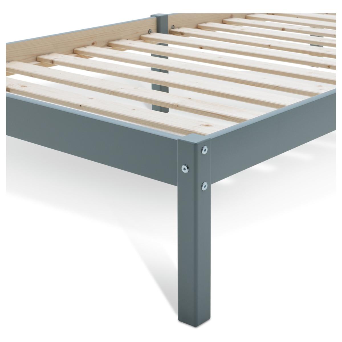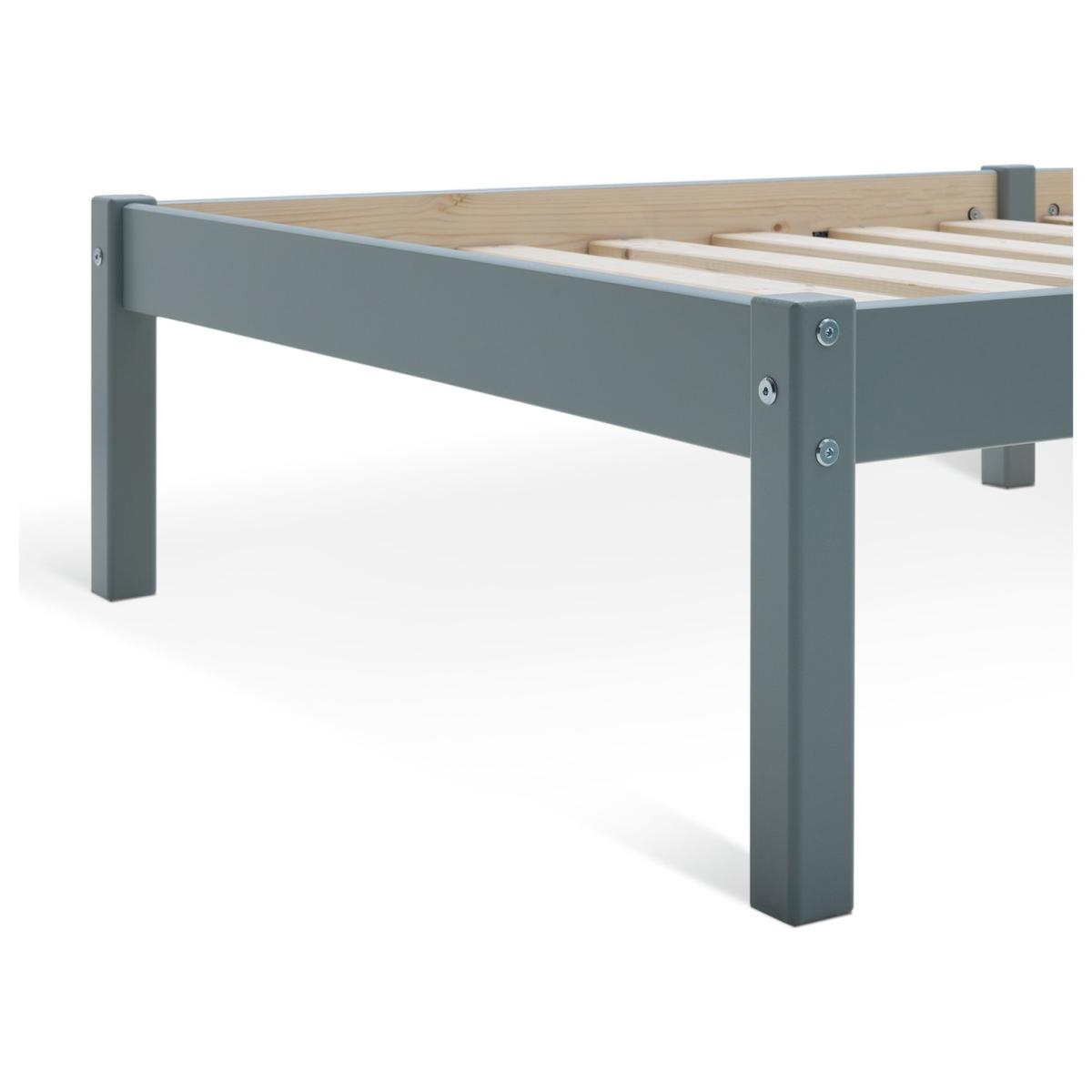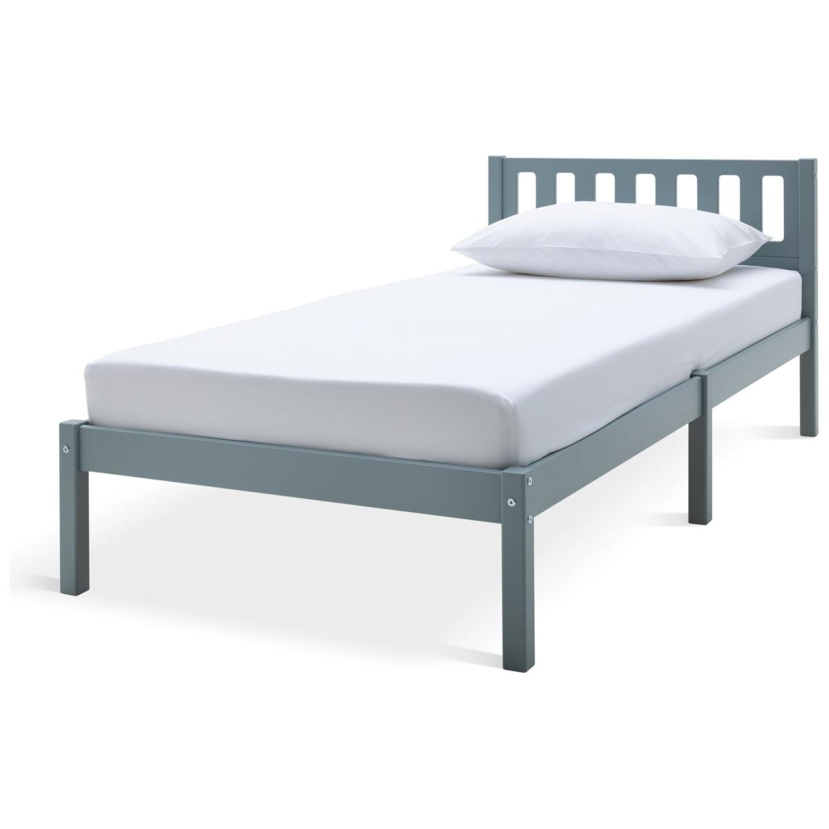 Keep it simple with Ronnie. Crafted from solid pine, this shaker style bedframe is designed to stand the test of time and energetic youngsters. The blue grey painted finish brings a modern freshness. Smart, sturdy and made for sweet dreams. Part of the Ronnie collection. Bed frame: Single bed. Grey bed with a mdf and solid wood frame. Includes wooden slats. Packed flat - 2 people recommended. Maximum user weight 120kg. For ages 4 years and over. Suitable for adult use (safety tested to 100kg). Mattress: (not included). Dimensions: Frame size L195.3, W96.3, H76.7cm. Package dimensions: Package 1 size H97, W41.8, D11.9cm. General information: Manufacturer's 2 year guarantee.