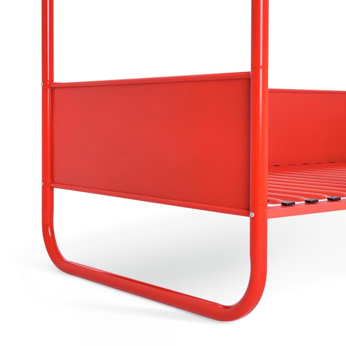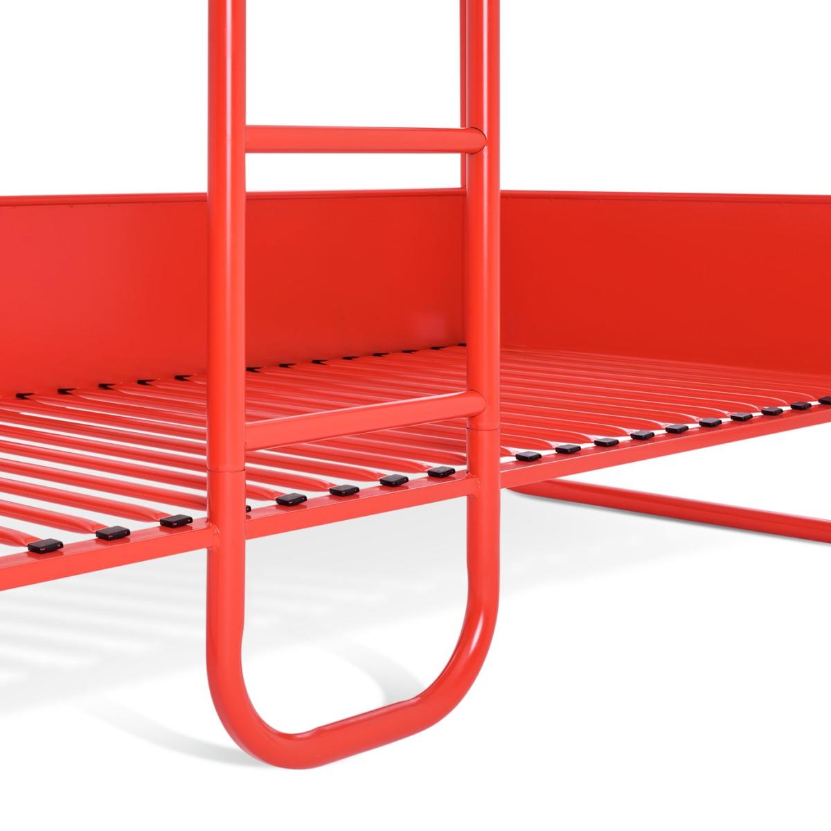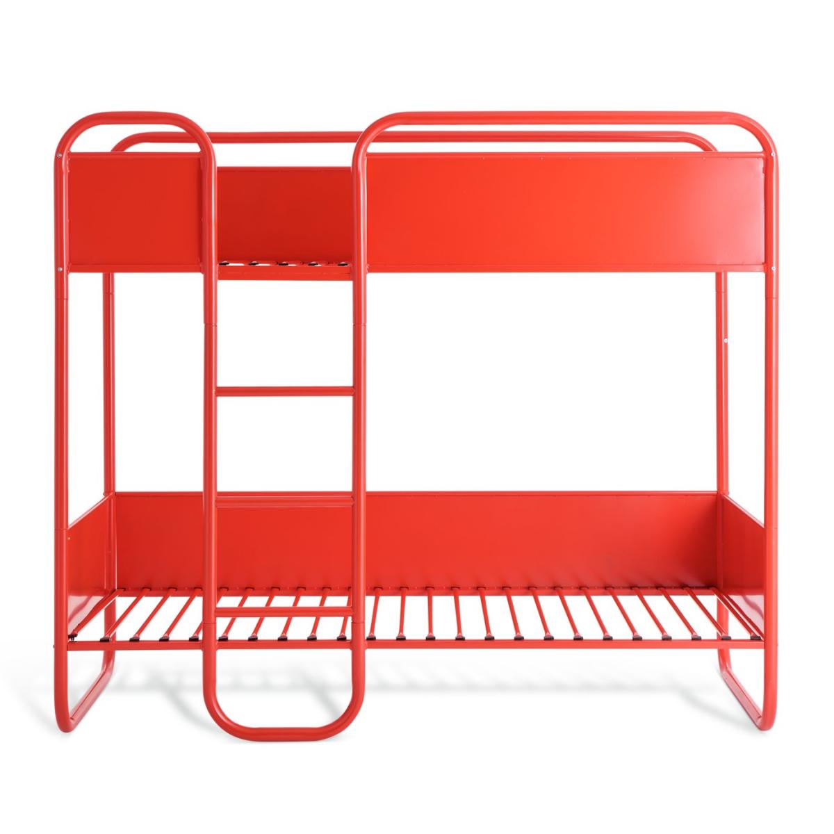 Straight out of the Habitat archive, meet Rory. Re-imagined. One of our all-time, favourite bunk beds with a fluid and stylish look. Designed to stand the test of time, retro Rory has an integral ladder and an immensely strong tubular steel frame and slatted base. But the best bit, no sharp edges. Powder coated in a rich red to add colour and playfulness to the bedroom. Bring it on kids. Part of the Rory collection. Bunk: Single bed. Red bed with a metal and metal frame. Includes metal slats. Self-assembly - 2 people recommended. WARNING "This product must be attached to a wall or building structure". Ladder is in a fixed position. Maximum user weight per bunk 100kg. For ages 6 years and over. Suitable for adult use (safety tested to 100kg). Mattresses: (included). For safety, maximum depth of mattress to be used on top bunk is 16cm. Dimensions: Frame size L195, W96, H169cm. Safety rail height 32cm. Height between bunks 90cm. Clearance between floor and underside of bed 12cm. Bed weight 56.6kg. Package dimensions: Package 1 size H16.5, W203, D62cm. Package 2 size H17.5, W104.5, D65cm. General Information: Manufacturer's 1 year guarantee.