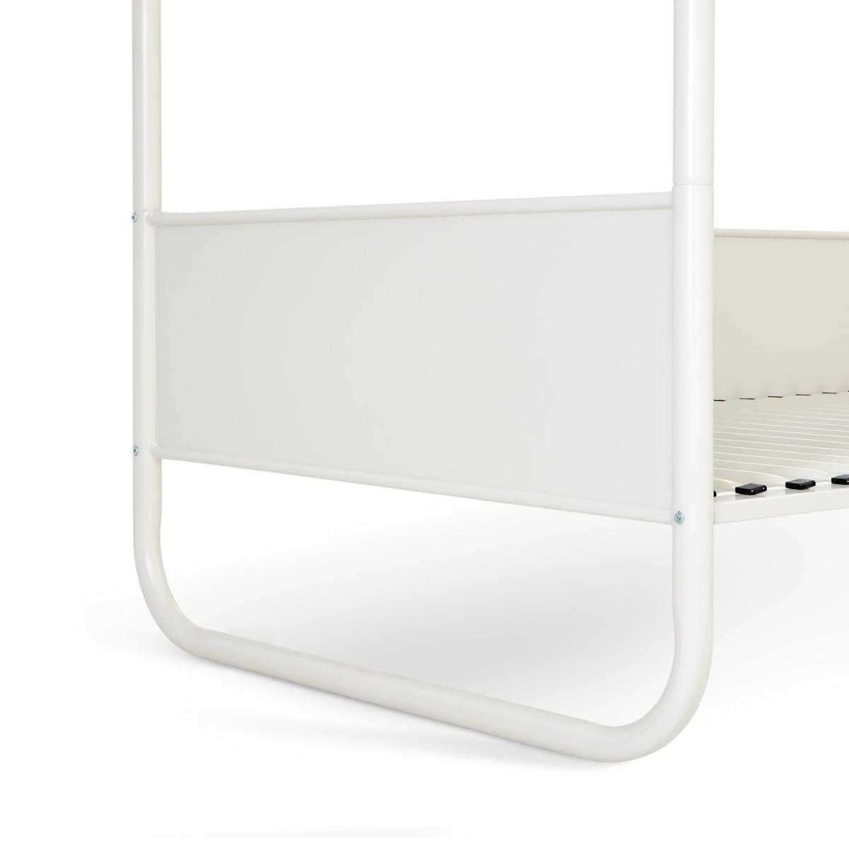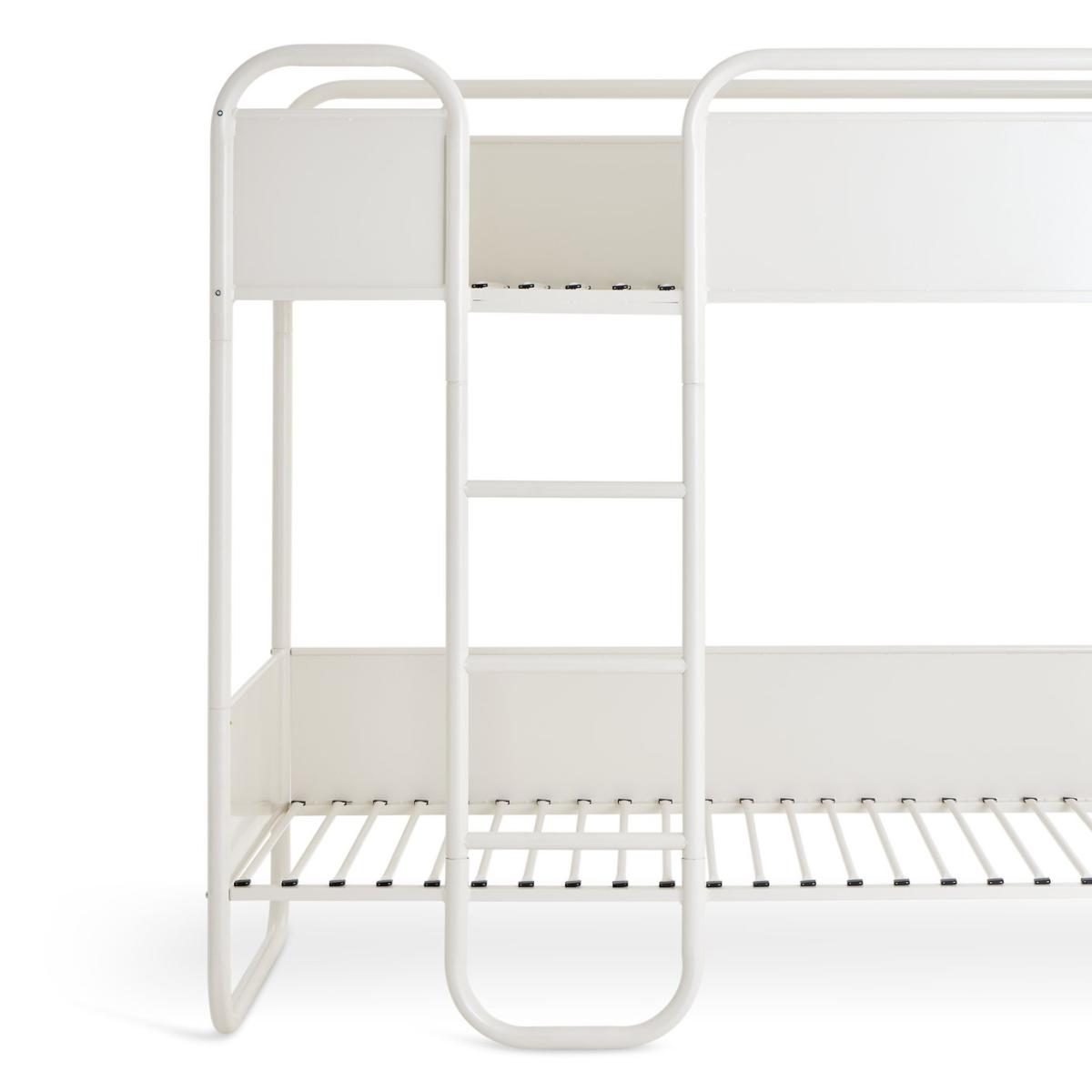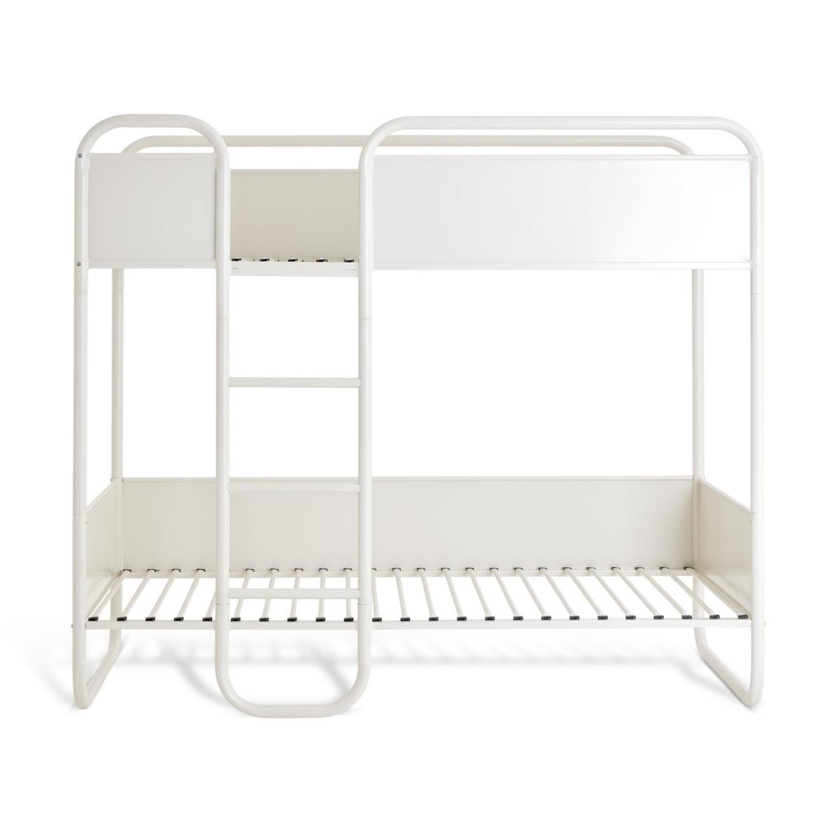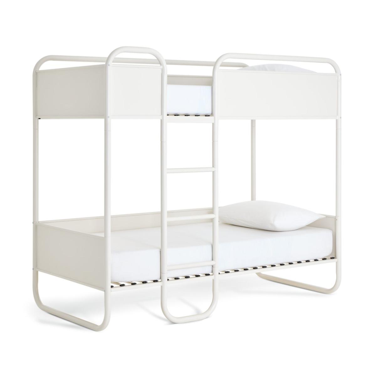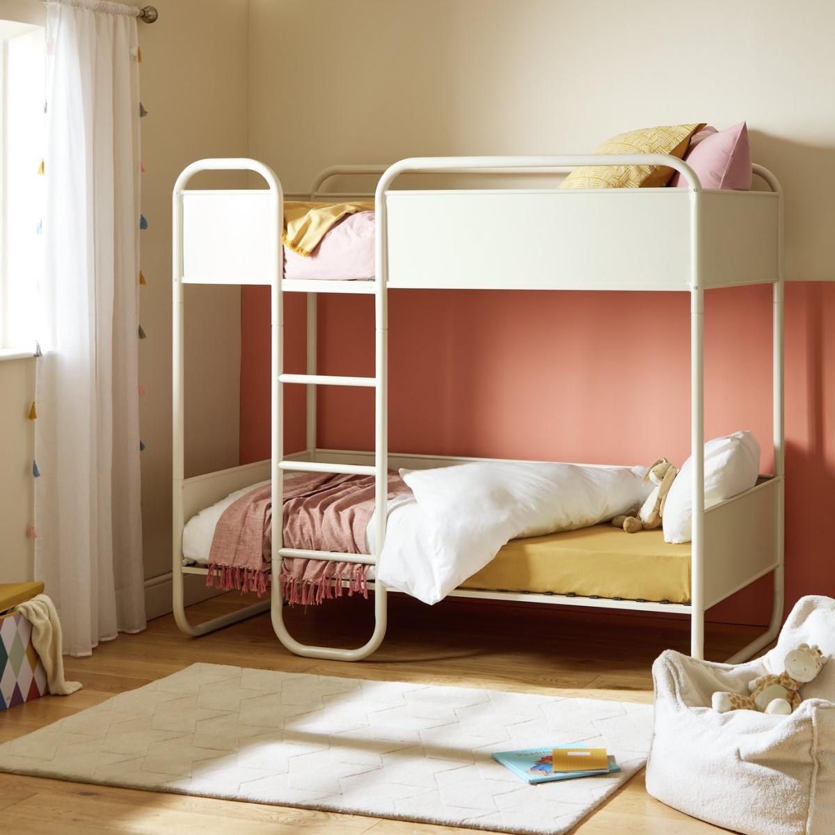 Straight out of the Habitat archive, meet Rory. Re-imagined. One of our all-time, favourite bunk beds with a fluid and stylish look. Designed to stand the test of time, retro Rory has an integral ladder and an immensely strong tubular steel frame and slatted base. But the best bit, no sharp edges. Powder coated in a cool grey to work with any colourway. Bring it on kids. Part of the Rory collection. Bunk: Single bed. Grey bed with a metal frame. Includes metal slats. Self-assembly - 2 people recommended. WARNING "This product must be attached to a wall or building structure". Ladder is in a fixed position. Maximum user weight per bunk 100kg. For ages 6 years and over. Suitable for adult use (safety tested to 100kg). Mattresses: Requires 2 mattresses (included). Habitat Kids mattress. Medium feel mattress. Knit cover with flat top finish. Rotate mattress regularly. For safety, maximum depth of mattress to be used on top bunk is 16cm. Dimensions: Frame size L195, W96, H169cm. Safety rail height 32cm. Mattress size L190, W90, H16cm. Height between bunks 90cm. Clearance between floor and underside of bed 31cm. Bed weight 56.6kg. Package dimensions: Package 1 size H16.5, W203, D62cm. Package 2 size H17.5, W104.5, D65cm. General Information: Manufacturer's 1 year guarantee.