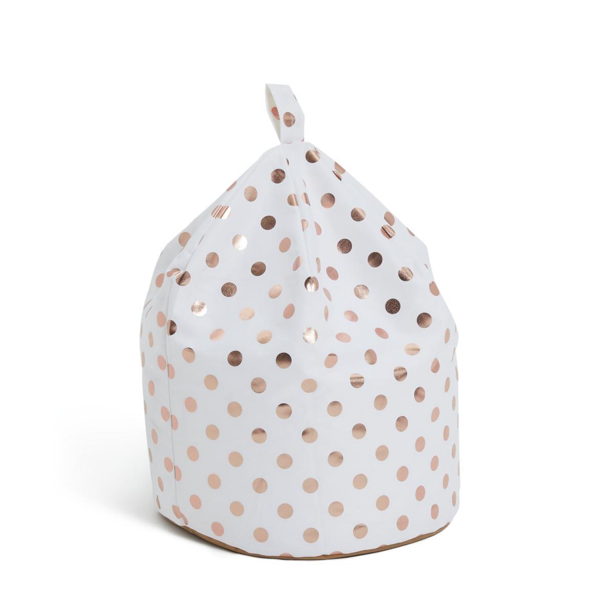Rose gold and polka dots? Two of our favourite things! Designed for comfort, but with a glamorous chic vibe to brighten up your room, this bean bag is great for chilling out, putting your feet up or just kicking back with a book. A stunning accessory for any room, just move it around easily with the loop handle and make yourself comfy wherever you are. Our products are designed with kids in mind and are built to cope with everyday use. Tested to the latest safety regulations, they comply with British and European safety standards.