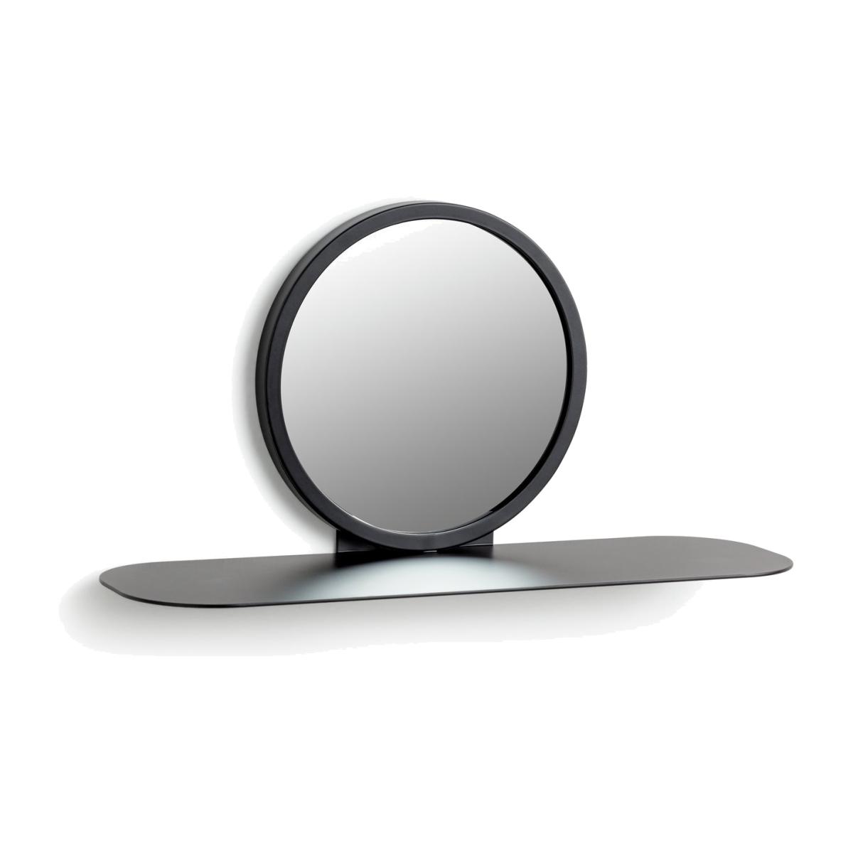 Hello beautiful. Our circular wall-mounted mirror is a real statement maker. With a smart black metal frame, it's contemporary with an industrial edge. A handy shelf makes a home for keys, perfumes or makeup, Fix it up in your bedroom or in the hallway to check your hair on the way out the door. What we call an all-rounder. Size H20, W40, D12.8, Diameter 20cm. Round. Metal. Keyhole. Glass mirror. Wall mounted mirror. Freestanding mirror. 1.31kg. Fully assembled. Distance between fixings 4cm. General information:We are excited to be welcoming some of our favourite HOME products into the Habitat range. Your product may arrive in Habitat or HOME packaging.
