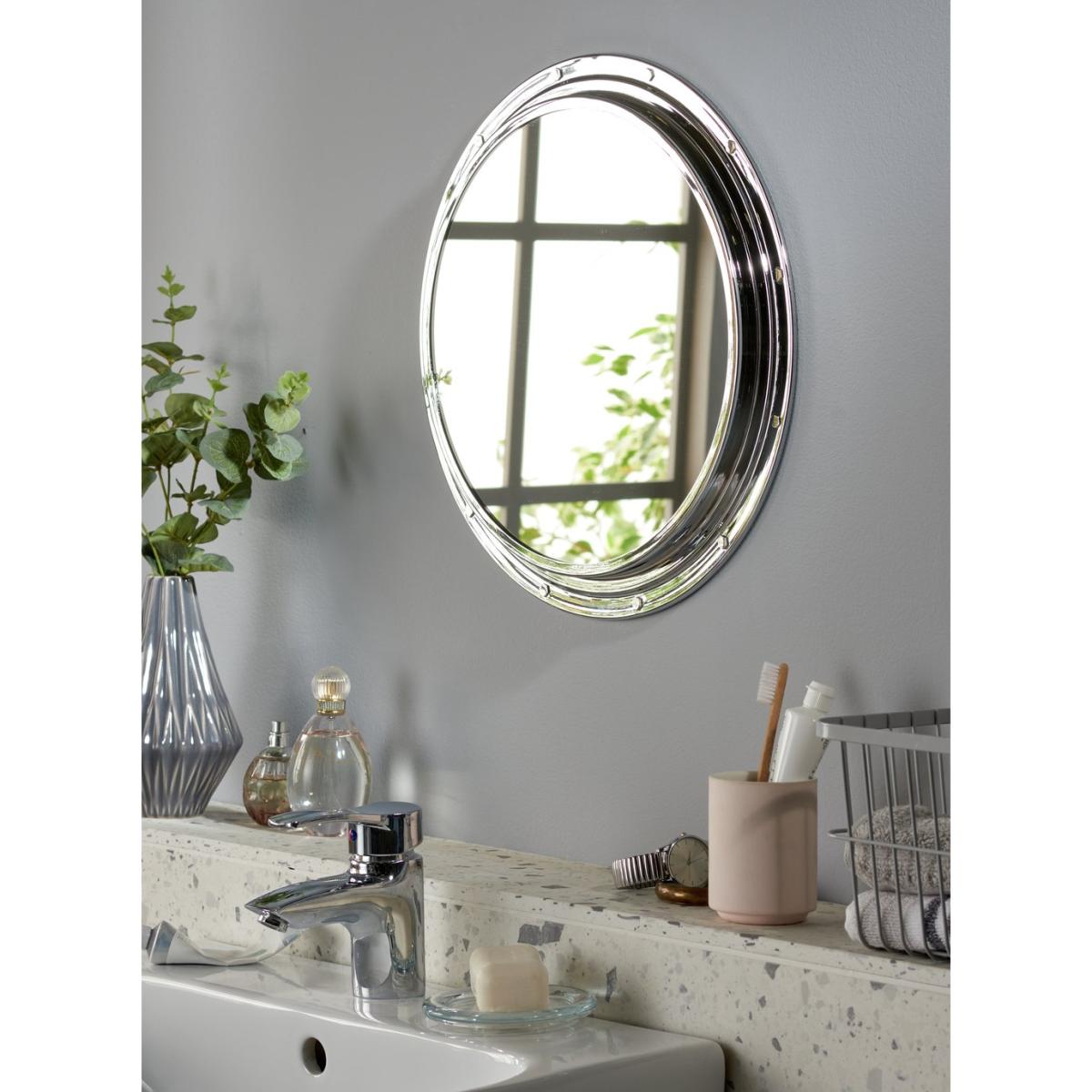 Feeling ship shape? Get nautical with this circular mirror. A porthole-inspired beauty, the studded details and raised silhouette add plenty of interest. And the chrome pairs well with any decor. Great for brightening up a hallway, bedroom or bathroom. A simple, timeless design. We're on board.