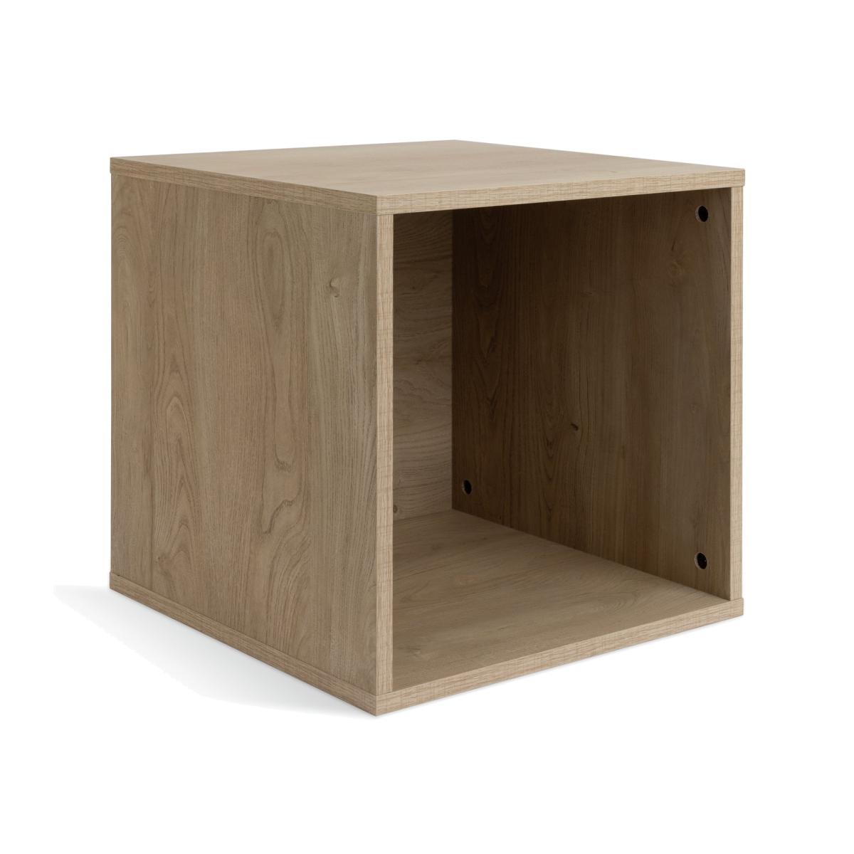 Create spaces that work for you with our oak finish modular shelving unit. This square storage cube can be used singularly or as part of a stack. Also pairs with the other pieces in the Rubrics modular collection for a minimalist look with the warmth of wood. Part of the Rubrics collection. Made from wood effect - oak finish. Package includes 1 x (H39.7 W39.7 D39.7). Weight 6.5kg. Maximum load 10kg. 2 x metal fixing plates and fittings. 1 x wall fittings. Package dimensions: Package 1 H7.6, W48.9, D42.2cm. Weight 7.3kg. General Information: Packed flat - 2 people recommended. FSC certified meaning the materials used for this product are responsibly sourced. Manufacturer's 1 year.
