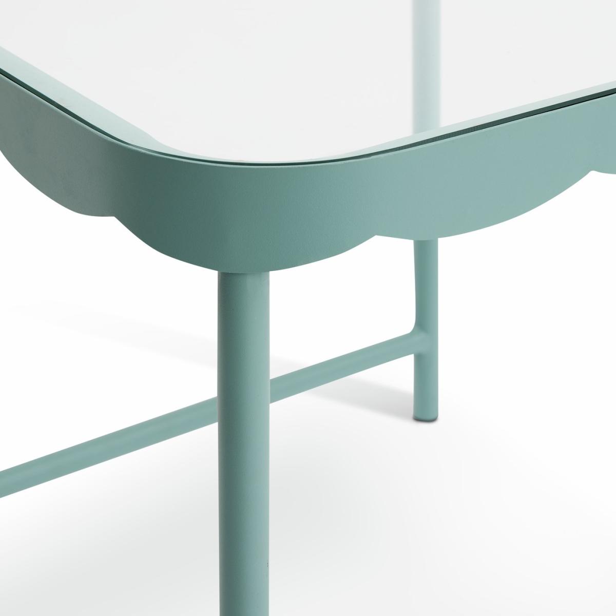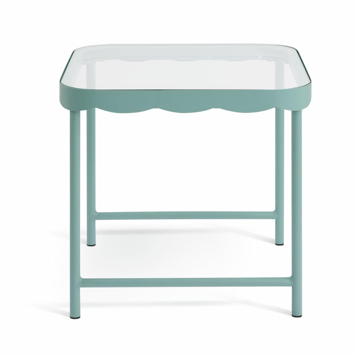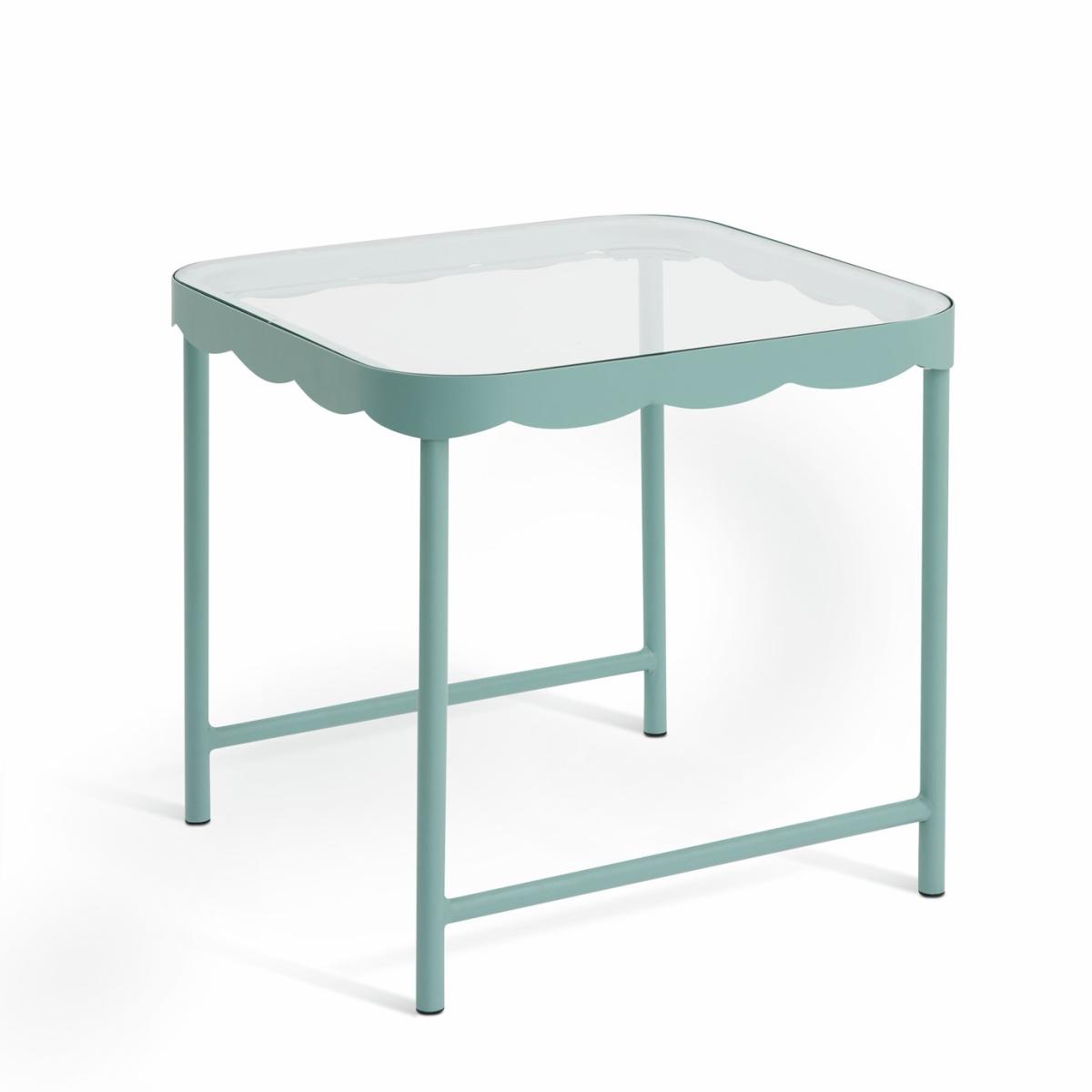 A smart, Scandi-style side table. The clear glass top encased in blue painted metal combines practicality with airiness. It provides useful surface space without feeling obtrusive. And the wave pattern on the frame gives it a designer edge. So simple, so Scandi. Part of the Rudo collection. Size H 39, W 45, D 45cm. Made from glass and metal. Weight 5.2kg. Self-assembly - 1 person recommended. Maximum load weight 150kg. Package Dimensions: Package 1 dimensions: H13, W51, D54cm. Package 1 weight: 6.4kg. General information: Manufacturer's 1 year guarantee.