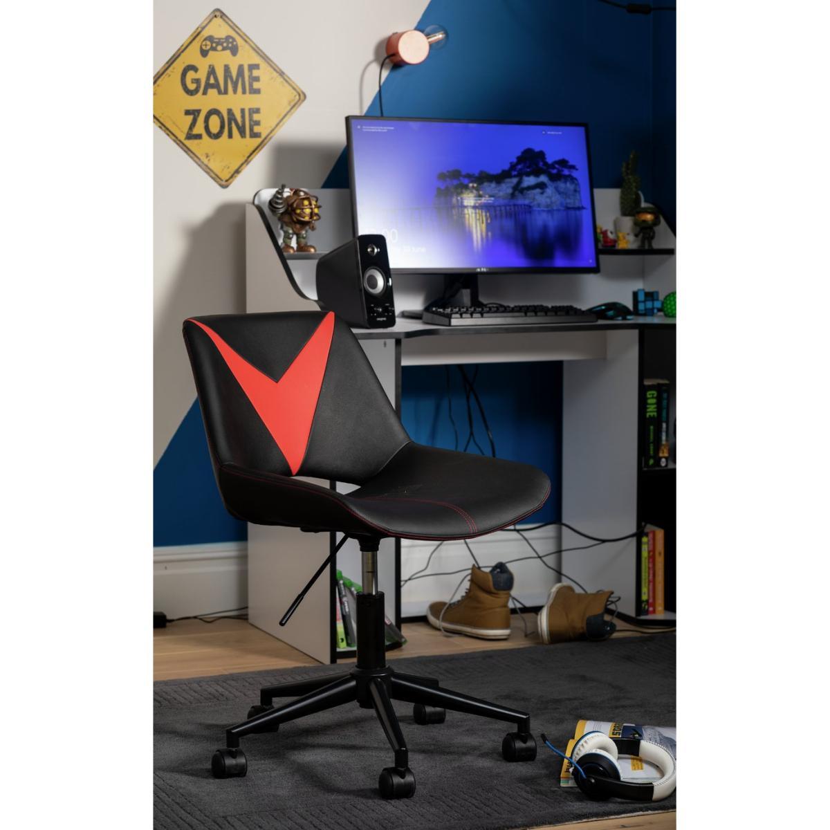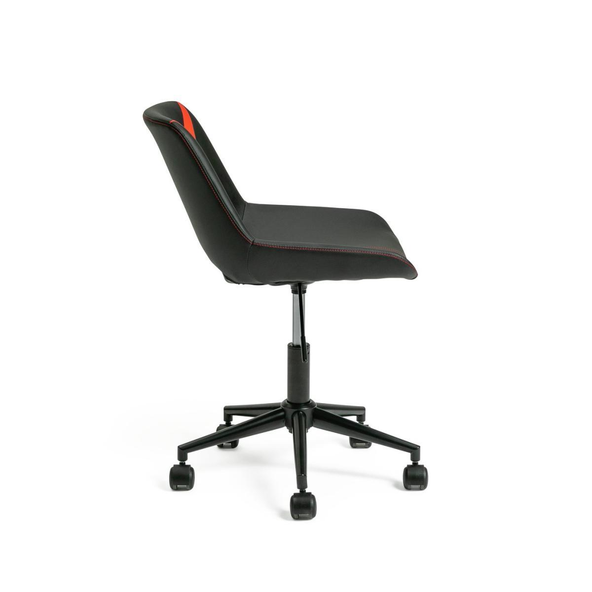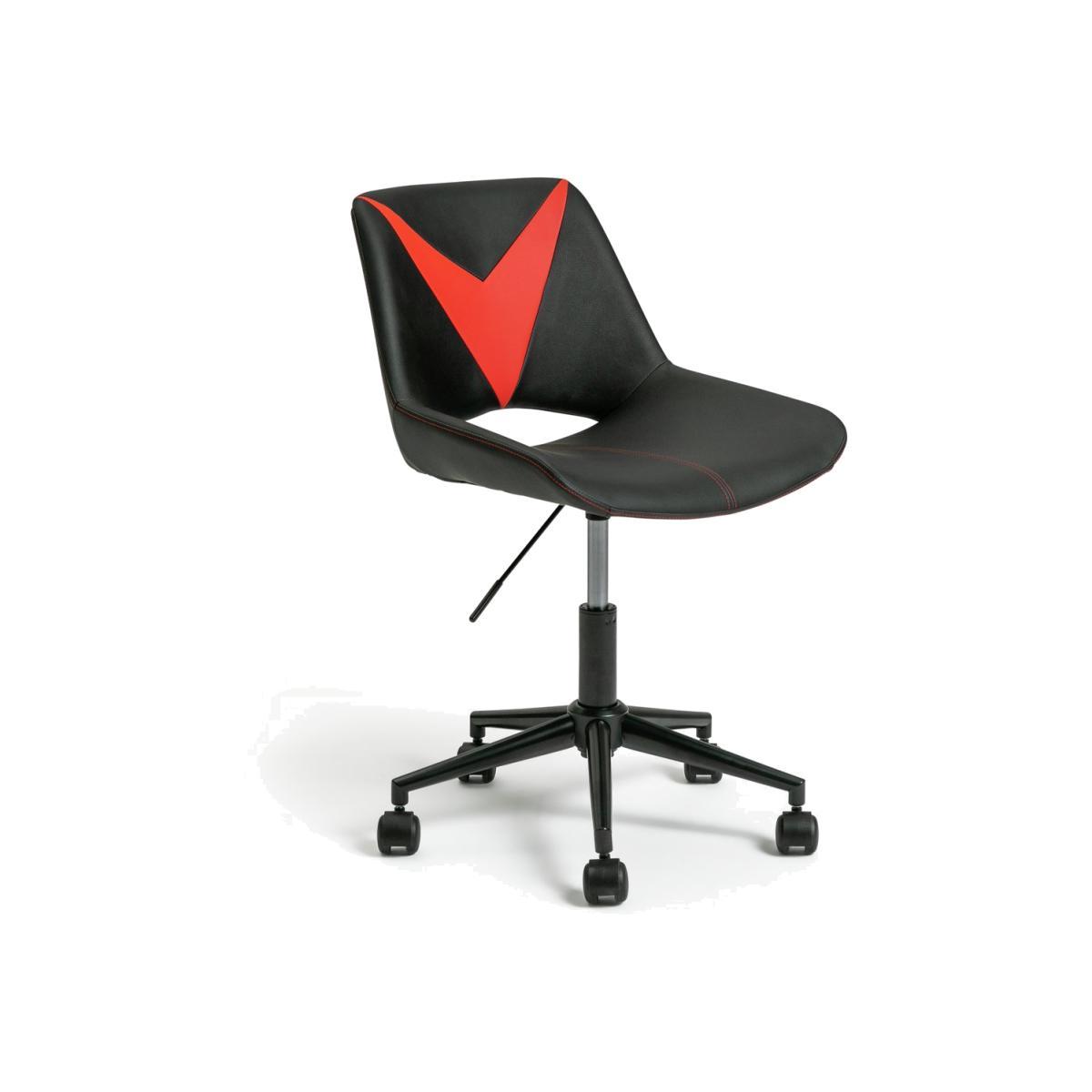 Conquer new territories and beat personal bests. With a cool, sporty aesthetic and ergonomic design, the Saber faux leather chair provides a comfortable seat for hours of gaming. It's upholstered in soft, faux leather and well-padded for comfort, with a contrasting red and black colour scheme. This chair is height adjustable, with swivel technology, and a curved back and seat shape that adjusts to your body. The rolling castors are suitable for all floors and ensure easy movement around your room. Game on.
