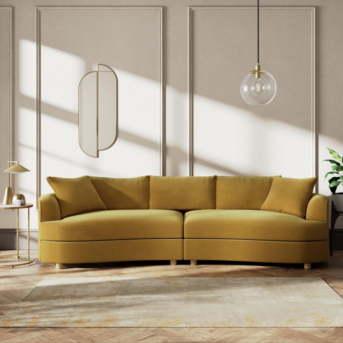 When it's made for you, you know you'll love it. The Sacha 4-seater split sofa has soft, sweeping nature inspired curves designed for cocooned cushioned comfort. Upholstered in a velvety sheen Chenille, the Sacha takes on a rich, soft, textured look. Its generous proportions are made for relaxed entertaining and memorable movie nights. And being split, it gives you layout options as well as being easier to move and to clean. Made for relaxing, the seat is filled with high density foam core wrapped in a softer foam layer to create the perfect balance of support, durability and recovery, while retaining a more tailored look. The reversible fibre-filled back cushion is smartly finished with piped detailing and tucked corners. Hand made to order in the UK, the Sacha uses quality materials and traditional techniques for furniture that's unique to you. Available in a choice of sizes and fabrics including Aquaclean technology protection built into the yarn, which is easy to clean with just water. Part of the Sacha collection. Material: Made from 100% polyester. Wooden feet - ash. Removable seats with foam filling. Removable cushion(s) with foam fibre wrap filling. Dimensions: Size H82, W270, D117cm. Floor to seat height: 45cm. Depth of seat: 57cm. Height of seat back: 40cm. Width of seating area between arms: 226cm. Height of arm rest: 69cm. Weight: 88kg. Packaged dimensions: Package size H70, W140, D122cm. Second package size H70, W140, D122cm. General information: We do more than deliver your product, we unpack, set it up and take away the packaging. Manufactured in the UK using components sourced globally. Professional clean only. Plump cushions regularly to maintain shape. Manufacturer's 15 year frame guarantee.