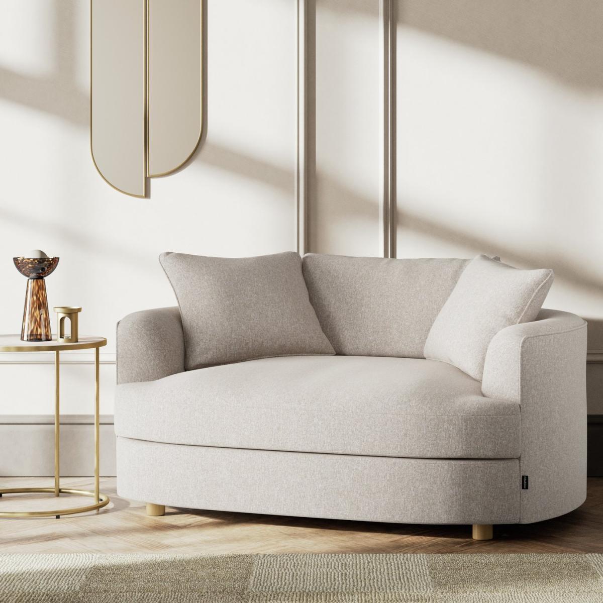 When it's made for you, you know you'll love it. Generous for one, cosy for two, the Sacha cuddle chair has soft, sweeping nature inspired curves designed for cocooned cushioned comfort. Upholstered in a modern Flat Weave, the Sacha takes on a smooth tonal look. Made for relaxing, the seat is filled with high density foam core wrapped in a softer foam layer to create the perfect balance of support, durability and recovery, while retaining a more tailored look. The reversible fibre-filled back cushion is smartly finished with piped detailing and tucked corners. Handmade to order in the UK. The Sacha uses quality materials and traditional techniques for furniture that's unique to you. Available in a choice of sizes and fabrics including Aquaclean technology protection built into the yarn, which is easy to clean with just water. Part of the Sacha collection. Material: Made from 100% polyester. Wooden feet. Removable seat with foam filling. Reversible cushion(s) with fibre filling. Dimensions: Size H82, W140, D117cm. Floor to seat height: 45cm. Depth of seat: 57cm. Height of seat back: 40cm. Width of seating area between arms: 96cm. Height of ARM rest: 69cm. Packaged dimensions: Package size H70, W145, D122cm. General information: We do more than deliver your product, we unpack, set it up and take away the packaging. Manufactured in the UK using components sourced globally. Professional clean only. Plump cushions regularly to maintain shape. Maximum individual user weight 110kg. Manufacturer's 15 year frame guarantee.