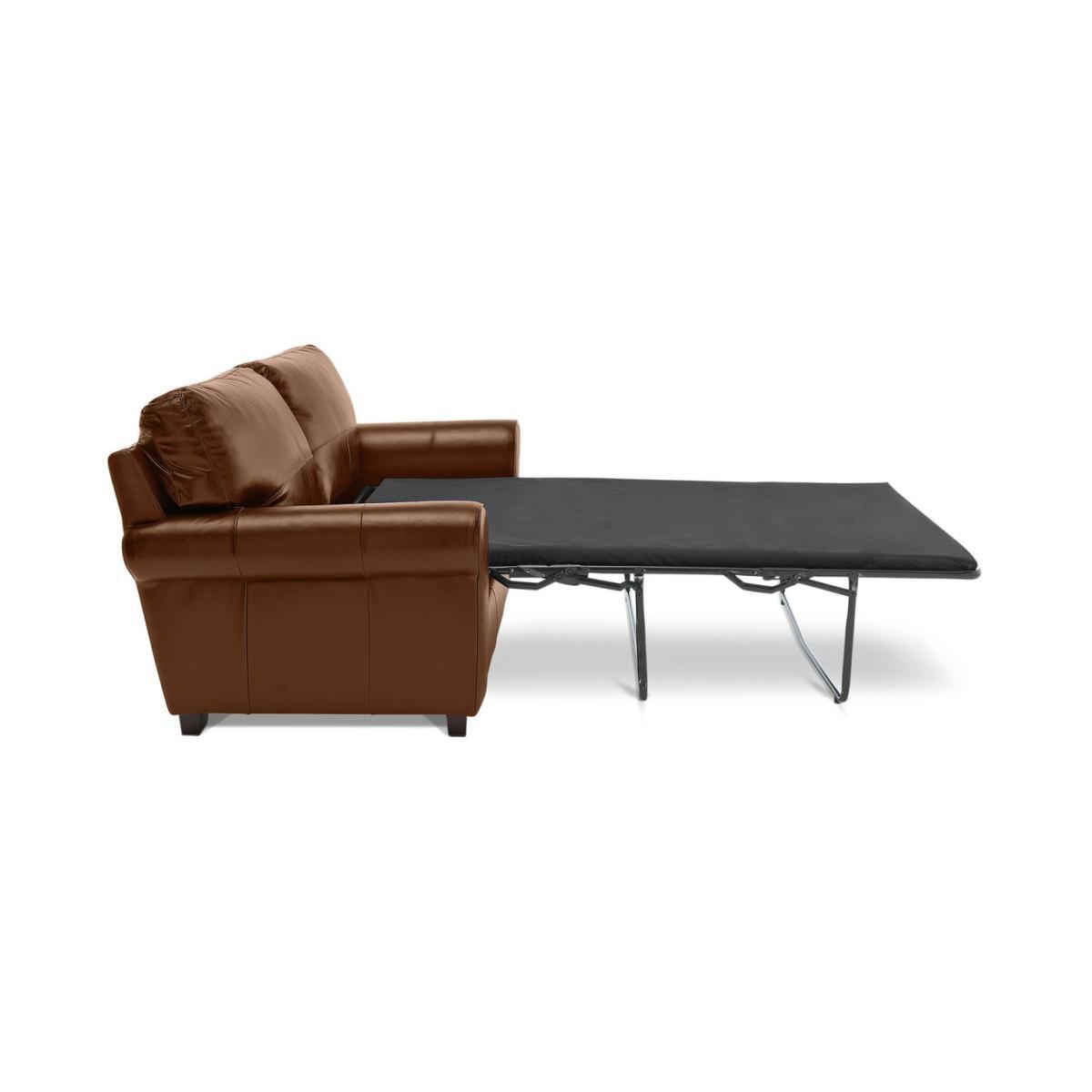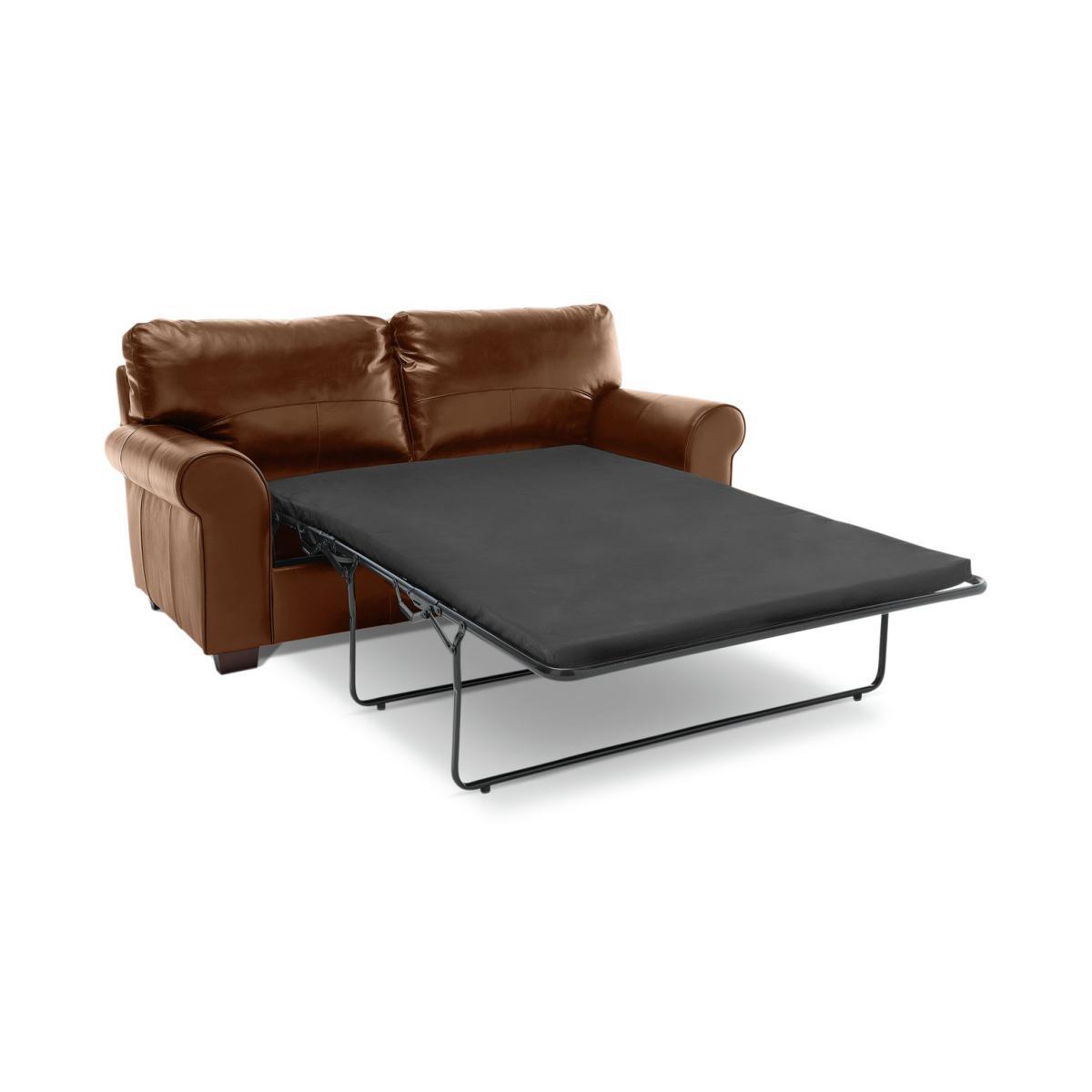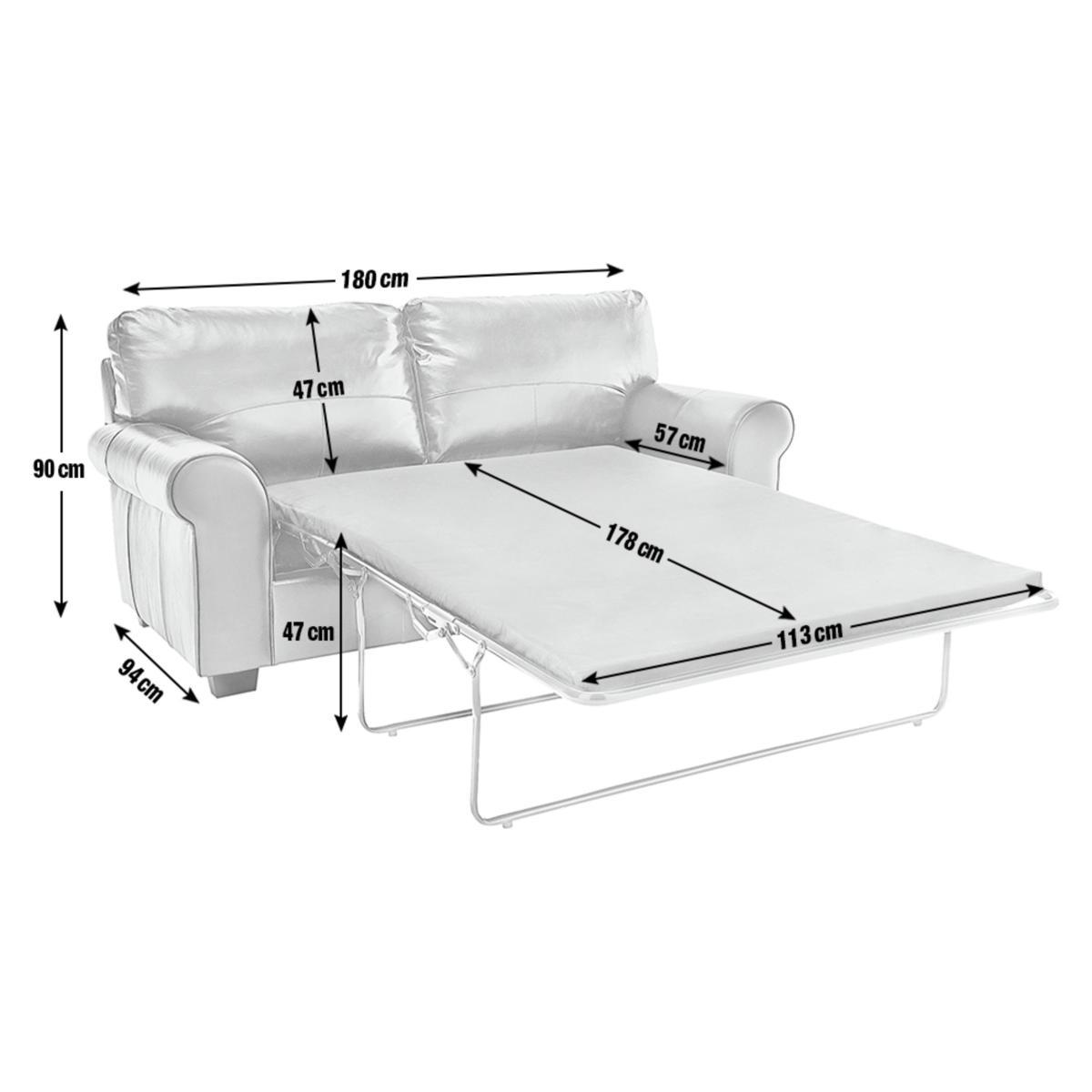 Strong and sophisticated form. The Habitat Salisbury is beautifully crafted using top quality Italian semi aniline leather. It has a subtle creasing, to give this sofa bed a timeless distressed finish. Its beautiful scroll arms offer a classical touch. We love the look of the wide wooden feet, that raise the sofa from the ground. And of course, it's perfect when you need to accommodate overnight guests. A chic choice. Made with the same attention to detail as our regular leather sofas, there's no compromise on style and quality with this sofa bed. The Salisbury's strong and sophisticated form and its beautiful scroll arms create a classic style that never fails to impress. We love the look of the wide wooden feet, that raise the sofa from the ground. When you take delivery of the Salisbury, the only assembly required is to slot the backrests on. Part of the Salisbury collection. Metal action mechanism. Small double bed. Material:Semi aniline leather. Made from 100% leather. Wooden feet. Removable seats with pocket sprung foam filling. Fixed cushion(s) with fibre filling. Dimensions: Sofa size H90, W180, D94cm (Depth as bed 189cm). Size of sleeping area: W113, L178cm. Mattress depth: 5.5cm. Floor to seat height: 47cm. Depth of seat: 57cm. Height of seat back: 47cm. Width of seating area between arms: 132cm. Height of arm rest: 62cm. Weight 64kg. Professional clean only. Suitable for occasional use. Plump cushions regularly to maintain shape. Minimal assembly - just add feet. Maximum individual user weight 110kg. Packaged dimensions:Package size H86, W184, D96cm. General information:We are excited to be welcoming some of our favourite HOME products into the Habitat range. Your product may arrive in Habitat or HOME packaging. Manufacturer's 5 year frame, 3 year fabric and springs guarantee.