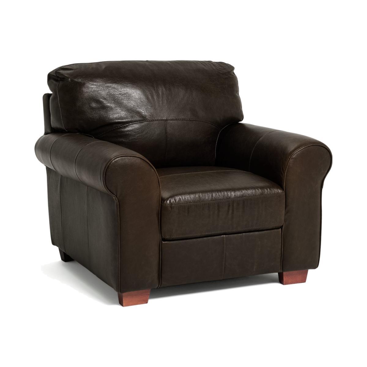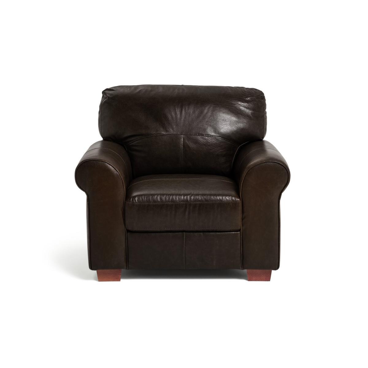 Strong and sophisticated form. The Habitat Salisbury is beautifully crafted using top quality Italian semi aniline leather. It has a subtle creasing, to give this armchair a timeless distressed finish. Its beautiful scroll arms offer a classical touch. We love the look of the wide wooden feet, that raise the chair from the ground. A chic choice.