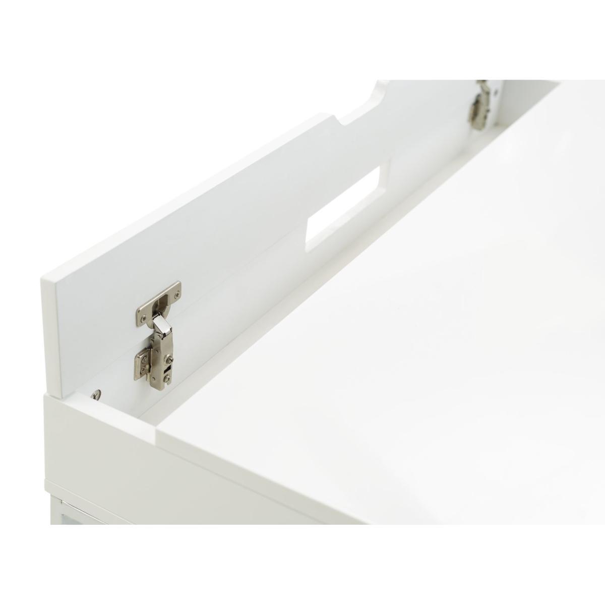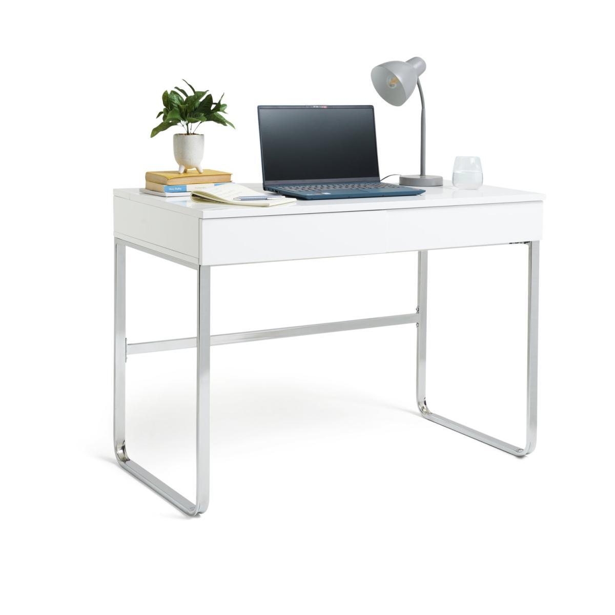 I love this desk for its sleek, modern appearance and clean white gloss finish, which effortlessly brightens up any space. It works particularly well in contemporary and minimalist interiors, but can also complement Scandinavian or industrial styles when paired with textured or metal accents. Practical styling tips include adding a pop of colour with vibrant accessories or organising essentials in a slim desk organiser to keep the surface tidy. Its neutral tone makes it versatile, providing a perfect backdrop for personalised decor elements, such as framed prints, plants, or statement lamps. This desk is ideal for home offices, study nooks, or dressing areas where a stylish yet functional piece is needed.