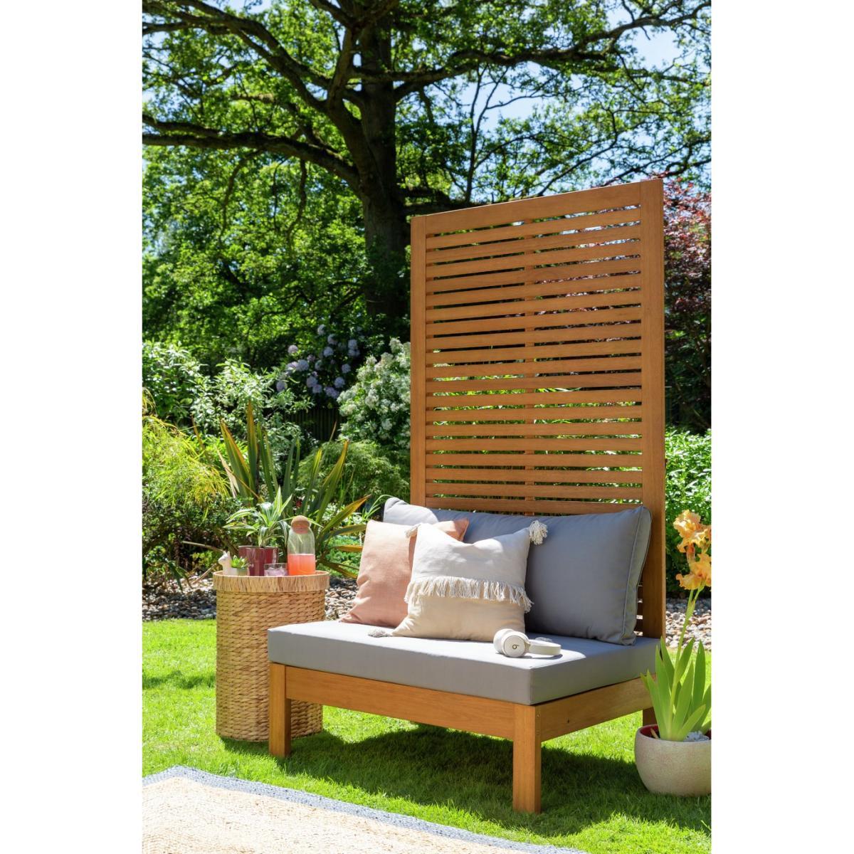 Outdoors is the new indoors. Enjoy some alfresco relaxing with our stunning garden bench. Made from sustainable, solid FSC , its light wood finish brings a luxe resort look. The slatted ladder back and offers privacy and comfort. The slated panel acts as a windbreaker to protect you and your loved ones from the winter breeze and be able to enjoy your garden even in autumn and winter months. You can pop the covers in the washing machine to freshen them up. If used by itself we recommend to place it close to a fence or wall with strong winds.