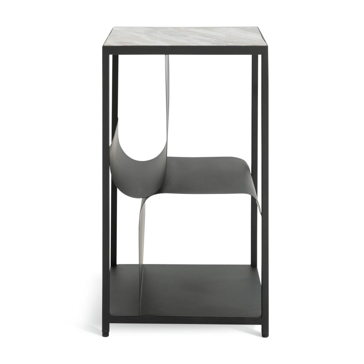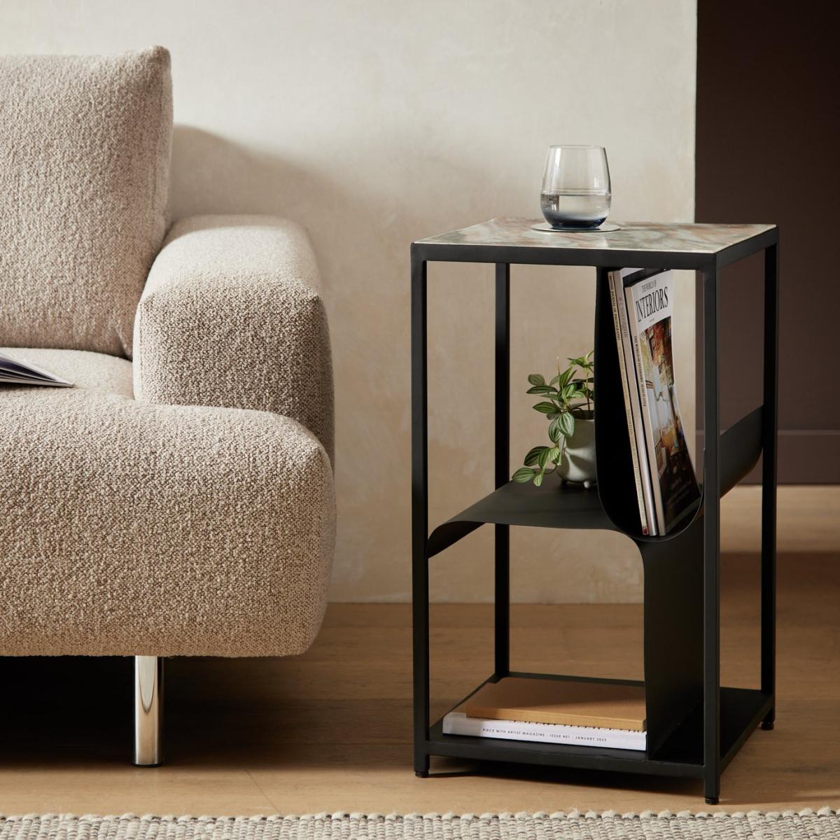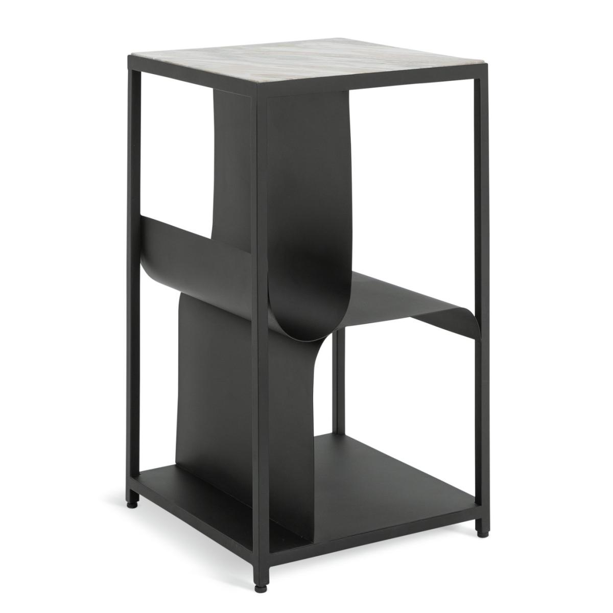 Add a little glamour to the room with our elegantly tiered magazine side table. Crafted from curved black metal with a marble inset, it is incredibly luxe. With 2 magazine holders and extra shelving, it is as versatile as it is stunning. Part of the Sarai collection. Size H 60, W 35, D 35cm. Made from metal and marble. 2 undershelves. Weight 10.5kg. Fully assembled. Maximum load weight 10kg. General information: Manufacturer's 1 year guarantee.