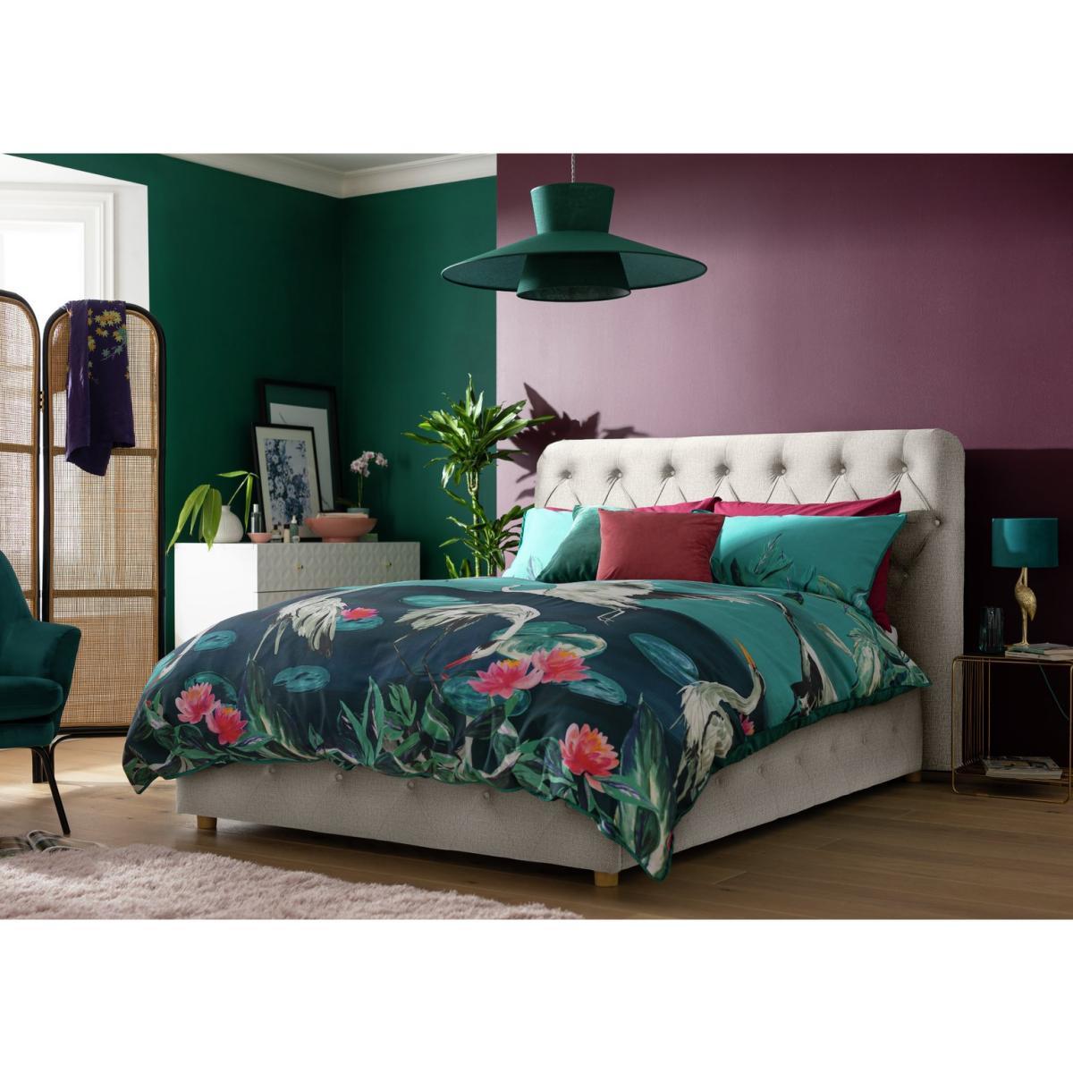 Add a touch of luxury and romance to your sanctuary with the elegant Savannah double size bed frame. Beautifully upholstered by hand, this bed frame has extra deep buttons on the headboard and foot end, and is covered in a touchably soft linen fabric. Indulgently comfortable, this is a bed that transforms any bedroom into an oasis of calm and relaxation. Teal, it's a real statement piece.