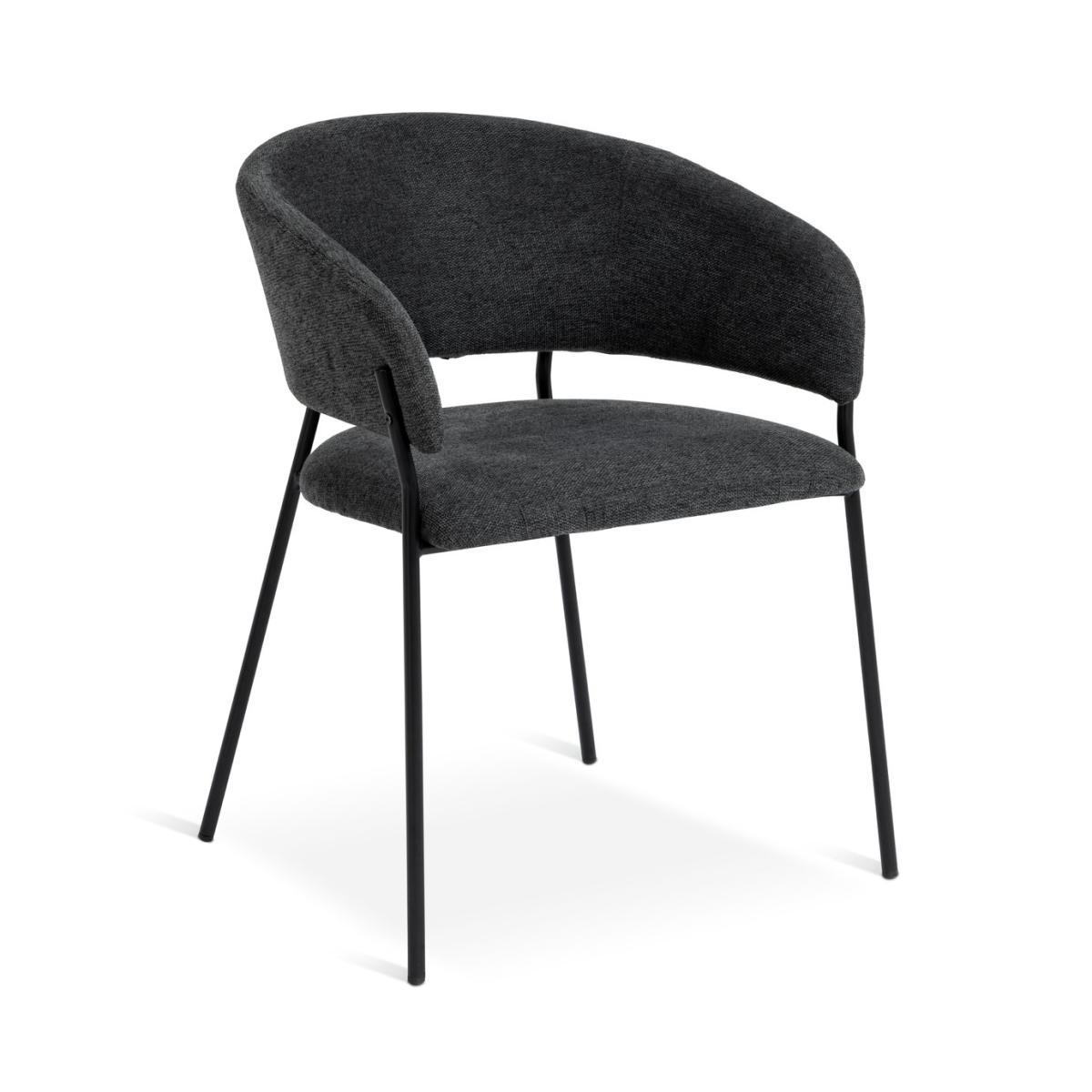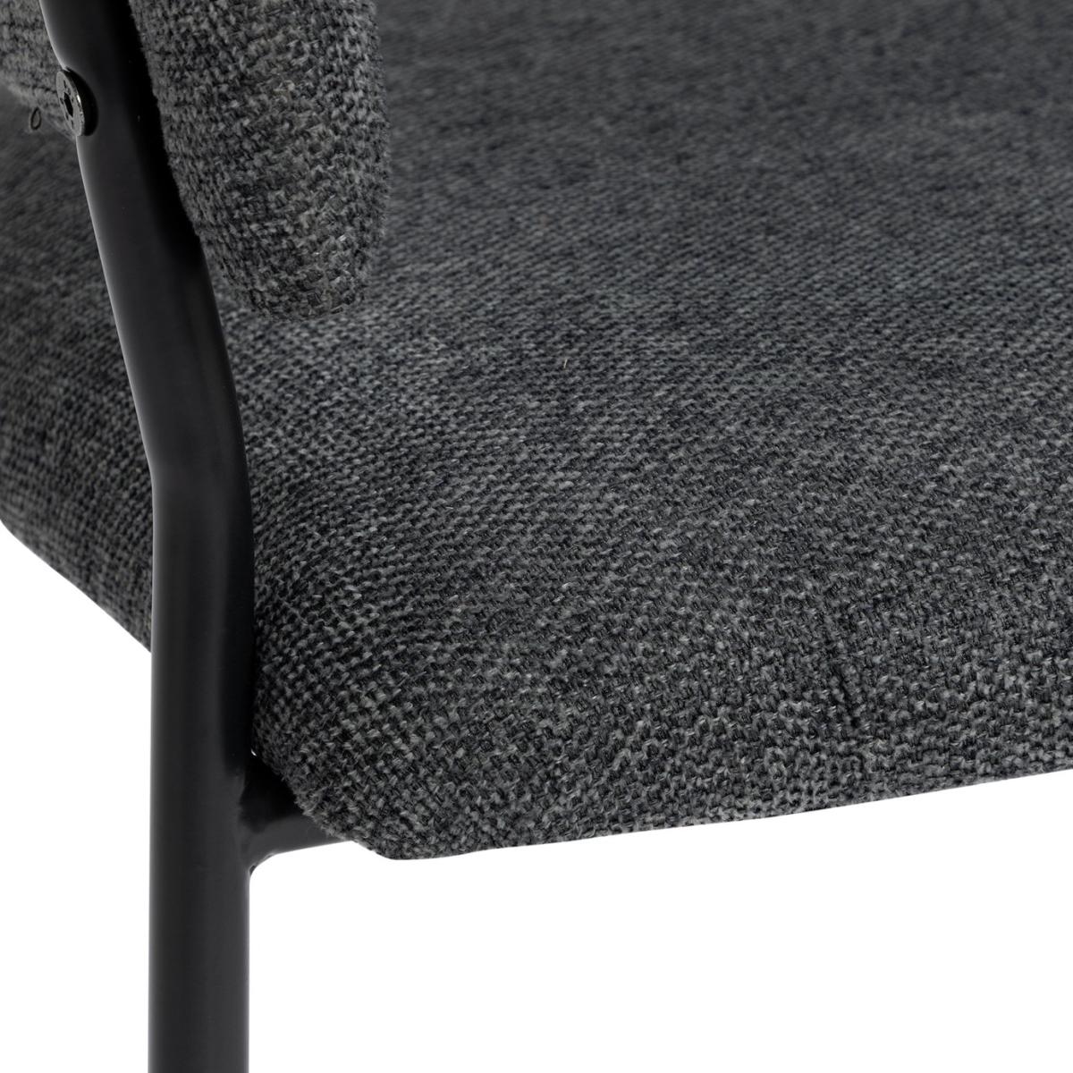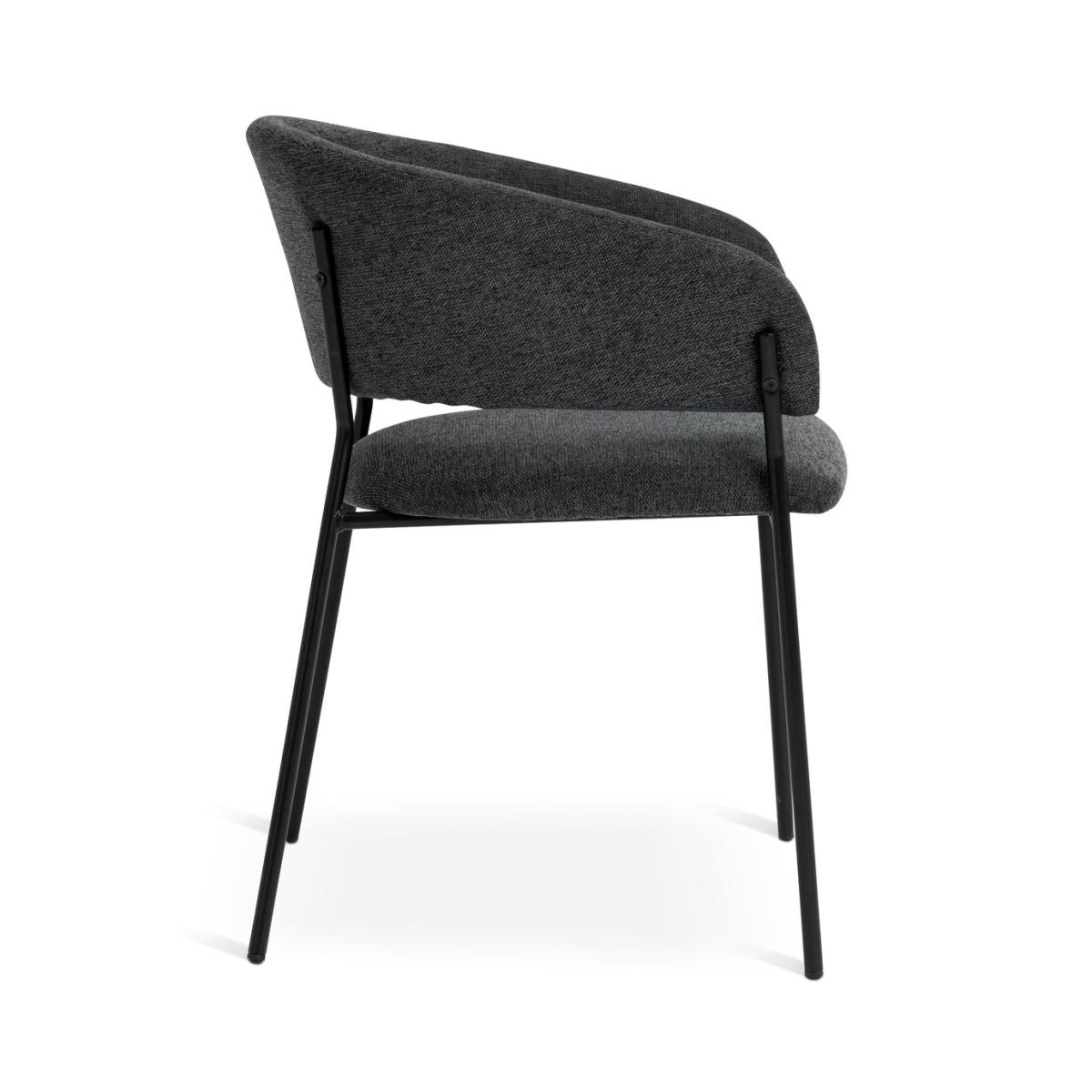 Meet our modern dining chair duo. Our pair of Sawyer chairs are upholstered in textured charcoal grey fabric with wrap-around backs, plushly padded seats and stylish splayed legs that add a contemporary edge. Part of the Sawyer collection. Chair: 2 chairs supplied. Size H77, W57, D57cm. Seat height 49cm. Metal frame with metal legs. Fabric seat pad. Self-assembly - 1 person recommended. Max user weight per chair 130kg. Individual chair weight 6.4kg. Wipe clean with a damp cloth. Package Dimensions: Chair package size: H71, W59, D55cm. General information: Manufacturer's 1 year guarantee. FSC certified meaning the materials used for this product are responsibly sourced.