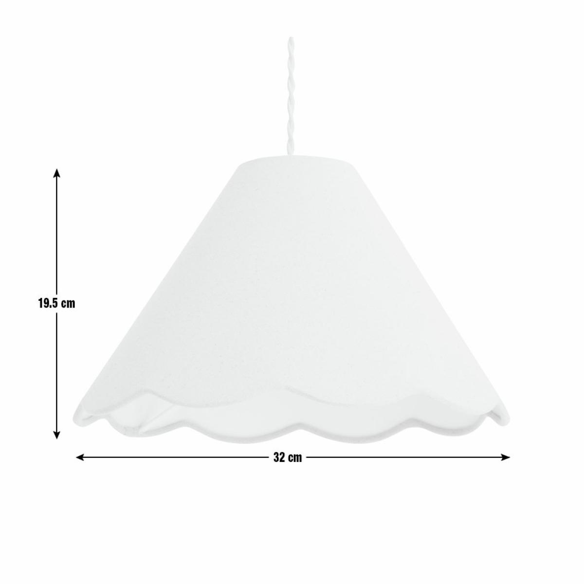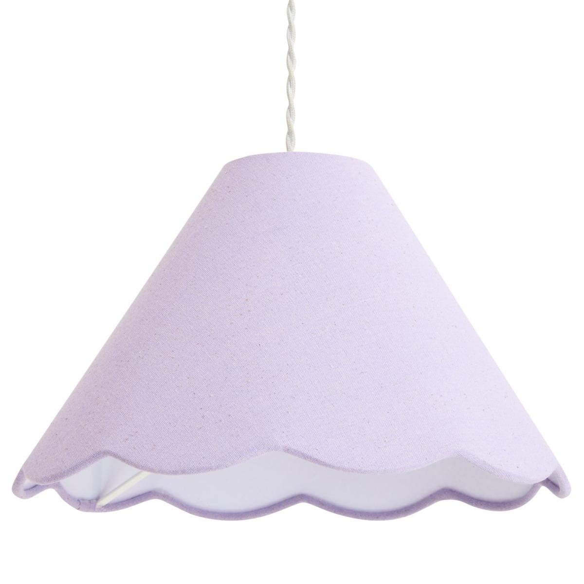 Add a softer accent with this scalloped shade. Suitable for both pendant fittings and table lamps, it offers a fresh new take on a classic tapered shape. Its wavy edge gives a nod to vintage design while the pale lilac hue brings in a pop of uplifting pastels. Made from polyester. Size H19.5cm, W32cm, D32cm. Diameter 32cm. Recommended maximum bulb wattage 15 watts. Fully assembled. Easy fit shade. Manufacturer's 1 year guarantee.