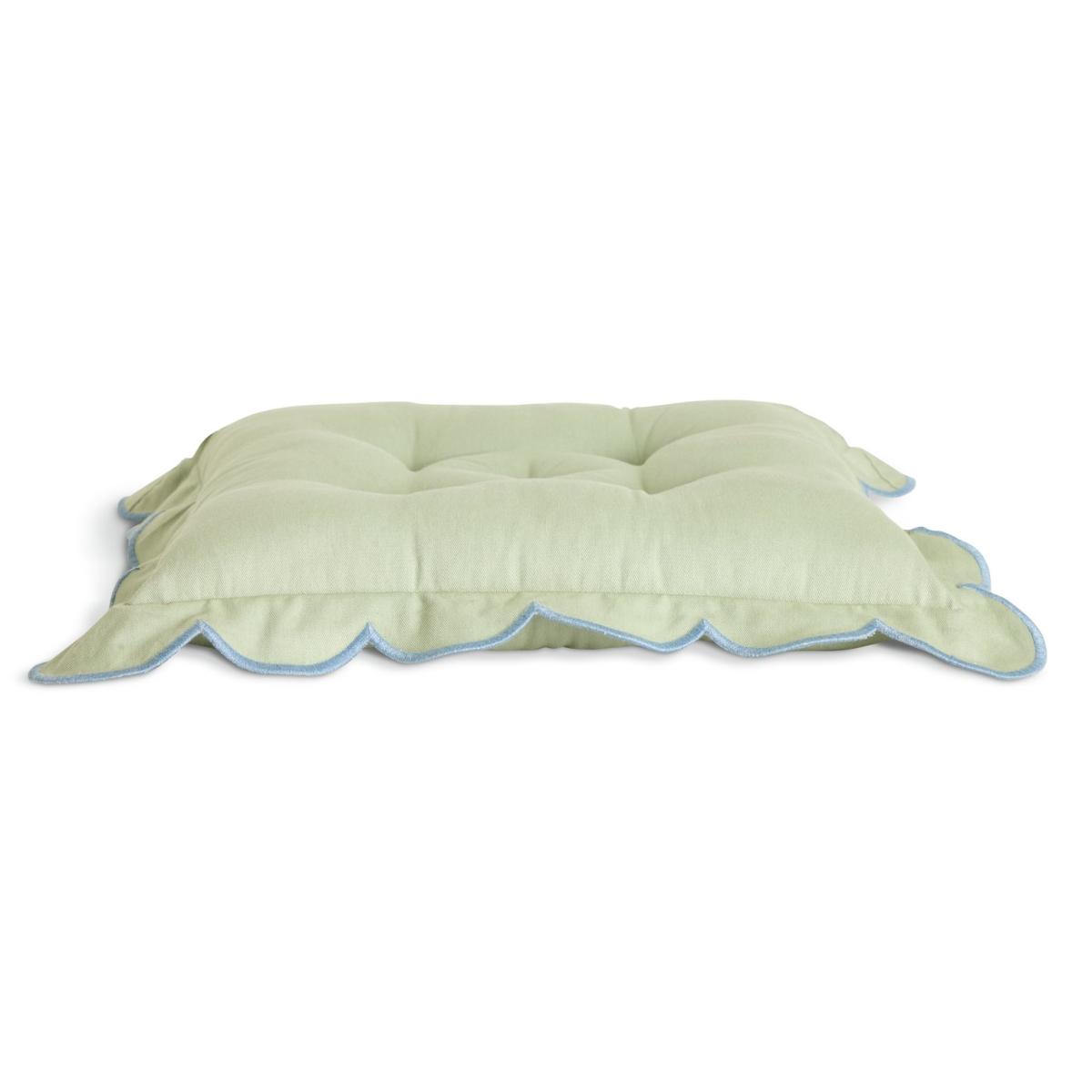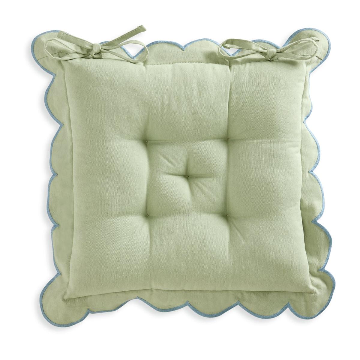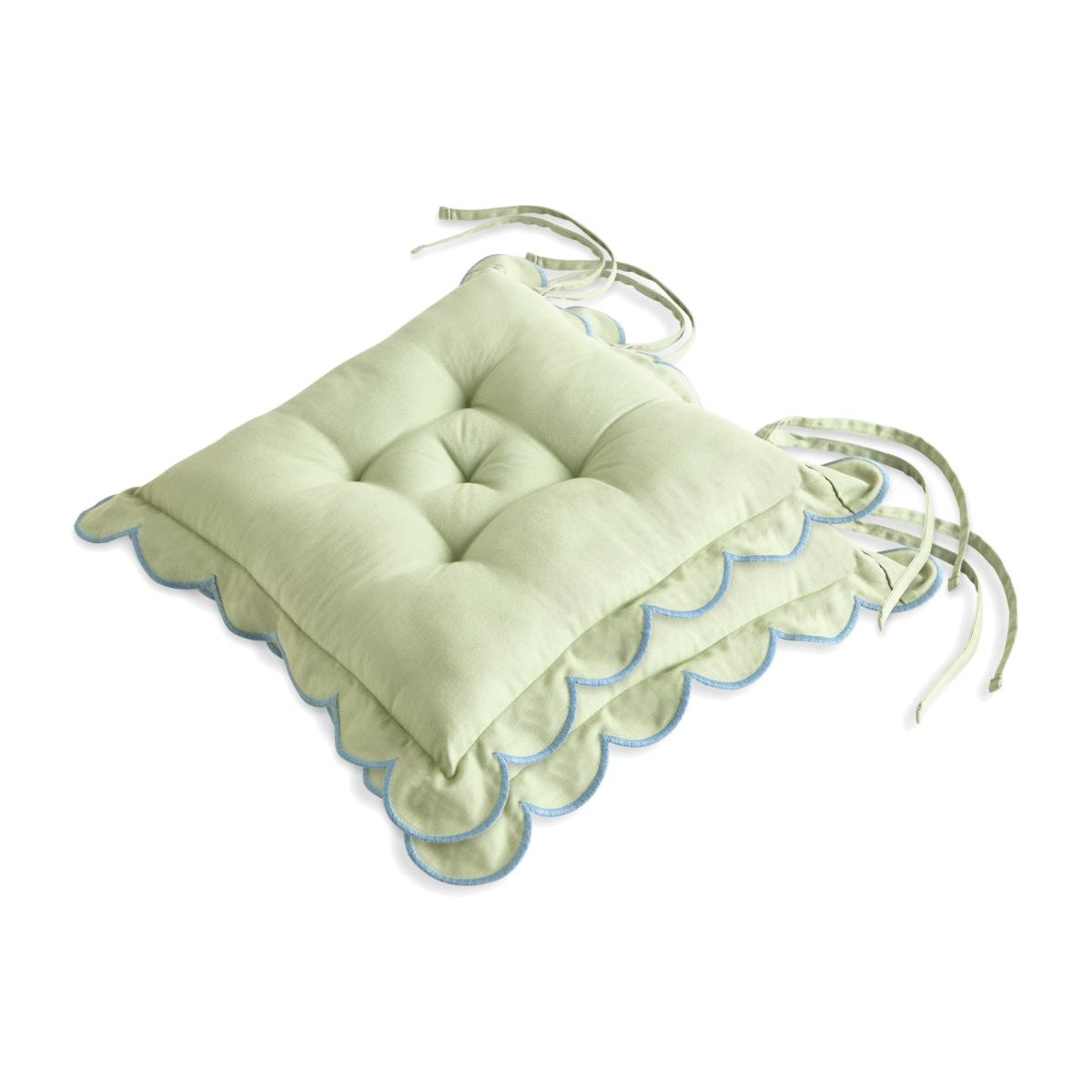 Sitting pretty. Give chairs an instant refresh with this pair of soft green tie-on seat pads. Plumped and tucked, they have a comfortably inviting feel. The scalloped border is finished with a contrasting coloured edge to emphasise the playful design. Made in a hardwearing cotton drill. Cotton cover. Recycled polyester filling. Secured by ties. Size L40, W40cm. Sponge clean only.