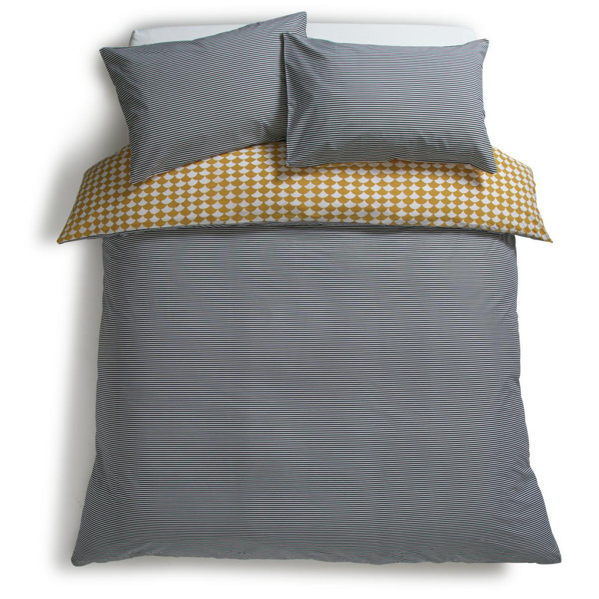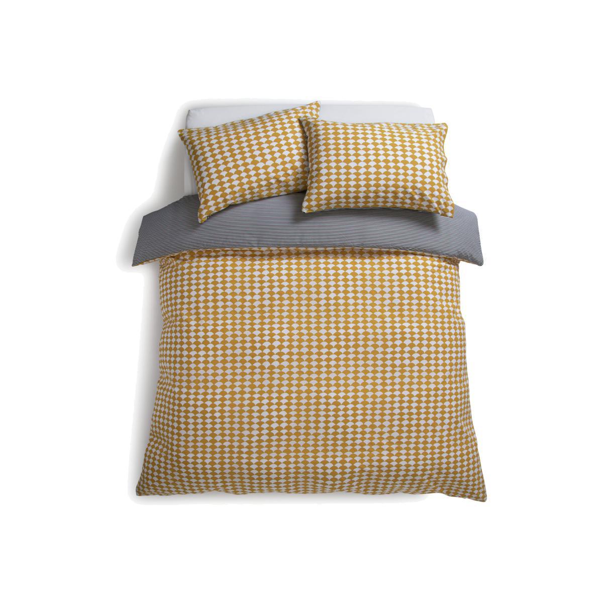 Designer's delight. Our Scallop bedlinens feature a mustard scallop graphic on one side and a grey pinstripe on the other. 100% cotton and a 180-thread count make them cosy to sink down into at the end of the day. A true design classic, Scallop fits with any decor style from Scandi to modern to country house. And this great value double set comes with 2 pillowcases and a duvet cover.