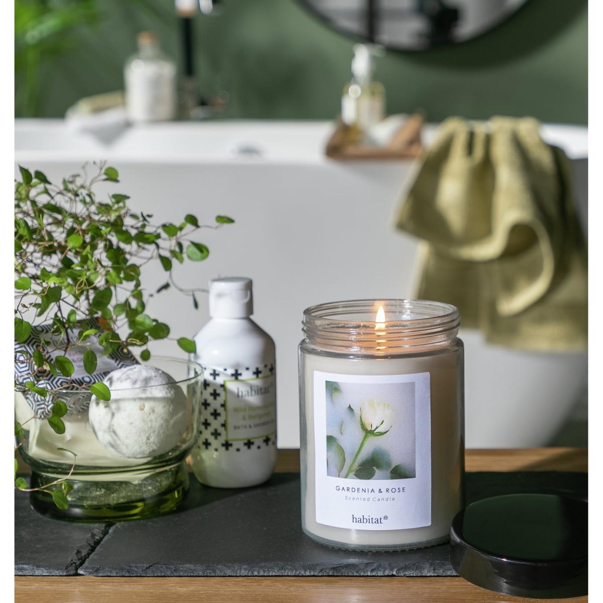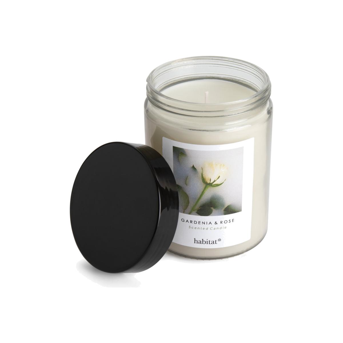 A romantic choice. Our exotic gardenia and rose scented candle embodies the floral essence of summer. Fruity notes of ylang ylang blend with rich sweet jasmine to create an intoxicating fresh fragrance. And you can enjoy the immersive scent for as long as 70 hours. Isn't that nice? Comes in a glass jar with a smooth black lid. Just light and you've set the tone for the evening. Find your favourite fragrance. We've an excellent collection of scented candles and diffusers for you to explore. Gardenia & Rose scent. Paraffin wax. Approximate burn time 70 hours. Size H13, W9.2, D9.2cm. Diameter 9.2cm.