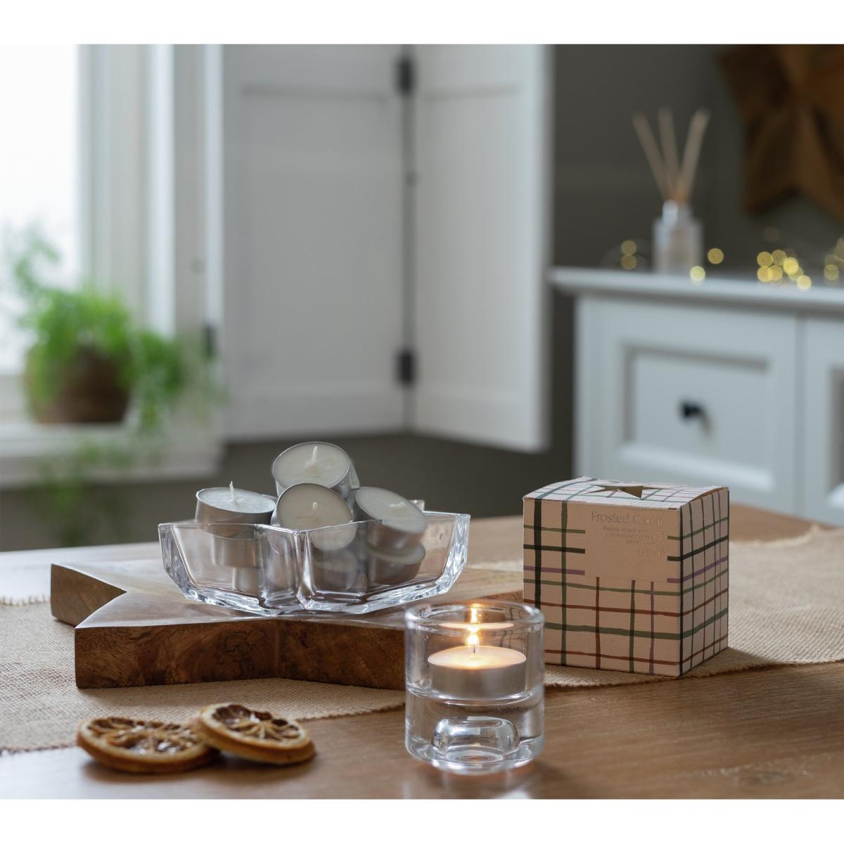 I love this tealight box for its subtle festive scent, making it a versatile choice for many interiors. The fir balsam aroma is ideal for creating a cosy, inviting atmosphere, especially during the winter months. These candles are perfect for layering into a rustic or Scandinavian-inspired space - think wooden surfaces, knitted throws, and neutral palettes - adding warmth without overwhelming the decor. Practical styling tips include using them in clusters on a marble tray or alongside holiday garlands, or placing them in lanterns or clear glass holders to enhance their glow. They work well in both informal and more refined settings, providing a simple way to introduce seasonal fragrance and soft lighting.