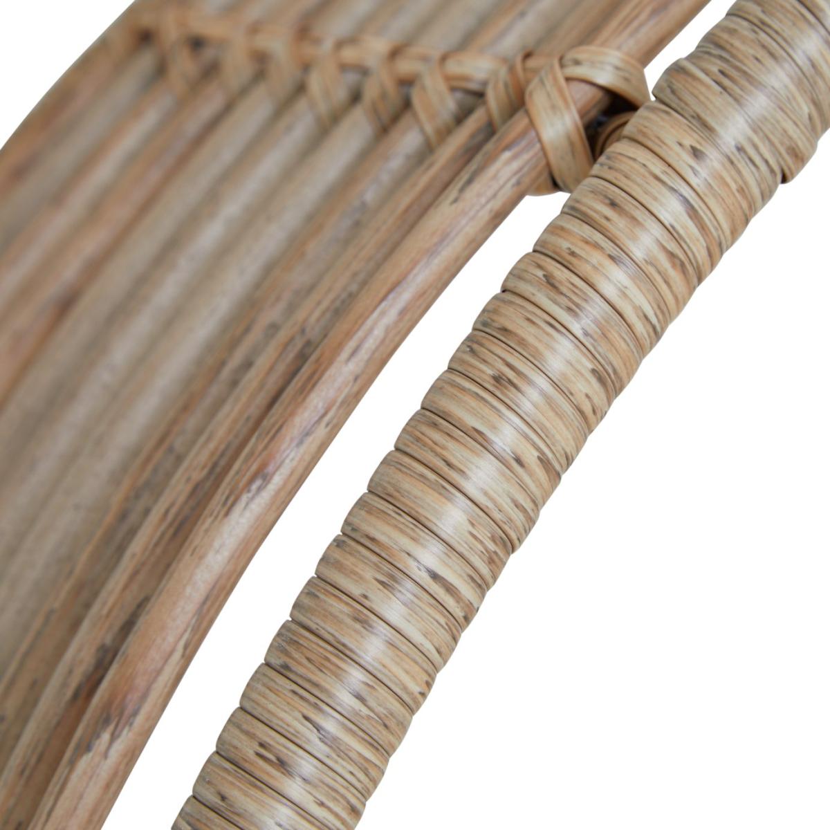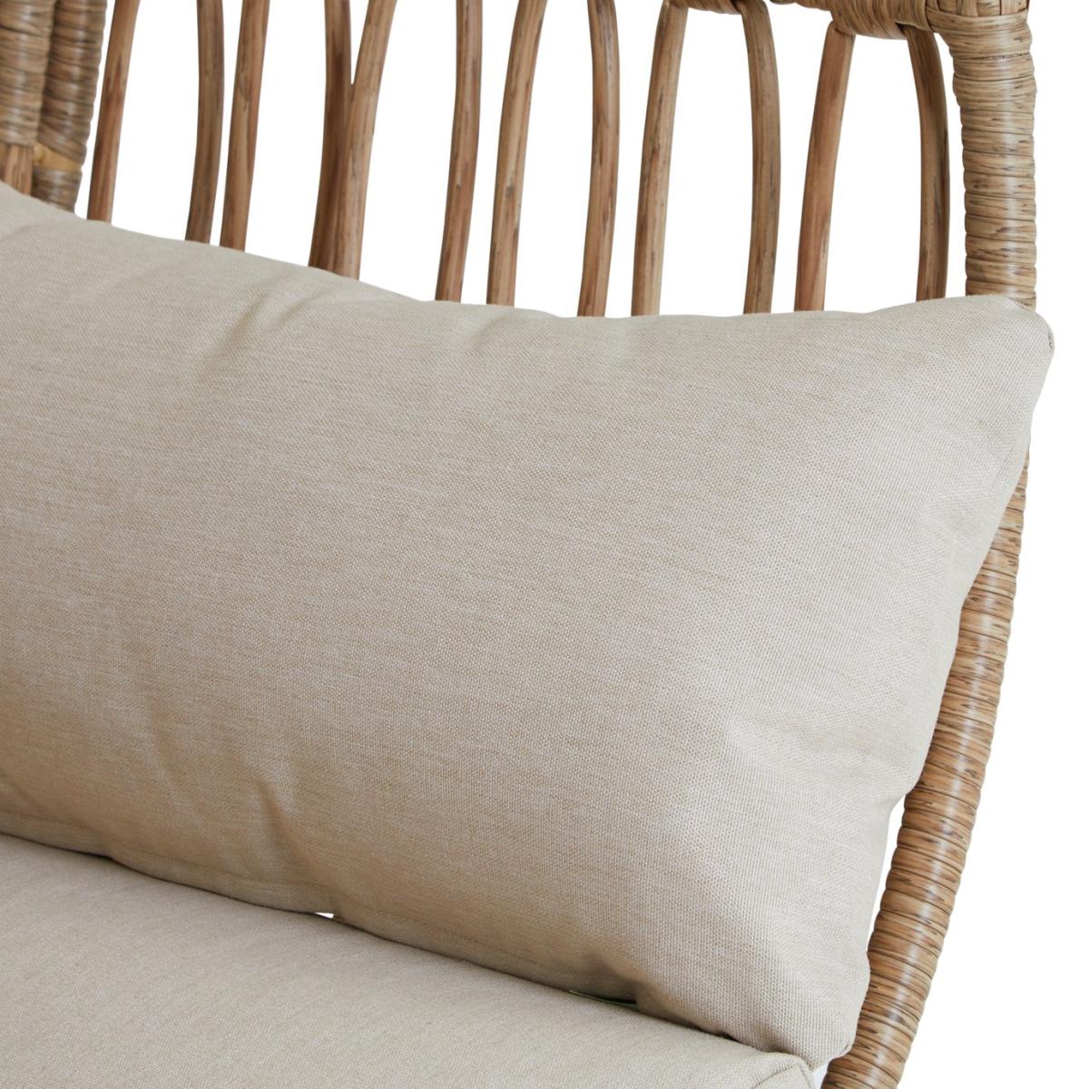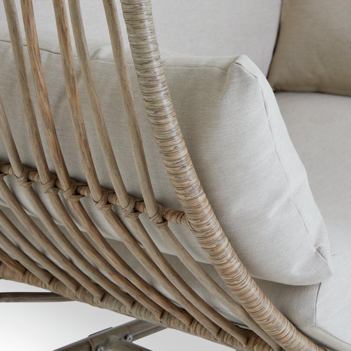 Settle into the inviting curves of this egg chair. Its rattan-effect frame forms a cocoon-like silhouette, designed to cradle you in style. The soft, cream cushions are tailored for a snug fit. Blending natural textures with contemporary durability, this piece is a stylish addition for relaxed outdoor lounging. Steel frame. Chair seat and back made from polyester. Cushions: Polyester cushion cover. Removable cushions. Cushions are shower proof, but should be stored inside when not in use. Dimensions: Size H152, W123, D84cm. Weight 23.5kg. Seat height from ground 46cm. Seating area size W66, D68.5cm. Maximum user weight 110kg. Package Dimensions: Package 1 dimensions: H54.5, W119.5, D71cm. Package 1 weight:30.2kg. General information: Self-assembly - 2 people required. Store inside when not in use. Cover or store inside in winter months to prolong life of product. Manufacturer's 1 year guarantee.