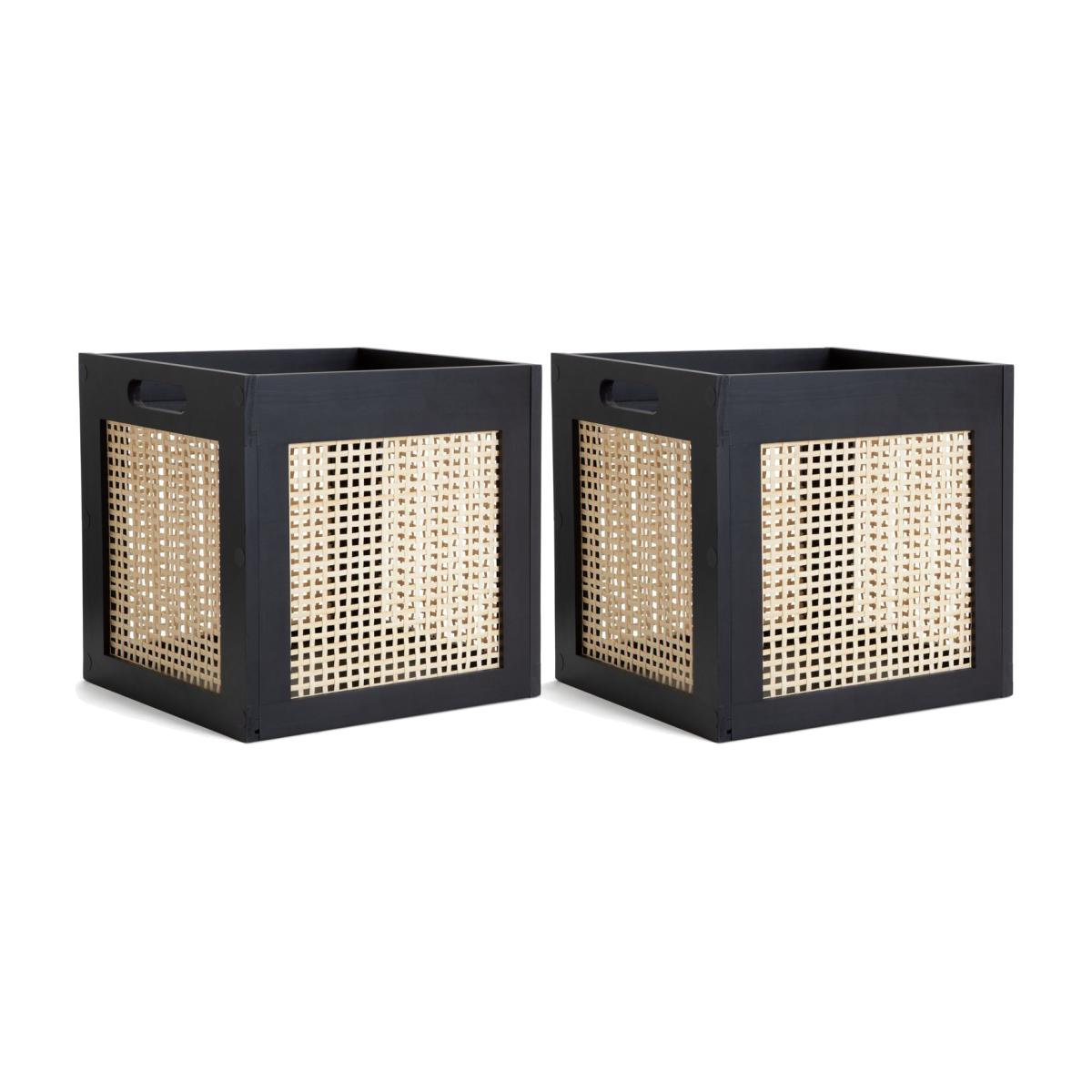 Tidy in style with our set of 2 square storage boxes. Woven rattan panels keep things natural, while a striking black frame brings a contemporary touch. Tuck toys, games or magazines inside to keep the lounge clutter-free. Shoes, scarves and gloves? Pop this pretty pair in or on top of the wardrobe. And with two smooth cut-out handles, they're a dream to move around. Box clever.