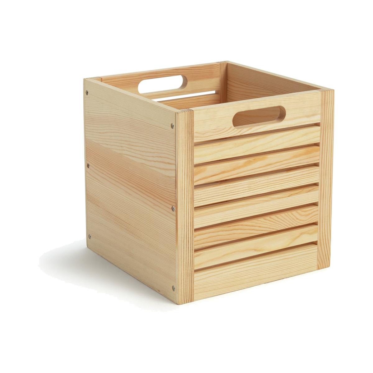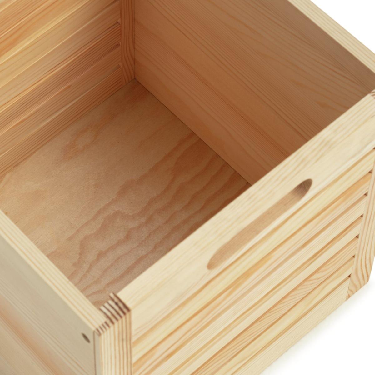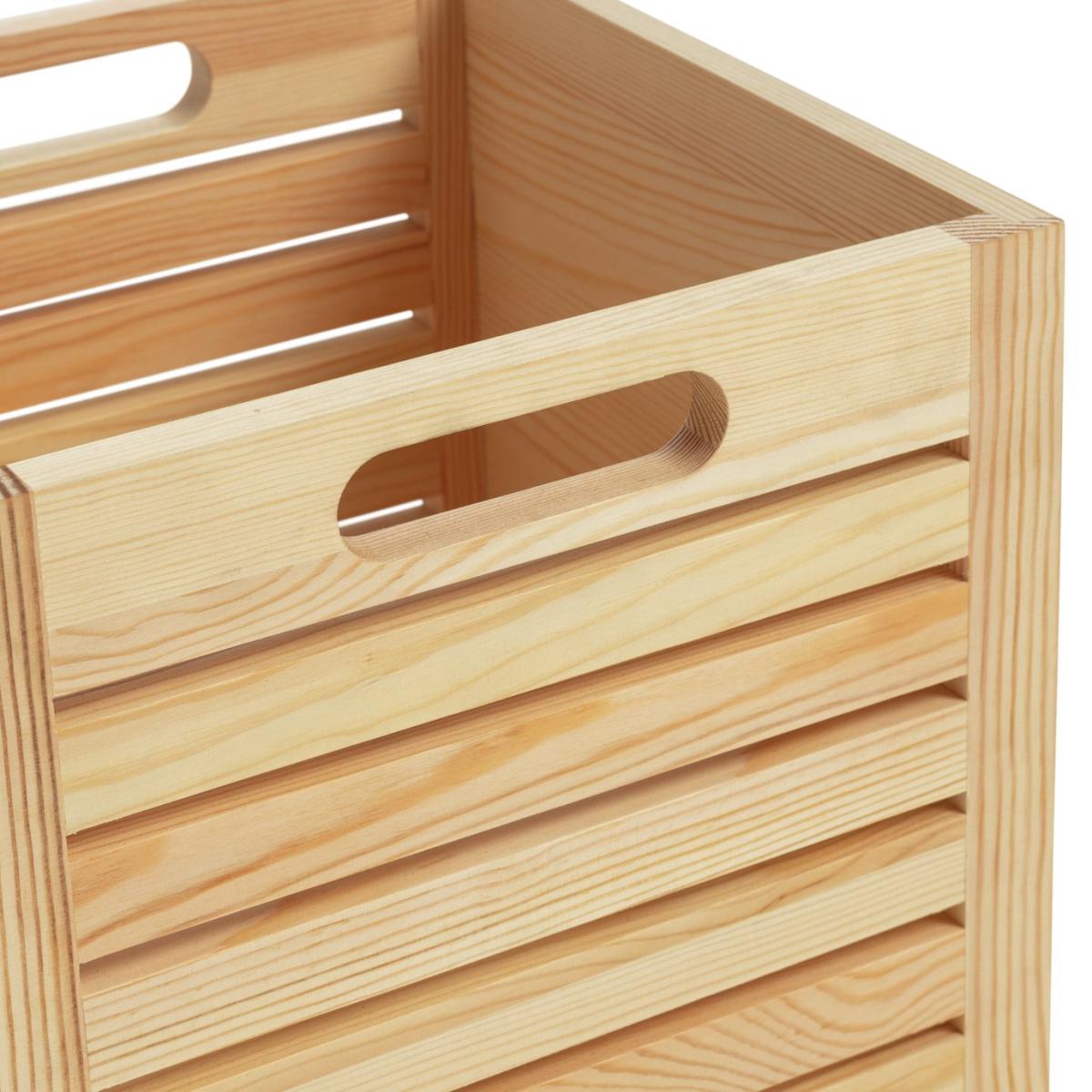 Keep your space neat and tidy with our set of 2 wooden storage containers. Crafted from slatted pine, they'll bring a touch of natural, country-style to your lounge, office or kitchen. Games, toys or your favourite magazines? Gather them up and pop inside for safe keeping. Moving things around? The two cut-out handles make it so easy. Here's to ticking all the boxes.