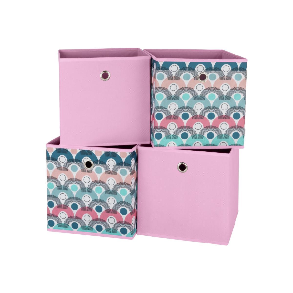 Handy open storage boxes are just the ticket for storing seasonal clothes, shoes, accessories and linens. These 4 pink patterned square boxes are designed to fit perfectly with the Argos Home Squares storage unit, but you can use them just about anywhere. Store them in your wardrobe, under your bed, in a divan drawer or elsewhere. They come flat packed, so you can simply tuck them away when not in use. Folds for storage. Box size H28, W28, D28cm. Small box size H28, W28, D28cm. Medium box size H28, W28, D28cm. Large box size H28, W28, D28cm. Weight 2.08kg. Minimal assembly.
